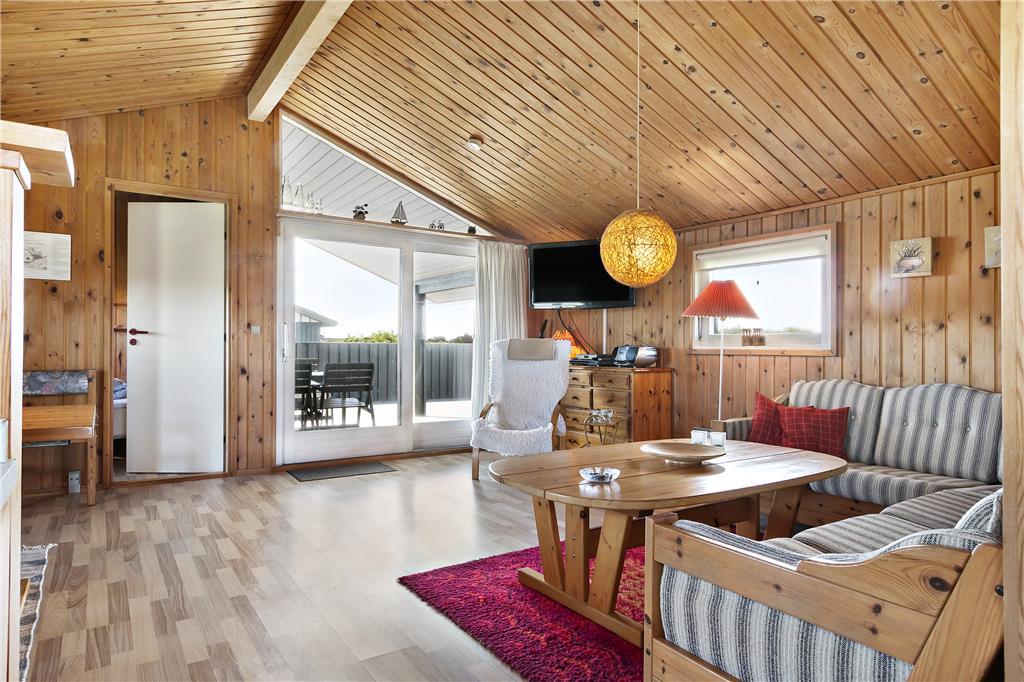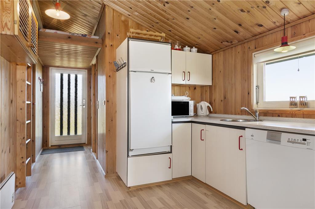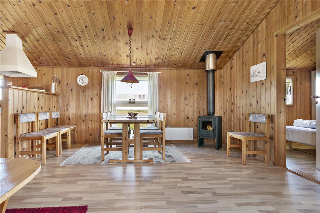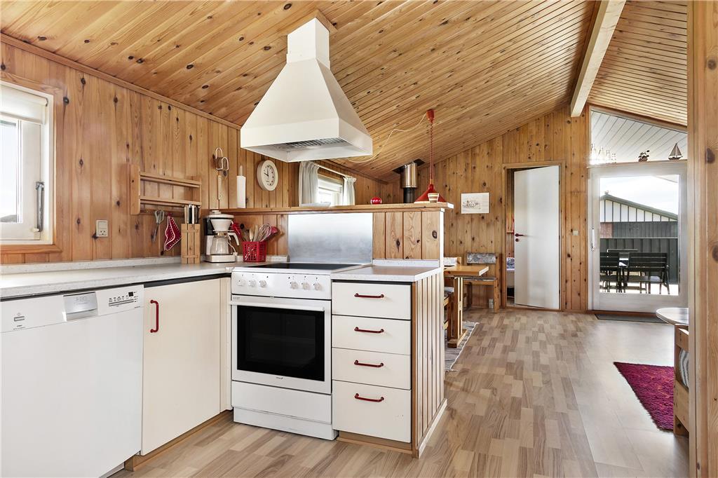 Das helle und einladende Ferienhaus bietet einen schönen Grundriss, der ein Gefühl von Weite vermittelt. Die Deckenhöhe bis zum Giebel sorgt für zusätzliche Luft und Licht im Wohnzimmer, wo der gemütliche Kaminofen an kühleren Abenden für Wärme und Atmosphäre sorgt. Die drei Schlafzimmer des Hauses sind ideal, um nach einem aktiven Tag in der Natur zu entspannen. Die gut ausgestattete Küche ermöglicht es Ihnen, leckere Mahlzeiten zuzubereiten, die Sie in dem offenen Wohnbereich genießen können. Vom Wohnzimmer aus haben Sie direkten Zugang zur Terrasse, auf der Sie die frische Luft genießen und die Sonne auf Ihrer Haut spüren können.
