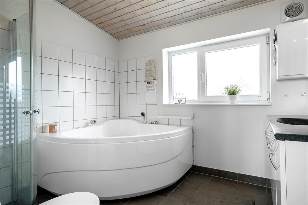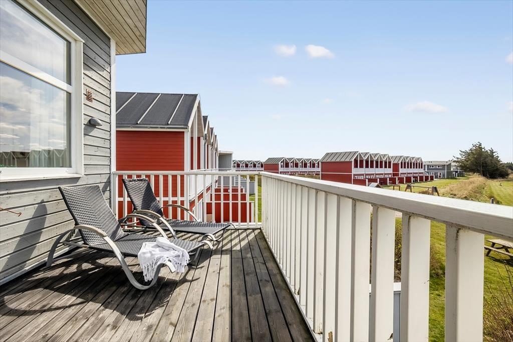 Die Wohnung erstreckt sich über zwei Etagen und gehört zum Løkken Ferienpark Nordenlys. Im Erdgeschoss befinden sich ein Schlafzimmer, ein Badezimmer mit Sauna und das Wohnzimmer mit einer offenen, gut ausgestatteten Küche. Von hier aus hat man Zugang zu einer großen, nach Süden ausgerichteten Stein-Terrasse. Im ersten Stock befinden sich drei weitere schöne Schlafzimmer, die alle mit Doppelbetten ausgestattet sind. Zwei der Schlafzimmer haben Zugang zu einem großen, teilweise überdachten Balkon, während das Badezimmer hier mit Toilette, Dusche und Whirlpool ausgestattet ist. Die Raumaufteilung und die Badezimmer machen diese Wohnung besonders geeignet für zwei Familien, die gemeinsam Urlaub machen möchten. Außerdem gibt es einen Gemeinschaftsantenne mit vielen dänischen und internationalen Kanälen sowie kostenloses WLAN.