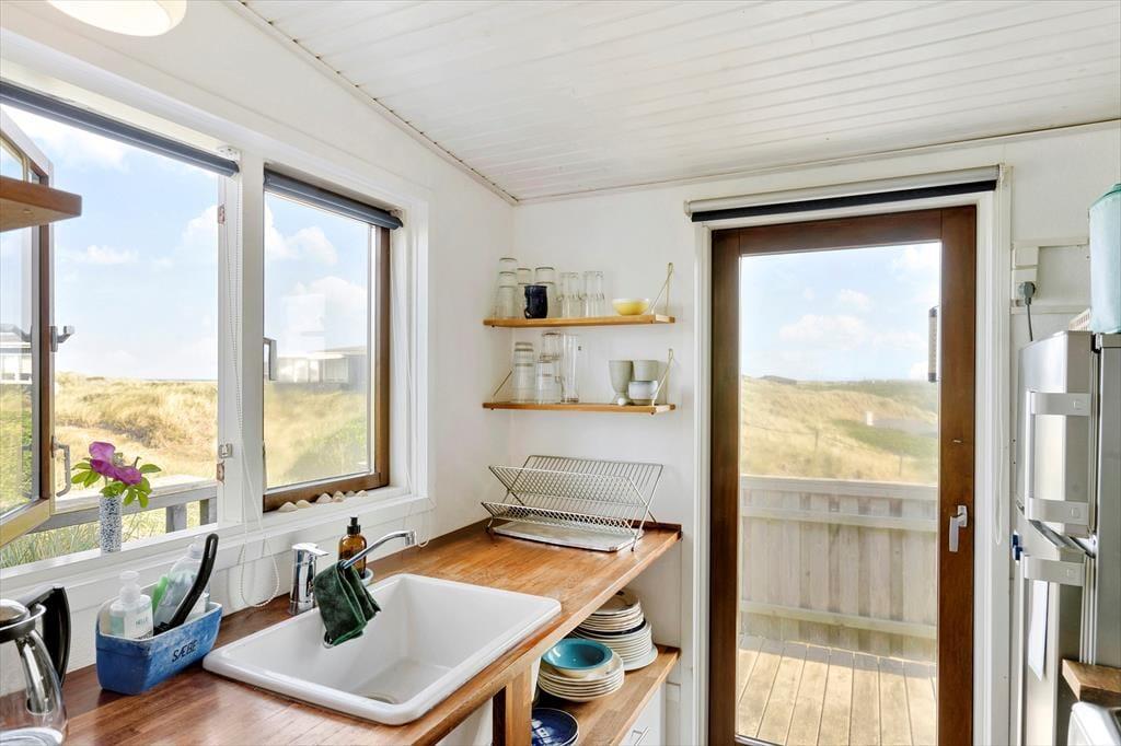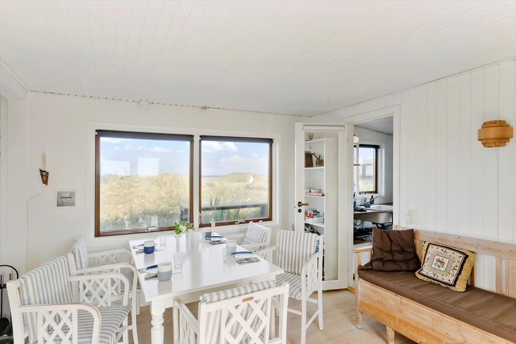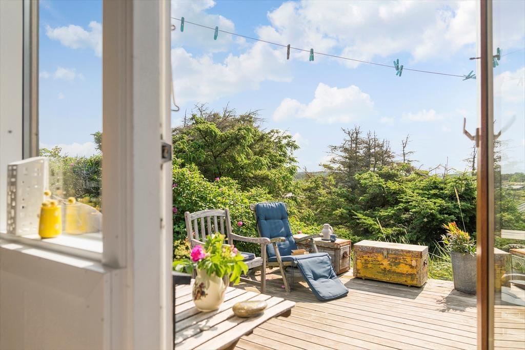Das hübsche Holzsommerhaus liegt seit 1936 hier in den Dünen, und sowohl innen als auch außen ist deutlich zu erkennen, dass es seitdem liebevoll gepflegt wurde. Die gut erhaltenen Räume wurden geschmackvoll modernisiert, und die Einrichtung passt perfekt zur klassischen Architektur und den wunderschönen Naturumgebungen, die sich durch die Fensteröffnungen von allen Seiten offenbaren. Überall herrscht eine gemütliche Atmosphäre, auch in den drei Schlafzimmern und der Küche – ja, selbst das Badezimmer ist mit hellen Farbtönen und einladenden Details stilvoll eingerichtet. Fast noch schöner als alle anderen Räume ist das Wohnzimmer, ein herrlicher Aufenthaltsraum mit Kaminofen, großen Fenstern, einem wundervollen Lichteinfall und sogar Meerblick.
