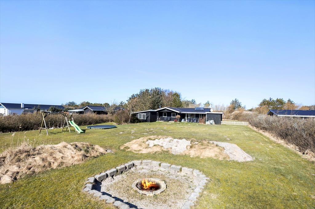 Ferienhausleben bedeutet Leben im Freien, und in diesem Ferienhaus sind die Bedingungen ideal. Zwei nach Süden ausgerichtete Terrassen erweitern den Wohnbereich mit zusätzlicher Außenfläche, auf der du den größten Teil des Tages die Sonne genießen kannst. Mit 2000 m² Grundstück hast du auch im Garten genug Platz, um dich auszutoben. Das Grundstück ist rundherum eingefriedet und fühlt sich sehr privat und ungestört an. Die Kinder können sich mit dem Spielgerät und dem Trampolin austoben, während die Erwachsenen das Mittagessen im Grünen vorbereiten. Wenn der Abend kommt, könnt ihr ein Lagerfeuer im Feuerplatz anzünden und den Sternenhimmel genießen – so sieht das beste Ferienhausleben aus.