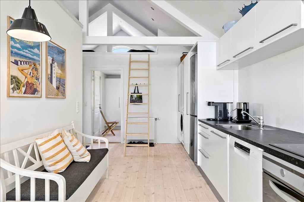 Die Ferienwohnung liegt zentral in Løkken, sodass Sie alle Annehmlichkeiten der Stadt direkt vor der Haustür haben. Es gibt eine gute Auswahl an Restaurants und Geschäften in den umliegenden Straßen, und es ist ein Erlebnis für sich, das charmante und hübsche Viertel rund um den Torvet zu erkunden. Gleichzeitig sind es nur wenige Schritte bis zum schönen Sandstrand. Wenn Sie von täglichen Meeresbädern träumen, könnte die Lage nicht besser sein. Wenn Sie einen Ausflug machen möchten, empfehlen wir unter anderem das Kloster Børglum, die Nybæk Plantage und Skagen mit der versandeten Kirche, dem Leuchtturm und den spannenden Museen.