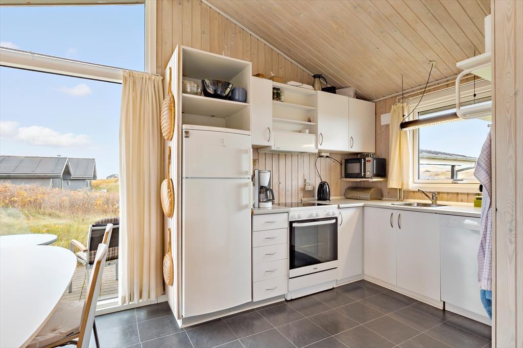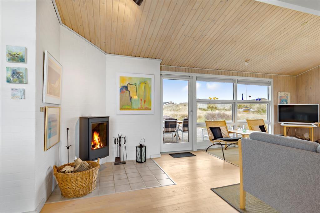 Schon bei der Ankunft macht das Ferienhaus einen tollen Eindruck mit seiner hübschen und klassischen Erscheinung: einer dunklen Holzfassade und weißen Fensterrahmen. Drinnen stehen euch 92 m² Wohnfläche zur Verfügung, und dank der offenen Decken, hellen Holzleisten an den Wänden und einer geschmackvollen Einrichtung ist die Atmosphäre einfach top. Der Kaminofen im Wohnzimmer sorgt zusätzlich für gemütliche Stunden, denn es ist purer Genuss, mit einer Tasse Kaffee und einem spannenden Buch – oder einem guten Film im Fernsehen, das mit Satellit, DVD und Chromecast ausgestattet ist – die Wärme zu genießen. Die Raumaufteilung bietet zudem drei gute Schlafzimmer und ein Badezimmer mit Dusche und Waschmaschine, während die funktionale Küche praktisch in das Wohnzimmer integriert ist.