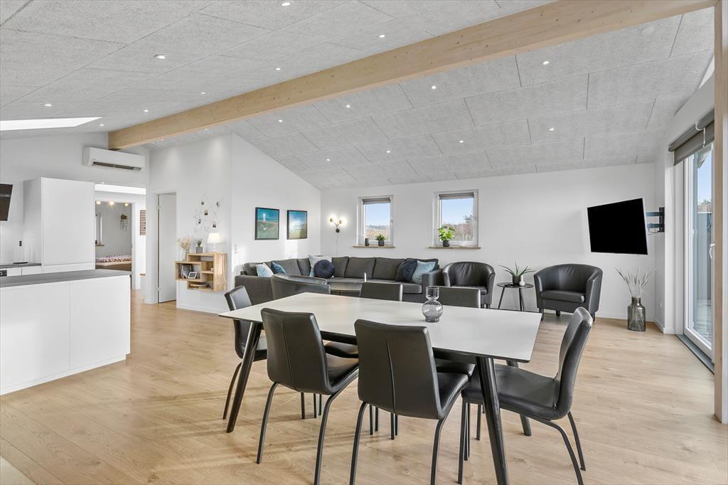 Von dieser Ferienadresse aus sind es nur 200 Meter bis zum schönen Sandstrand. Wenn ihr Lust auf ein erfrischendes Bad habt, braucht ihr nur ein Handtuch über die Schulter zu werfen und ein paar Schritte durch die Dünen zu gehen – einfacher geht es kaum. Das Haus liegt in einer ruhigen Ferienhaussiedlung südlich der lebhaften und charmanten Ferienstadt Løkken. Ihr könnt ins Zentrum von Løkken spazieren, wo es viele Aktivitäten für die ganze Familie gibt. Hier findet ihr auch Fachgeschäfte, gute Restaurants und natürlich Eisdielen. Soll es etwas aufregender sein, könnt ihr das Action House besuchen, das Bowling, Go-Kart, Paintball und einen Spielpark bietet. Wenn ihr Lust auf einen Ausflug habt, könnt ihr z. B. den Zoo in Aalborg besuchen oder nach Skagen fahren, wo ihr die Wanderdüne Kirche, das Skagen Museum und Grenen entdecken könnt.