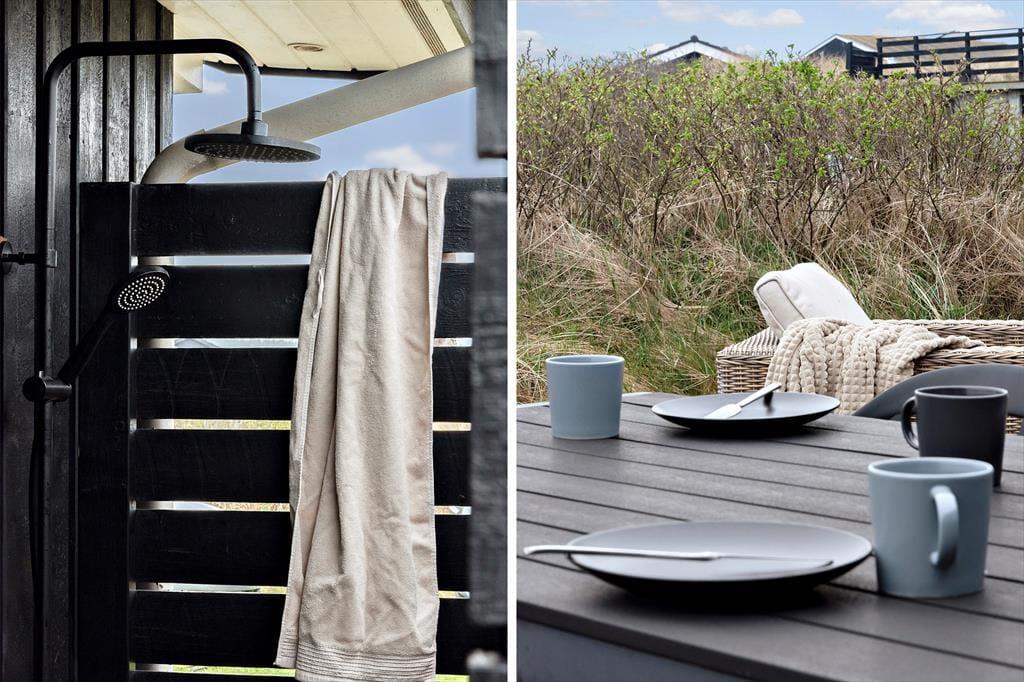 Wenn die Sonne scheint und das Urlaubsgefühl sich voll entfaltet, laden die Außenbereiche des Ferienhauses zu entspannter Zeit unter freiem Himmel ein. Genieße deinen Morgenkaffee in den Gartenmöbeln, nimm eine erfrischende Außendusche nach einem Bad im Meer oder zünde abends das Außenkamin an – perfekt für Stockbrot und lange Gespräche unter dem Sternenhimmel. Der Außenbereich ist so gestaltet, dass sowohl Kinder als auch Erwachsene zur Ruhe kommen und sich wohlfühlen können – ob mit einem guten Buch im Liegestuhl oder beim Ballspielen auf dem Rasen. Man kann sich leicht einen Sommerabend vorstellen, an dem der Duft von Gegrilltem sich mit dem Klang der Wellen und dem Lachen der Kinder vermischt, die den Tag noch nicht loslassen wollen. Hier wird Urlaub gelebt – und du wirst dich schnell wie zu Hause fühlen.