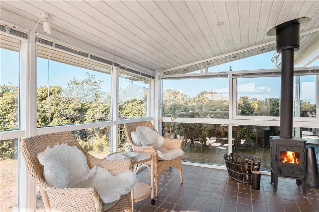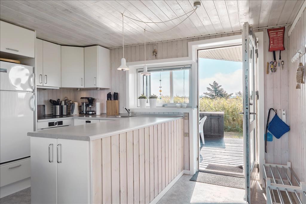 Das Ferienhaus ist schön und gut gepflegt und ist mit großen Glasflächen ausgestattet, die angenehmes und schönes Licht hereinlassen. Mit hellen Holzwänden, guten Möbeln und einem schönen, altmodischen Kaminofen trifft man hier auf den typisch dänischen Ferienhausstil. Die Küche ist mit den notwendigen Utensilien ausgestattet und liegt in Verbindung mit dem Essbereich. Mit drei schönen Schlafzimmern bietet es Platz für sechs Übernachtungsgäste, und das kleine Badezimmer nutzt jeden Quadratmeter gut aus. Außerdem gibt es dänische und deutsche Kanäle im Fernsehen, und mit einer Internetverbindung hat man Zugang zu Nachrichten usw.