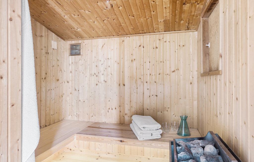 Auf der gemütlichen Terrasse können Sie die frische Luft und die traumhafte Umgebung in vollen Zügen genießen und im finnischen Holzbad entspannen.