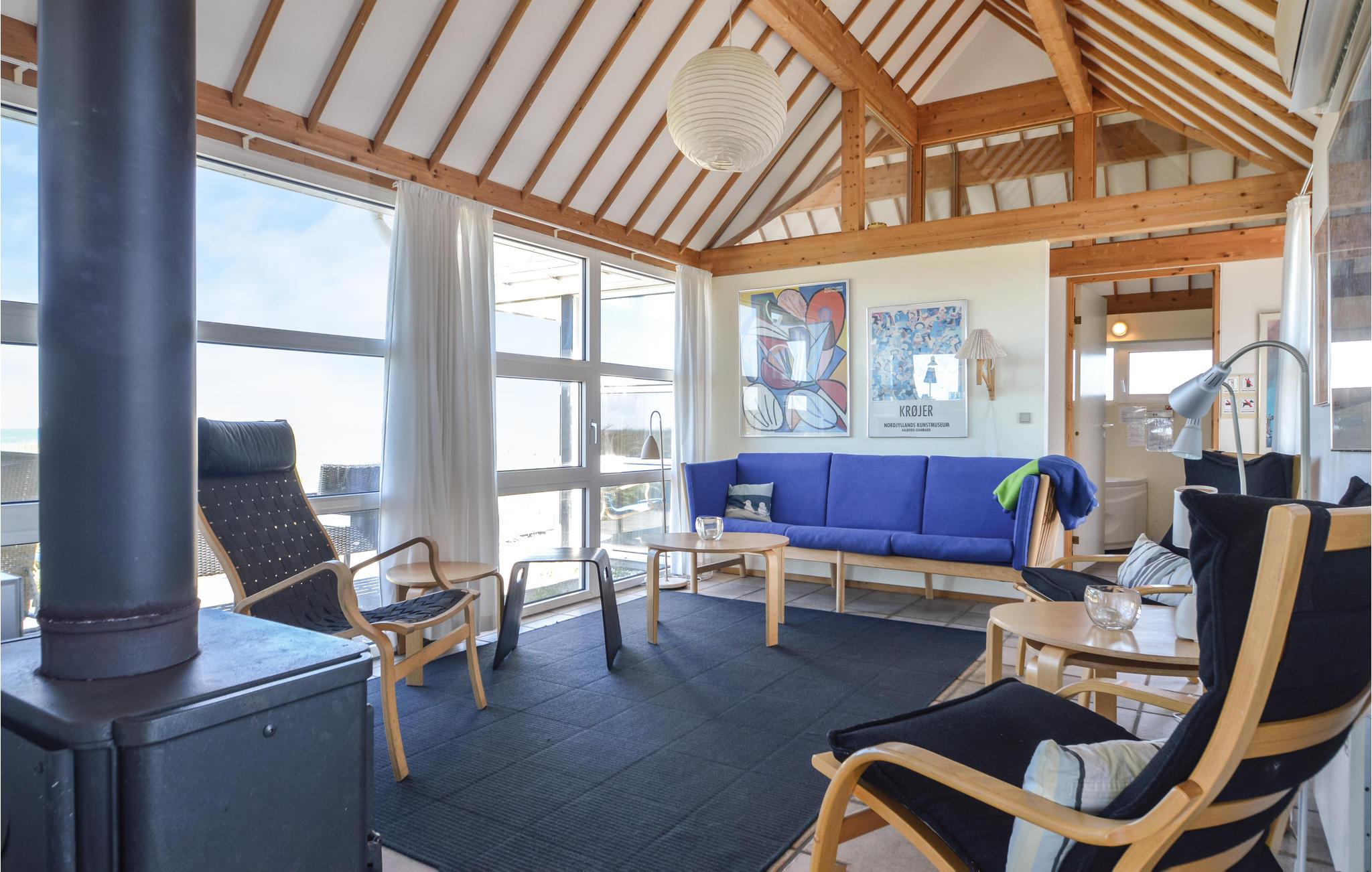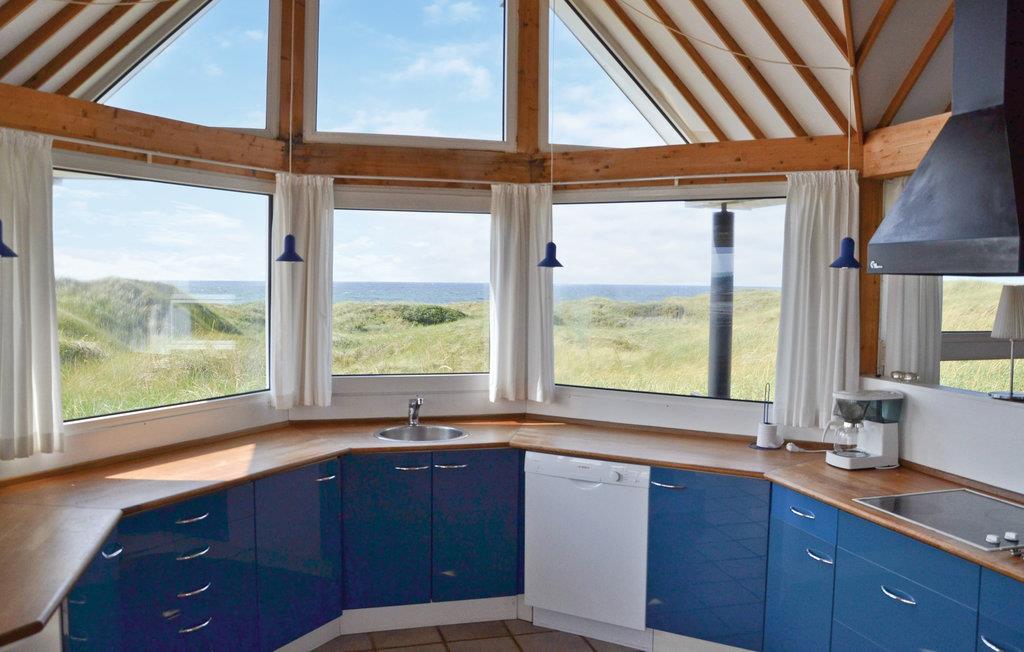 Hoch gelegen bei Løkken finden Sie dieses Ferienhaus, in der besten Lage der Gegend. mit fantastischem Blick über Meer und Dünen nach Westen, nach Osten blicken Sie ungehindert über das Ferienhausgebiet. Hier hat jede Jahreszeit ihren Charme. Nach einem ordentlichen Herbststurm können Sie im nassen Sand Bernstein finden. Es gibt auch zahlreiche wunderschöner Natursteine, die zu feinstem Schmuck verarbeitet werden können. Das Gebiet bietet eine Reihe von Aktivitäten für die ganze Familie. Es gibt Bowlingbahnen, Vergnügungspark für Kinder, subtropische Schwimmbäder, Golfplätze, Angelparks, Reitzentren, Sporthallen und vieles mehr. Besuchen Sie auch Fårup Aquapark & Sommerland, Dänemarks größtes seiner Art. Wenn der Eintrittspreis bezahlt ist, sind alle Aktivitäten kostenlos. Supermarkt und Restaurants sind das ganze Jahr über geöffnet.