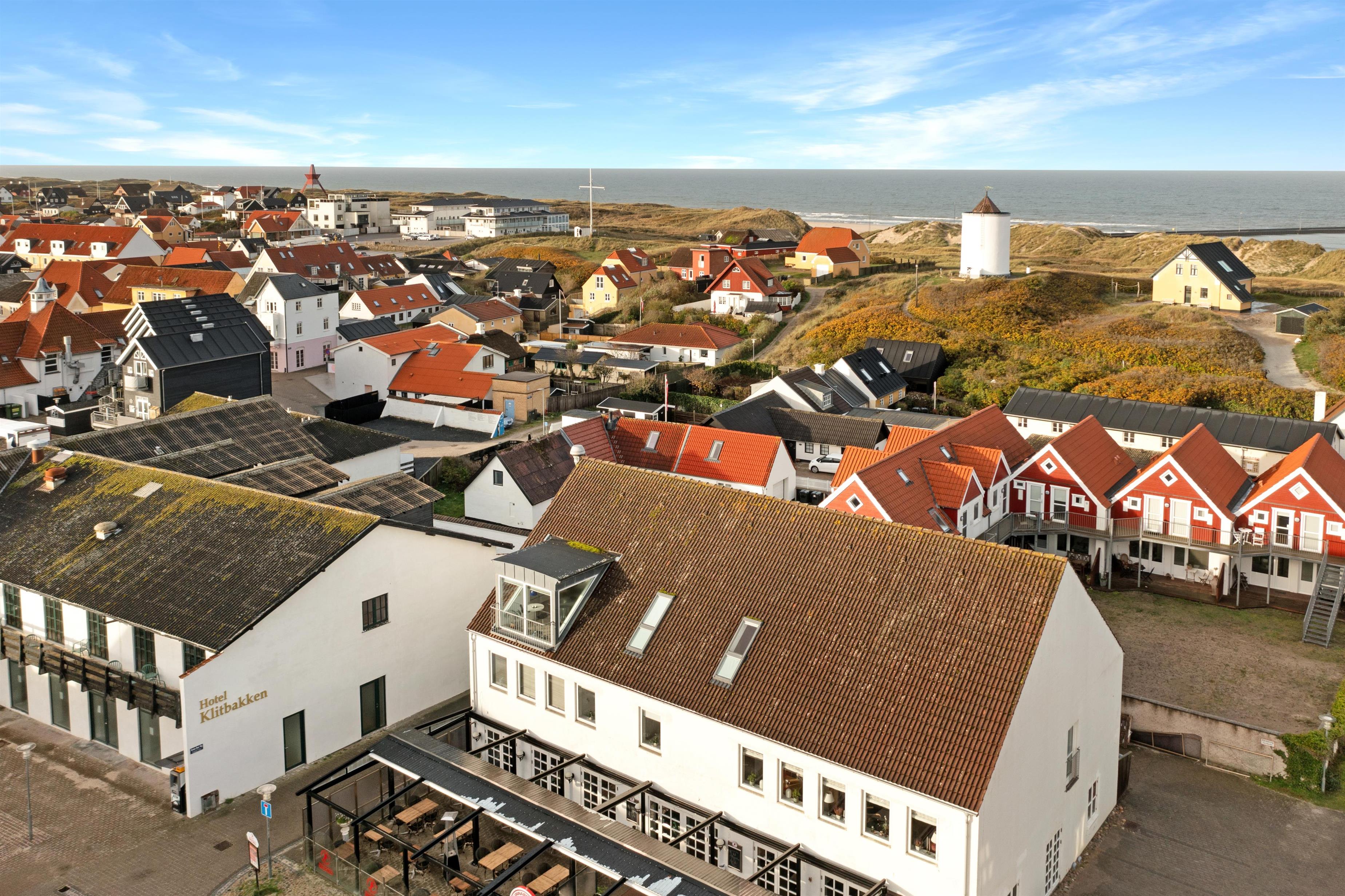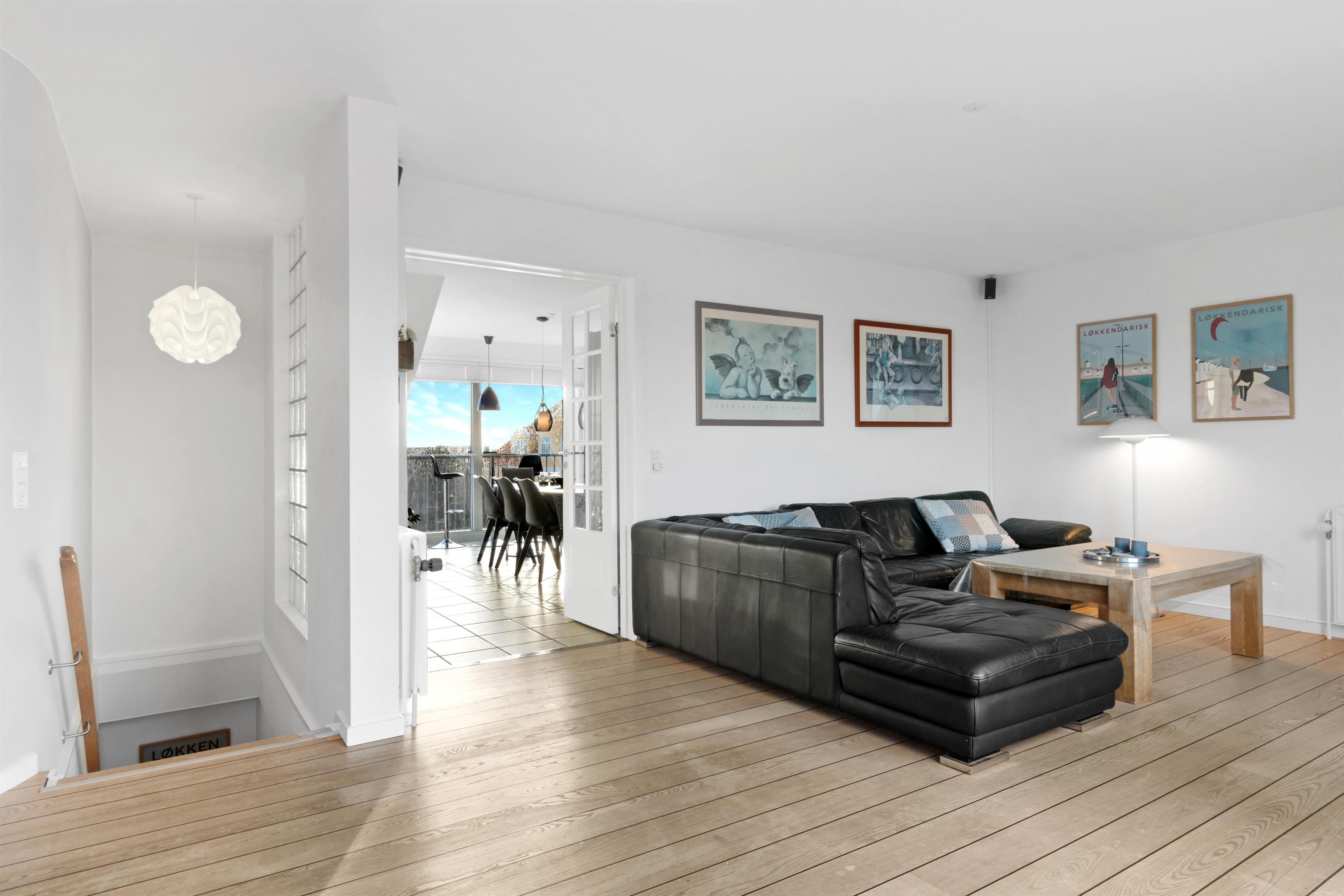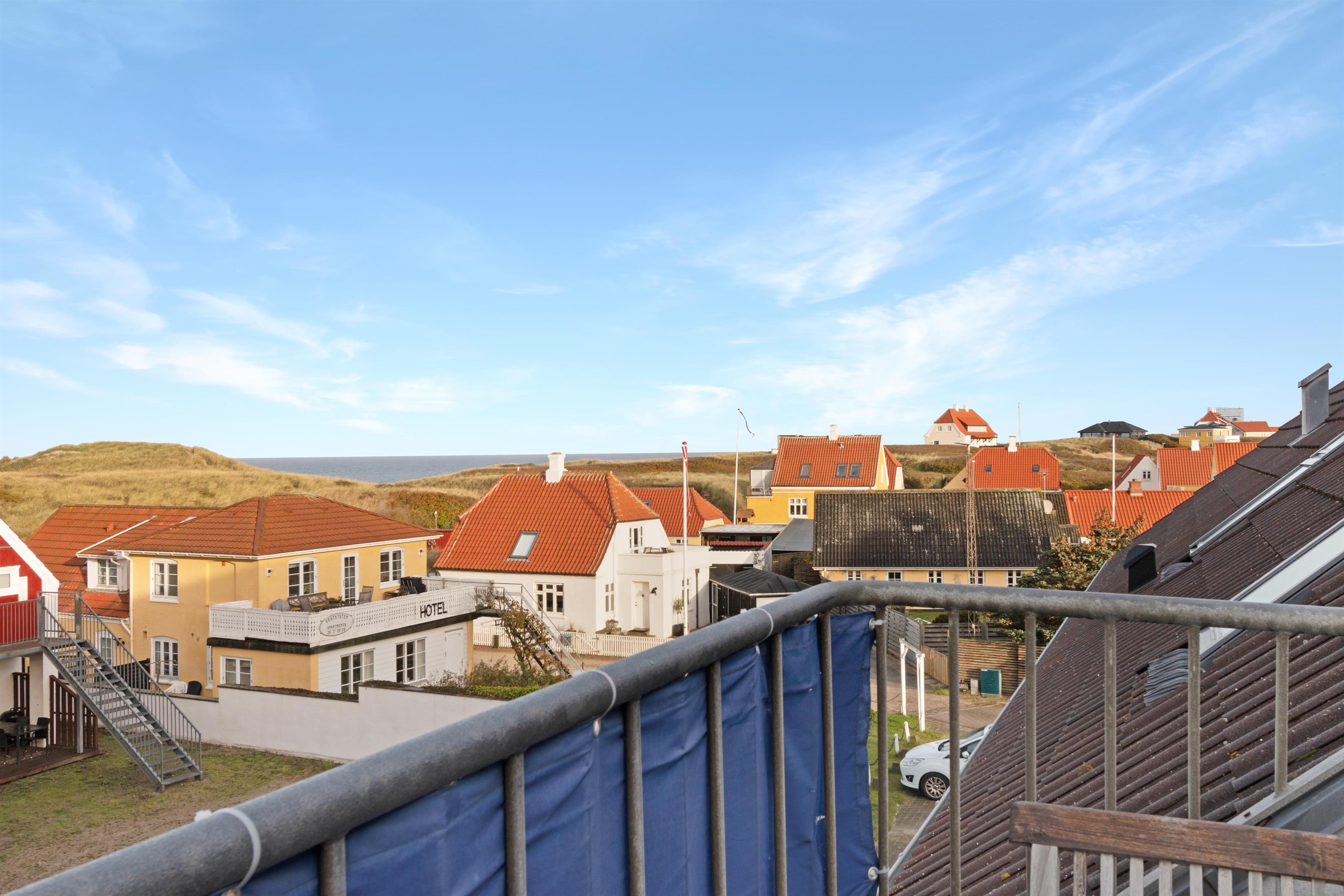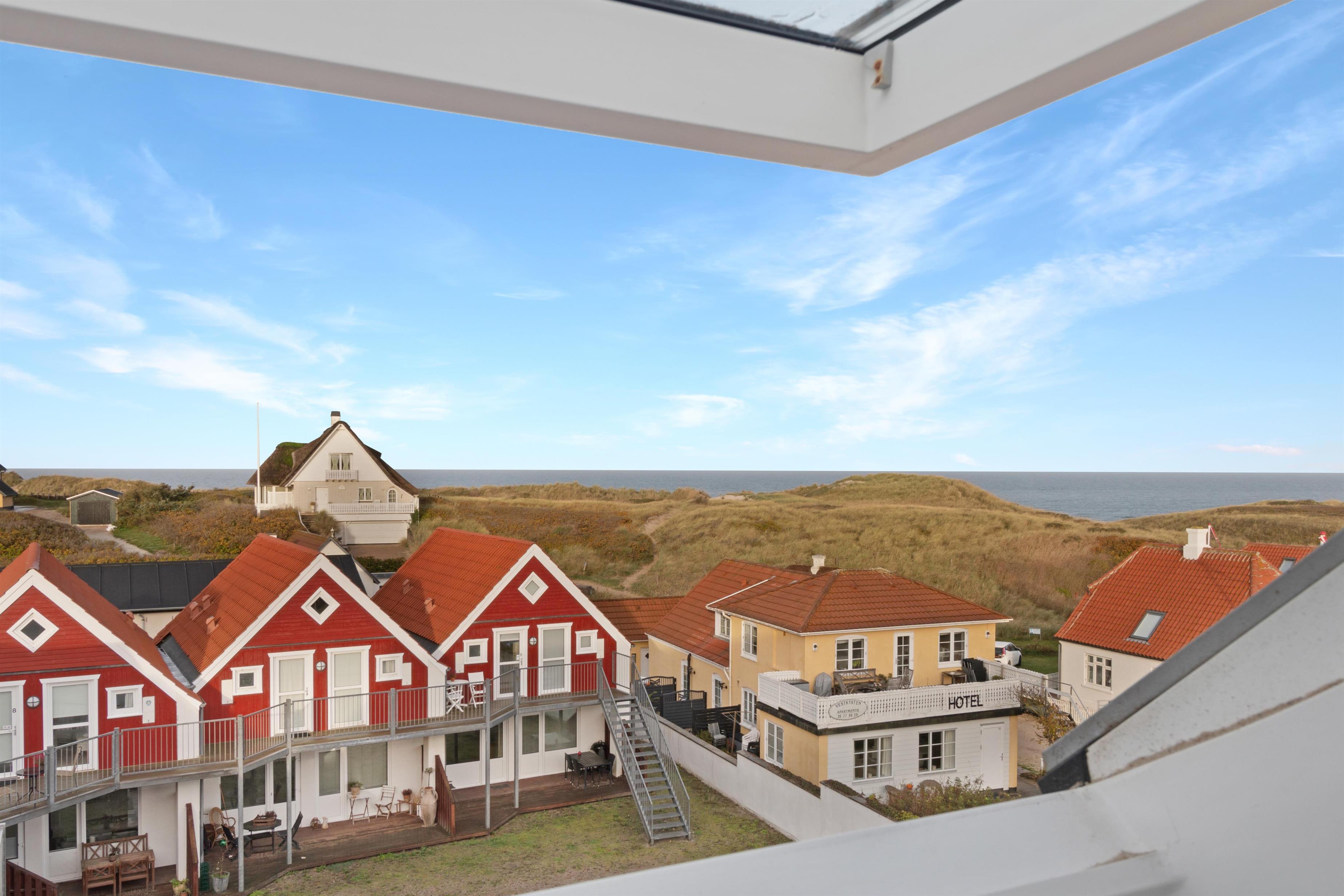 This holiday apartment, located in the absolute center of Løkken in Denmark, is truly a gem of a holiday rental. The apartment is on two floors + a loft with a separate bedroom, and the view over both the city of Løkken and the North Sea is definitely worth a visit! There is room for 10 people and a child up to 3 years old. There are 5 bedrooms and two bathrooms spread over the wonderful 172 m² - 8 sleeping places in double beds and 2 in single beds. In addition, there is 1 children’s bed, and you are allowed to bring your pet. There is floor heating in the kitchen and in both bathrooms. In addition, there are several super characteristics of the apartment.