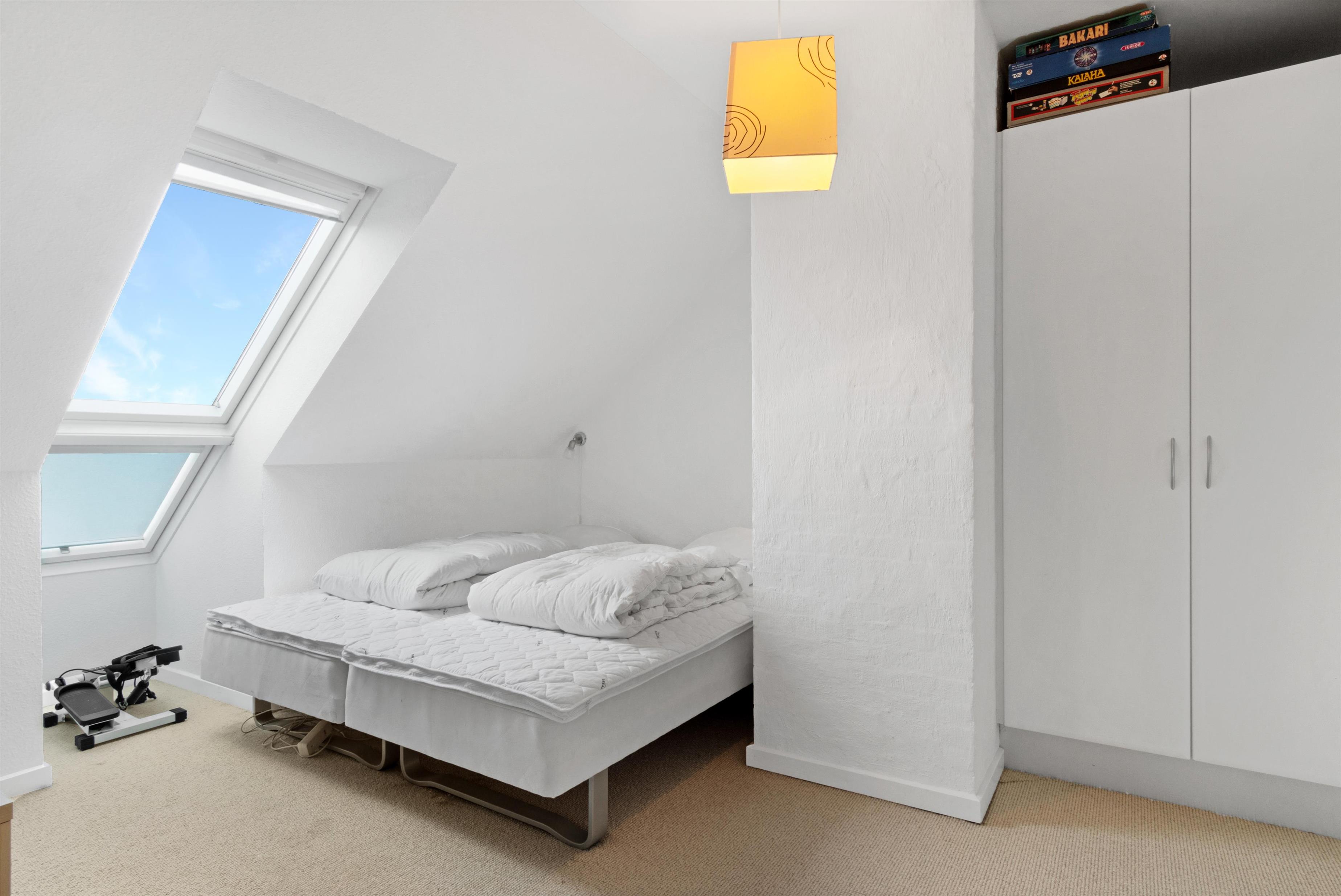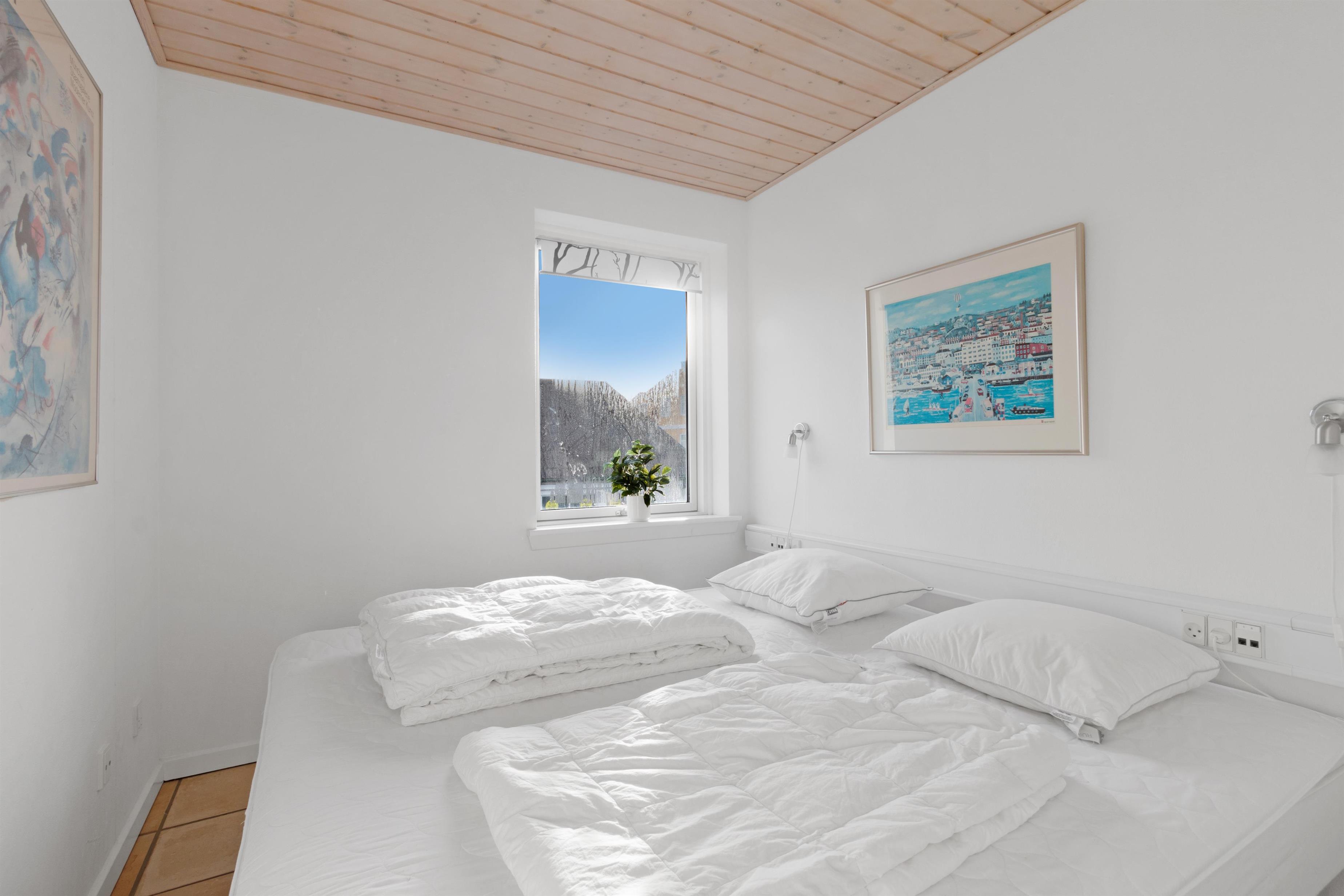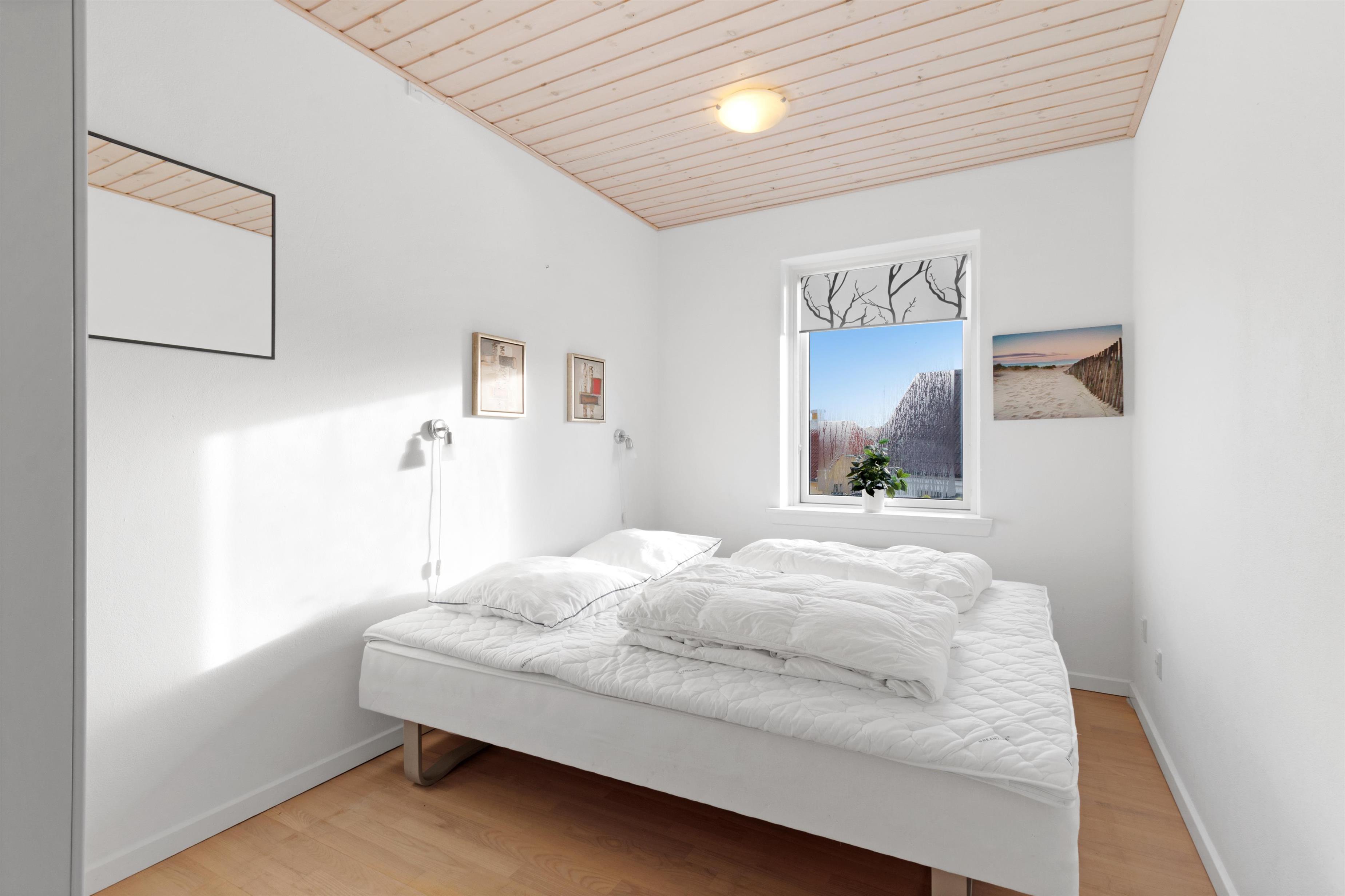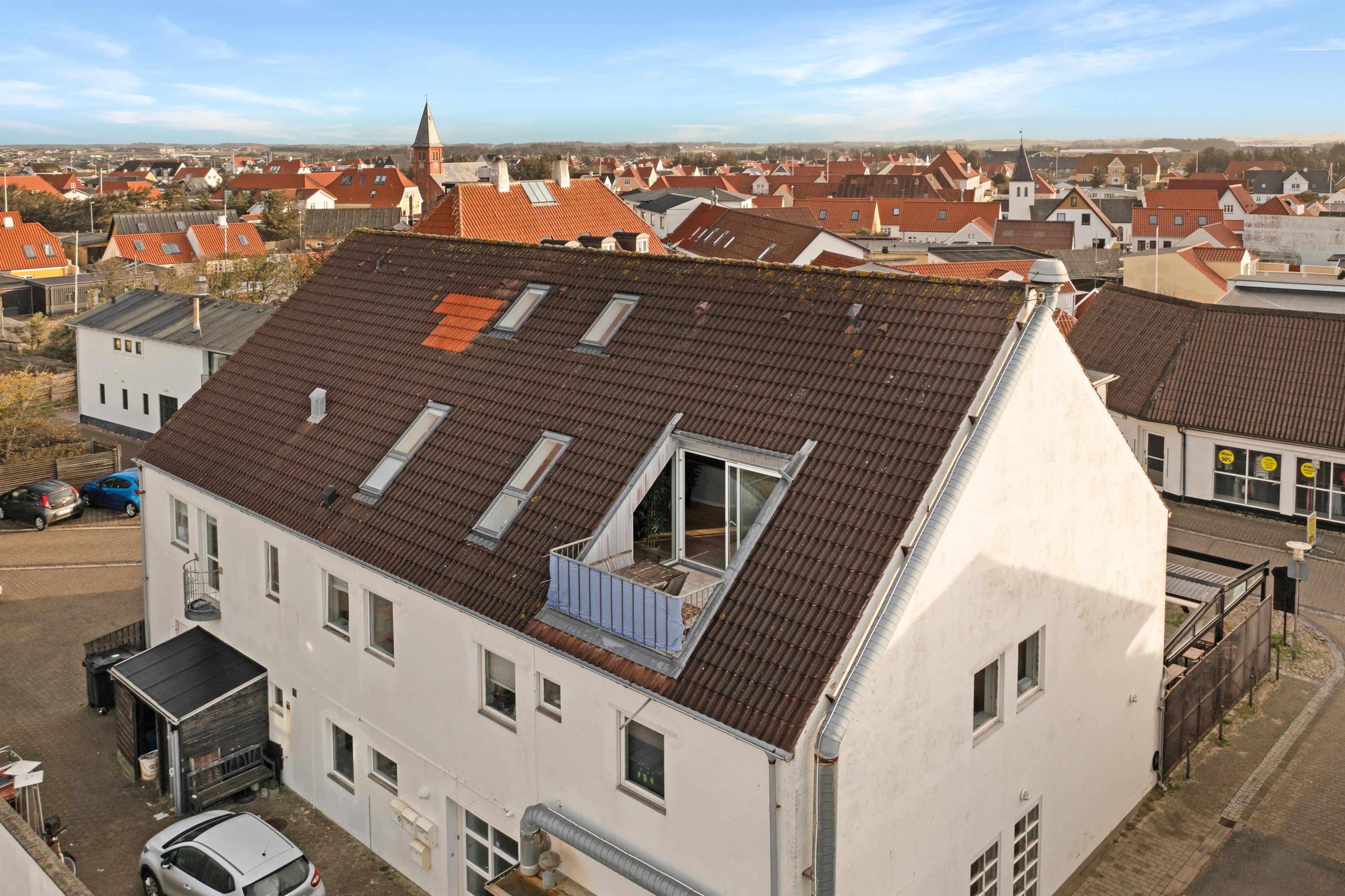 This holiday apartment, located in the absolute center of Løkken in Denmark, is truly a gem of a holiday rental. The apartment is on two floors + a loft with a separate bedroom, and the view over both the city of Løkken and the North Sea is definitely worth a visit! There is room for 10 people and a child up to 3 years old. There are 5 bedrooms and two bathrooms spread over the wonderful 172 m² - 8 sleeping places in double beds and 2 in single beds. In addition, there is 1 children’s bed, and you are allowed to bring your pet. There is floor heating in the kitchen and in both bathrooms. In addition, there are several super characteristics of the apartment.
