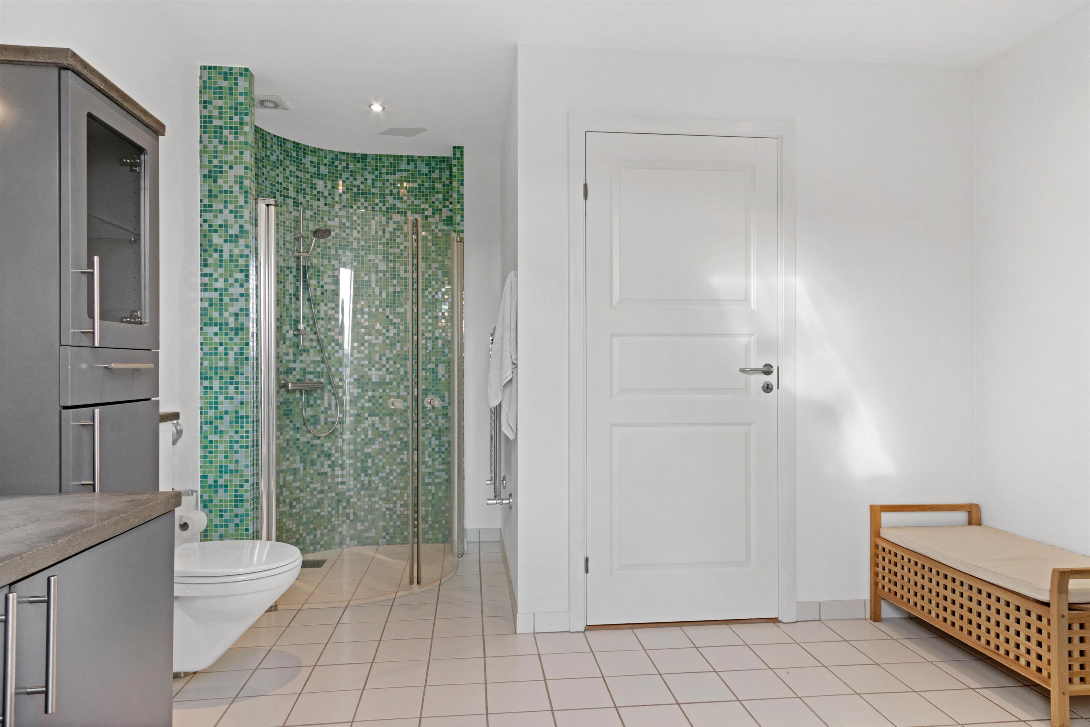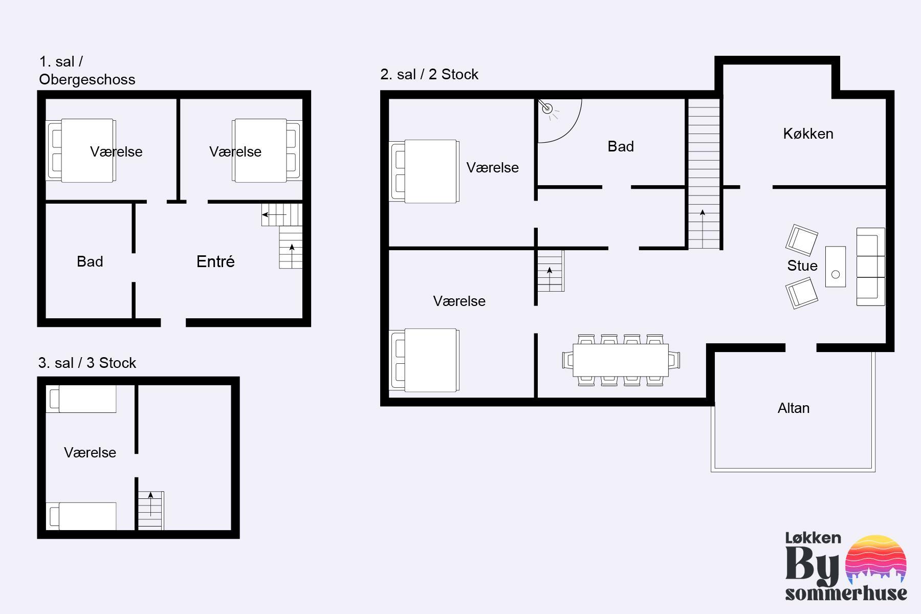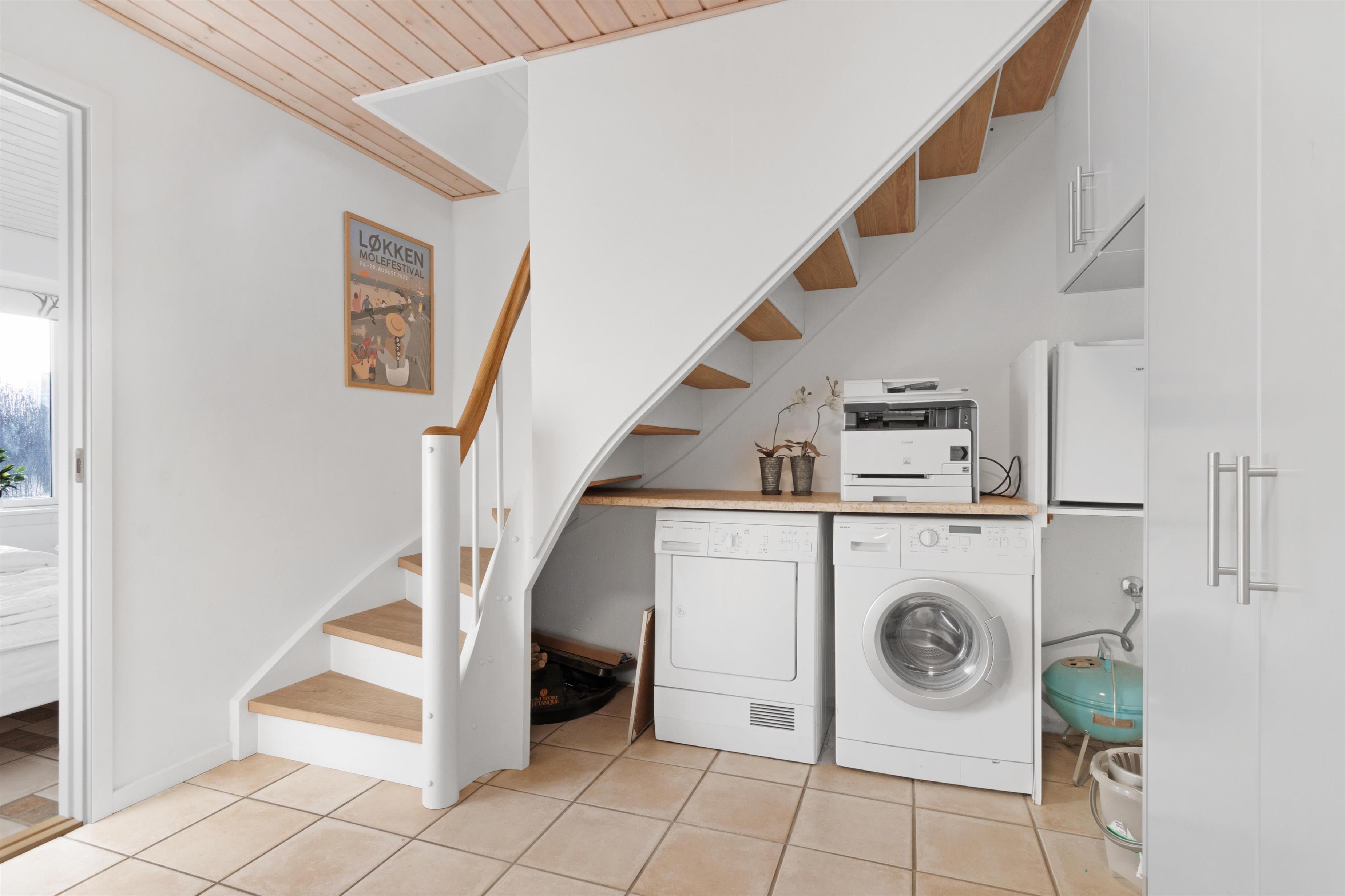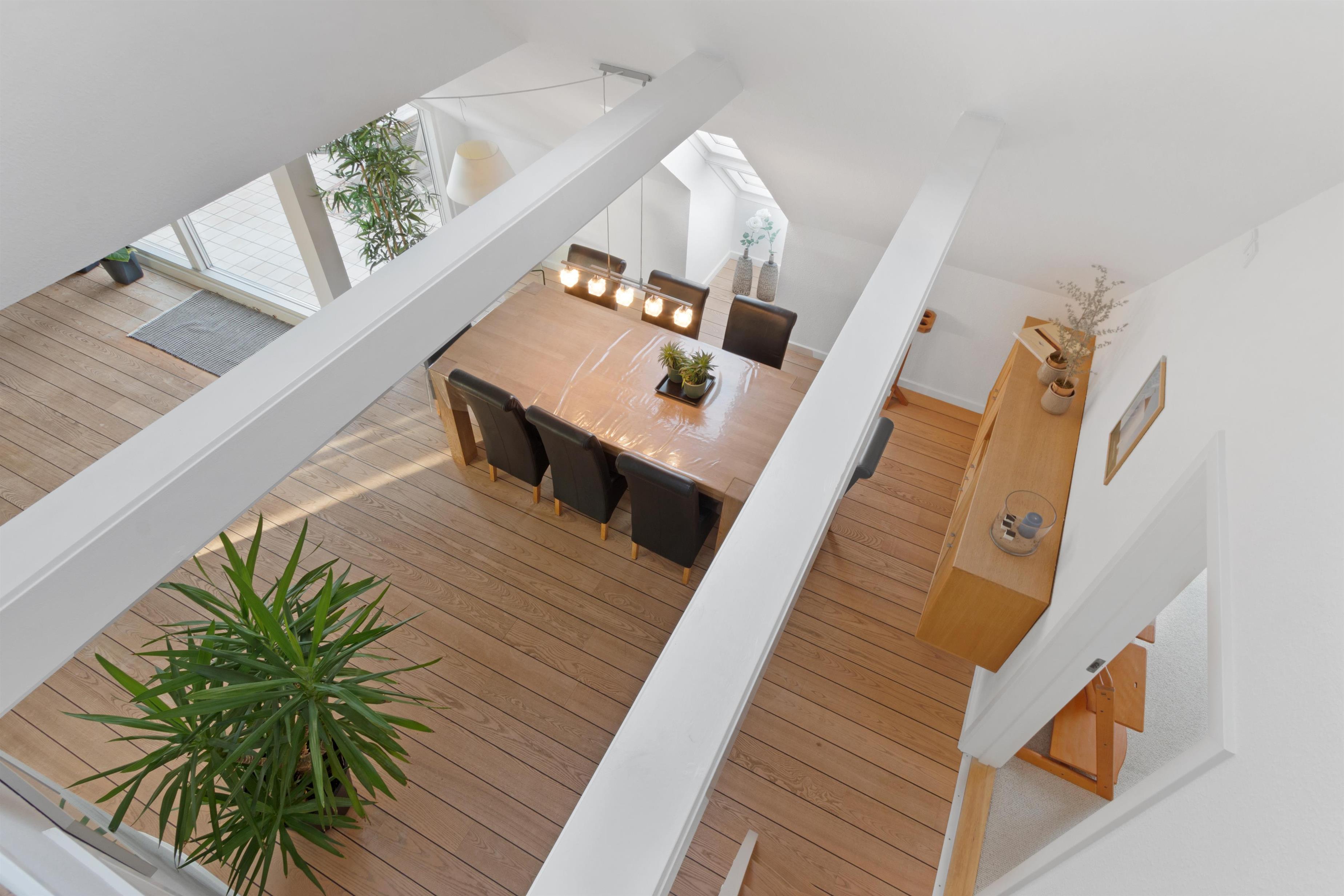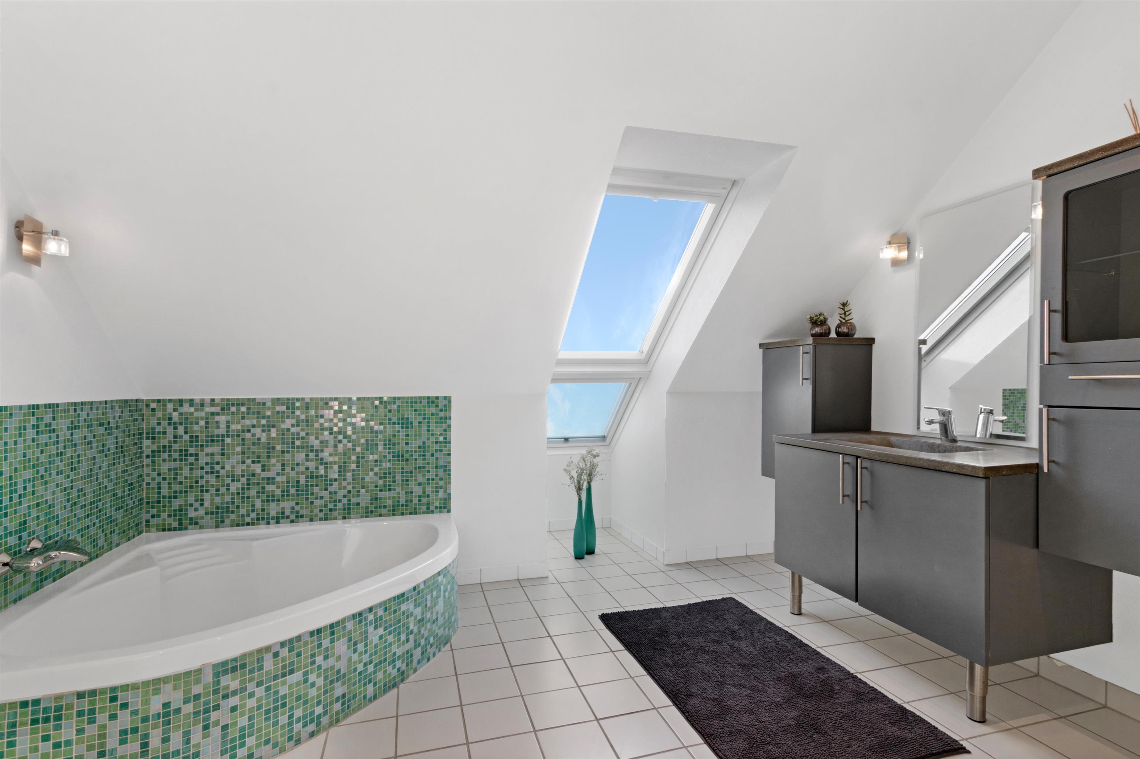This holiday apartment, located in the absolute center of Løkken in Denmark, is truly a gem of a holiday rental. The apartment is on two floors + a loft with a separate bedroom, and the view over both the city of Løkken and the North Sea is definitely worth a visit! There is room for 10 people and a child up to 3 years old. There are 5 bedrooms and two bathrooms spread over the wonderful 172 m² - 8 sleeping places in double beds and 2 in single beds. In addition, there is 1 children’s bed, and you are allowed to bring your pet. There is floor heating in the kitchen and in both bathrooms. In addition, there are several super characteristics of the apartment.