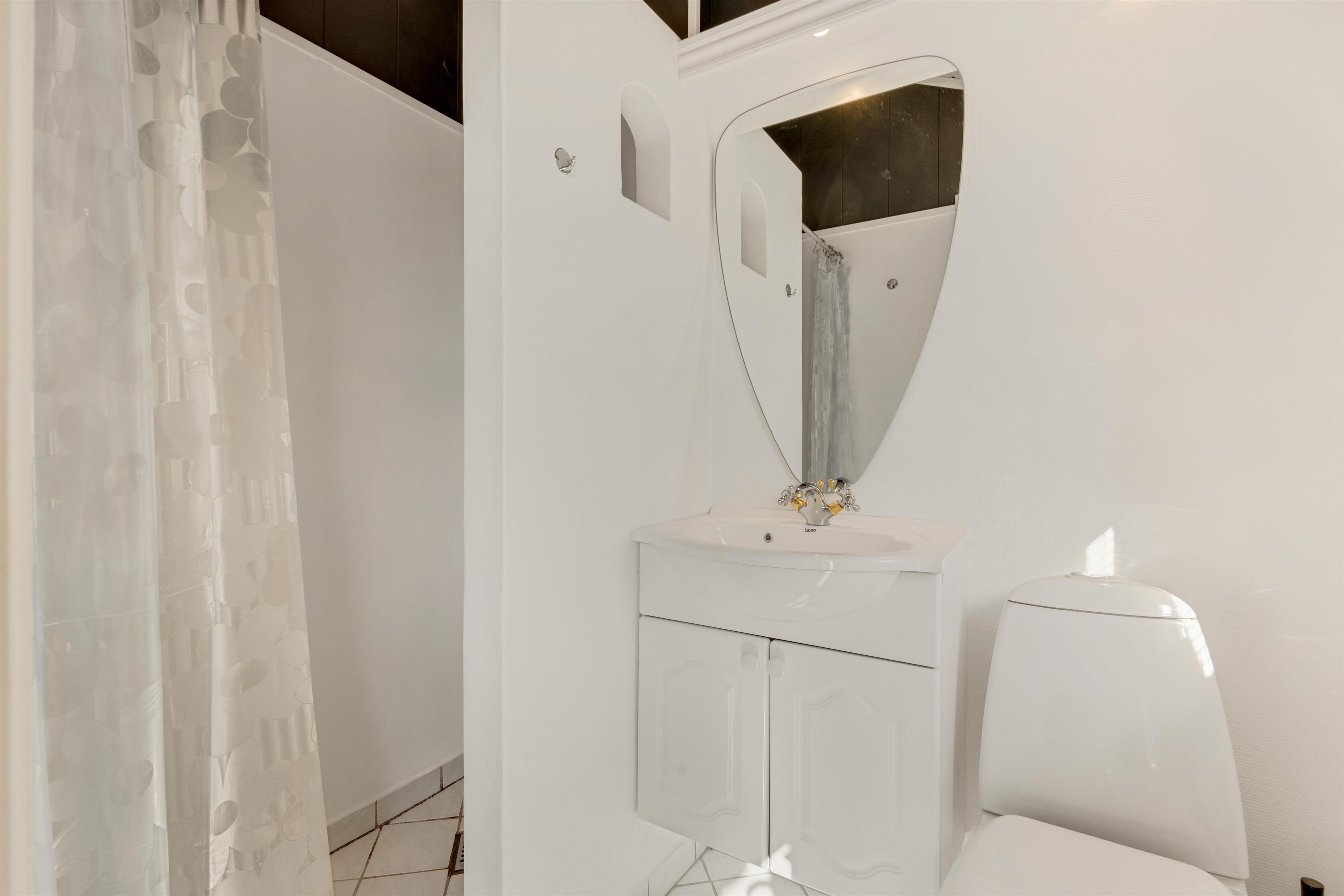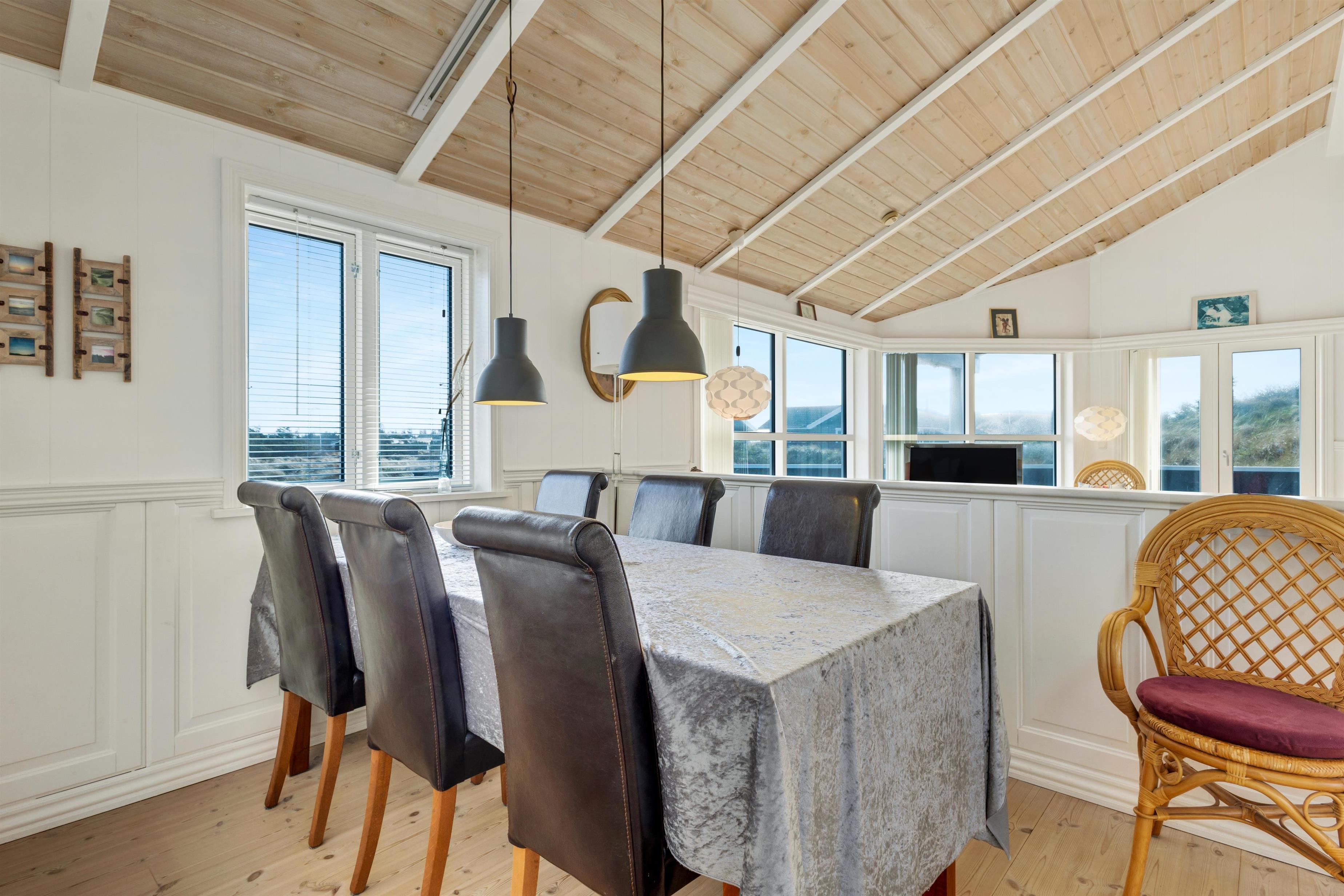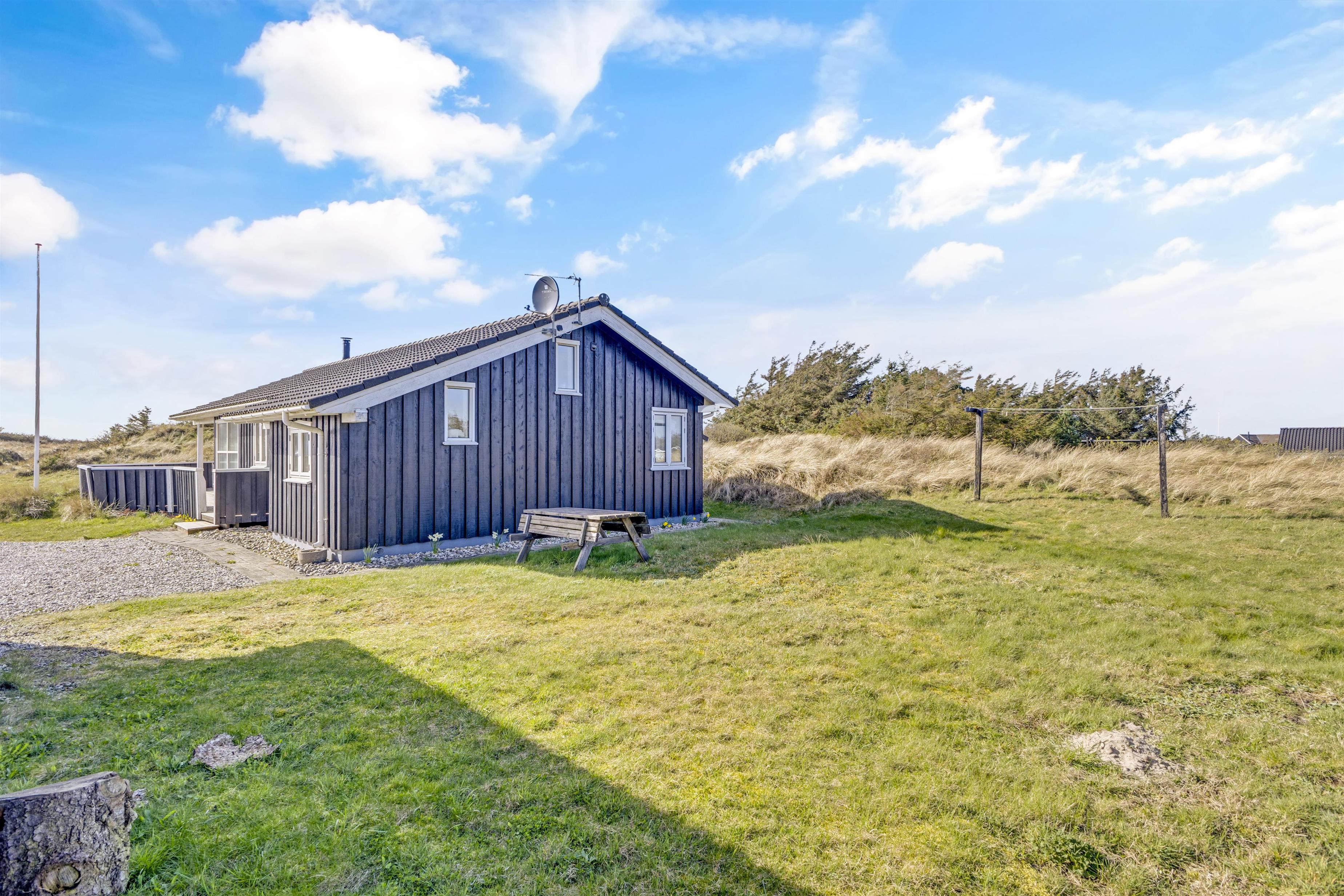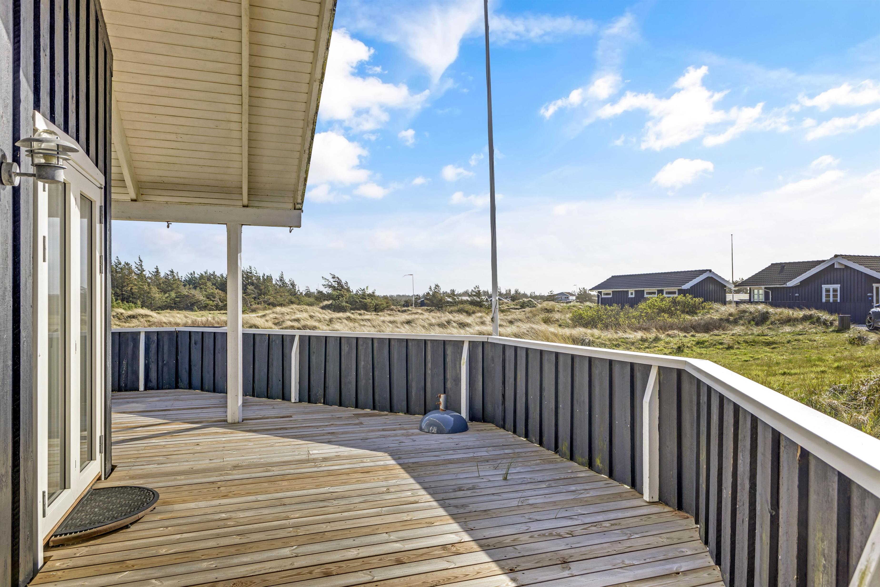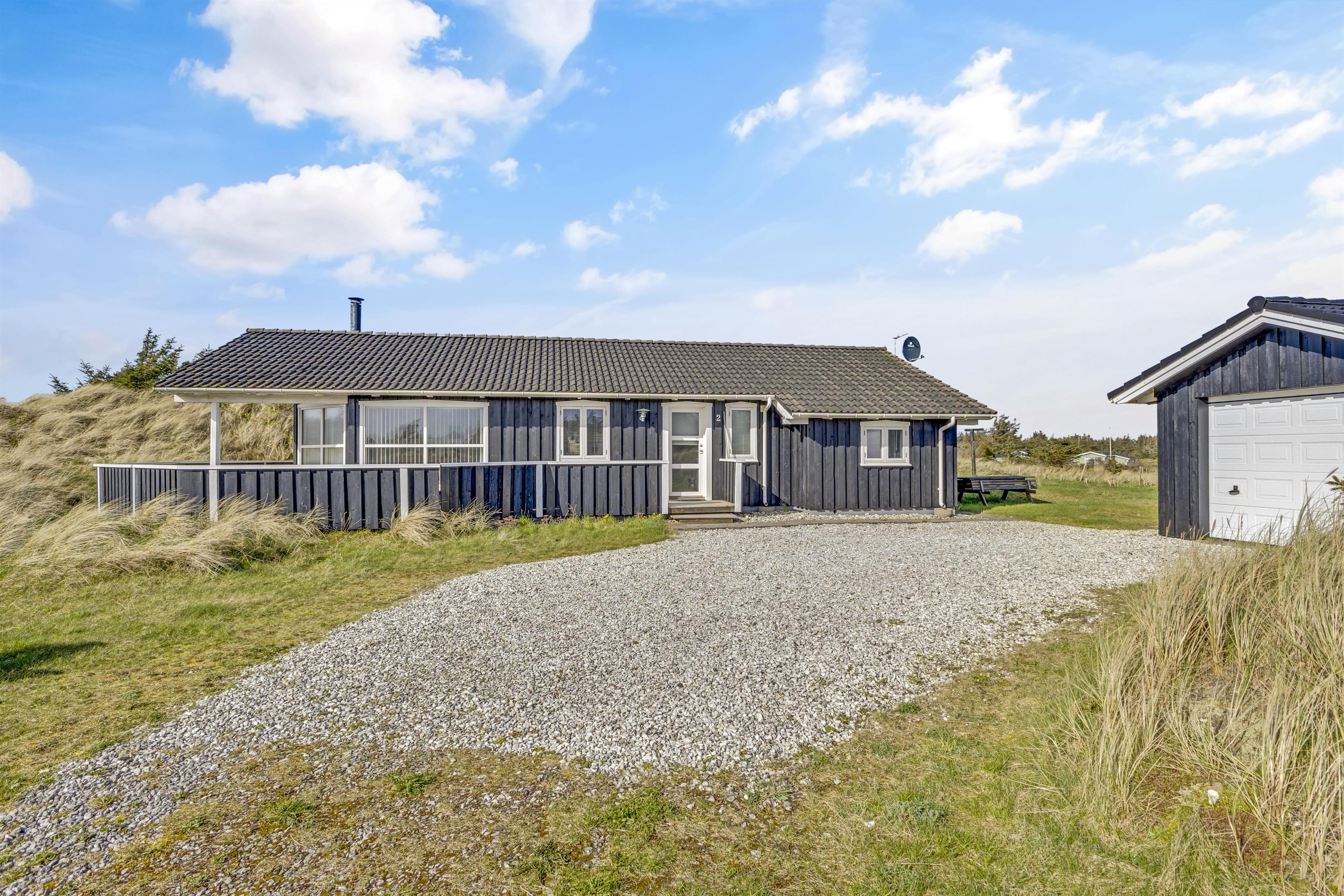 The holiday home is located on a 2674 square meter large and hilly natural plot, which exudes a Danish holiday home area. The surroundings are quiet and recreational, and the beach is only 375 meters away. When the Grønhøj Strand Købmand is open, you have shopping opportunities within about 350 meters. The holiday home offers lovely terraces, one of which is covered, and you can relax in the comfortable furniture for hours.