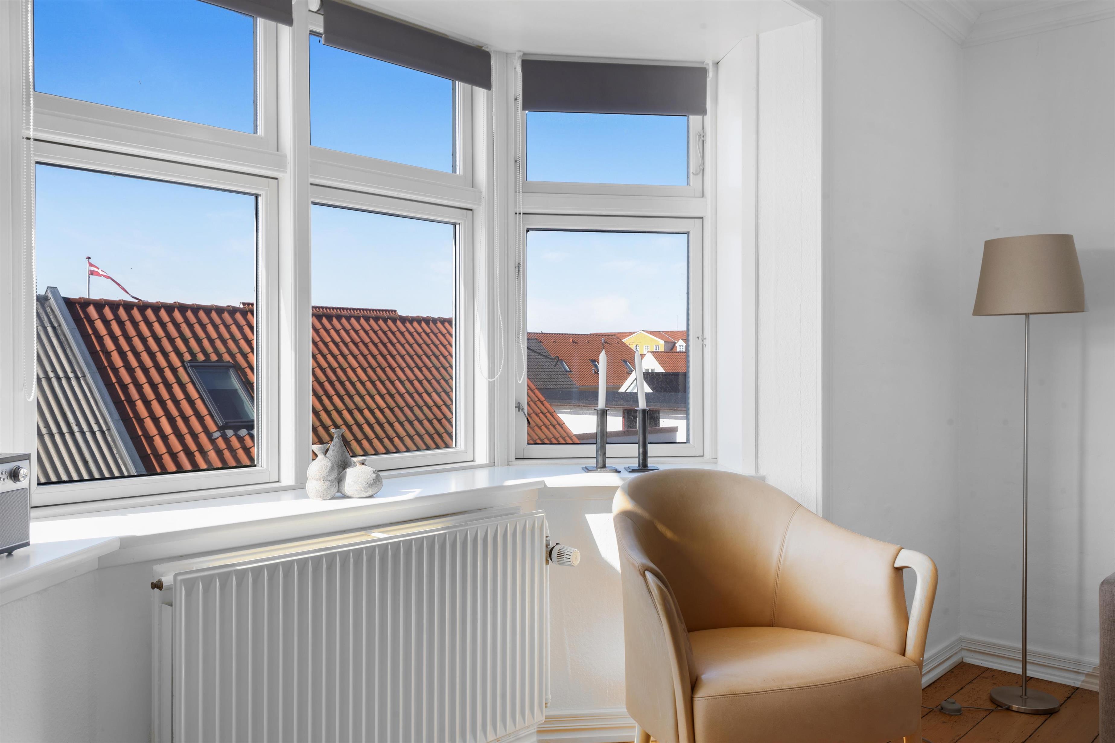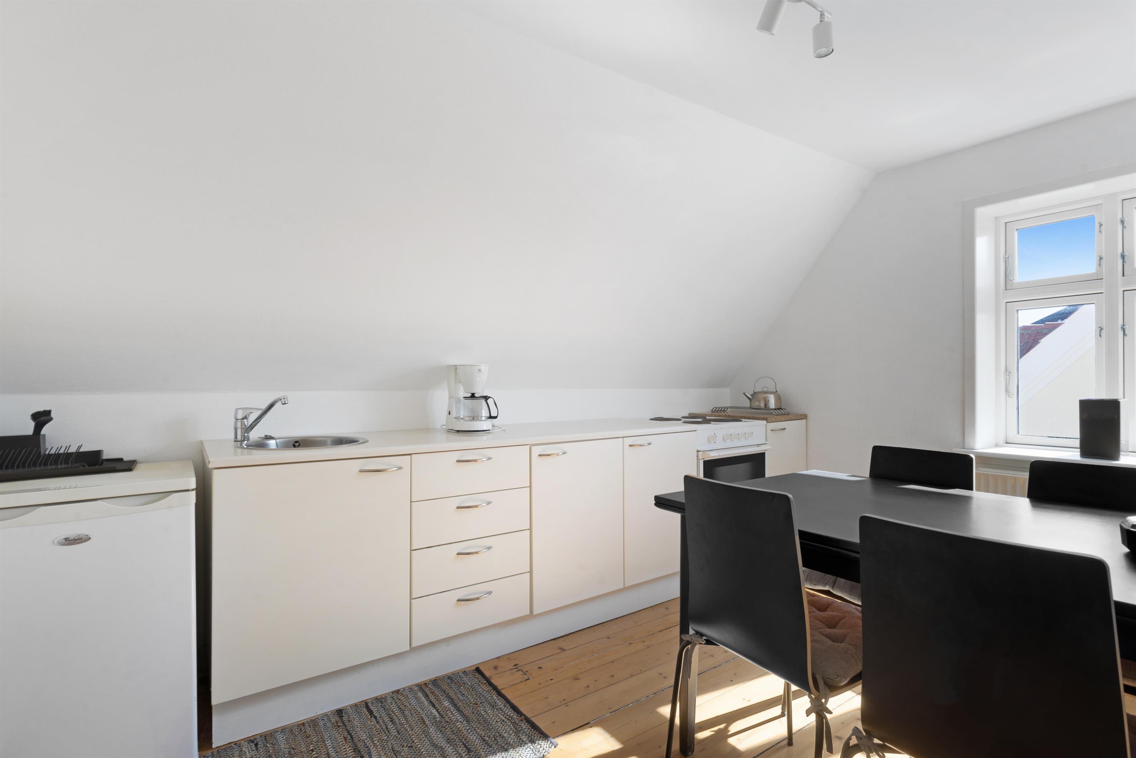 In this lovely holiday apartment, you live in the heart of Løkken, a very popular holiday town due to its beautiful nature, wide beach, the impressive North Sea, and a wealth of activities. The apartment is located on the 1st floor and accommodates 2 people. The living room is very charming with the large, round windows that let the sun's rays light up the room.