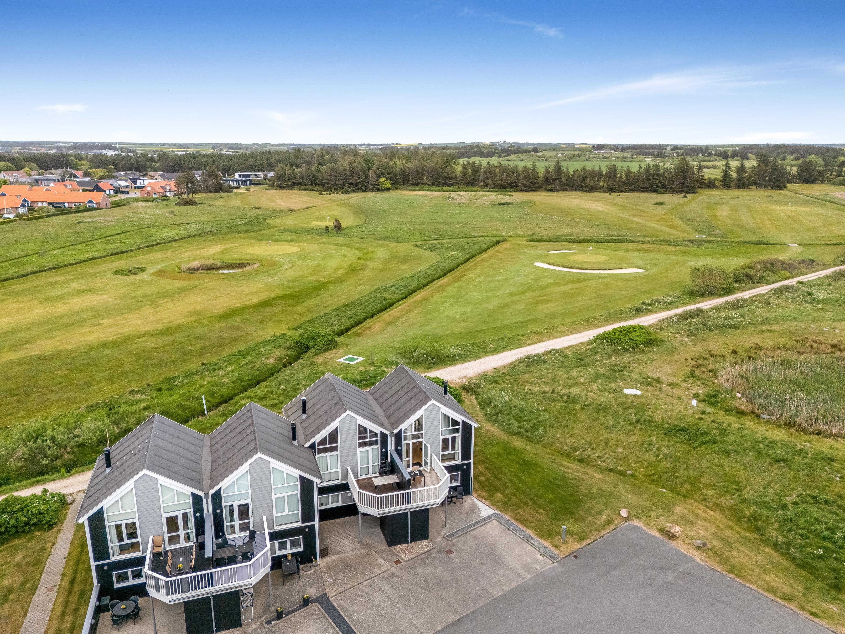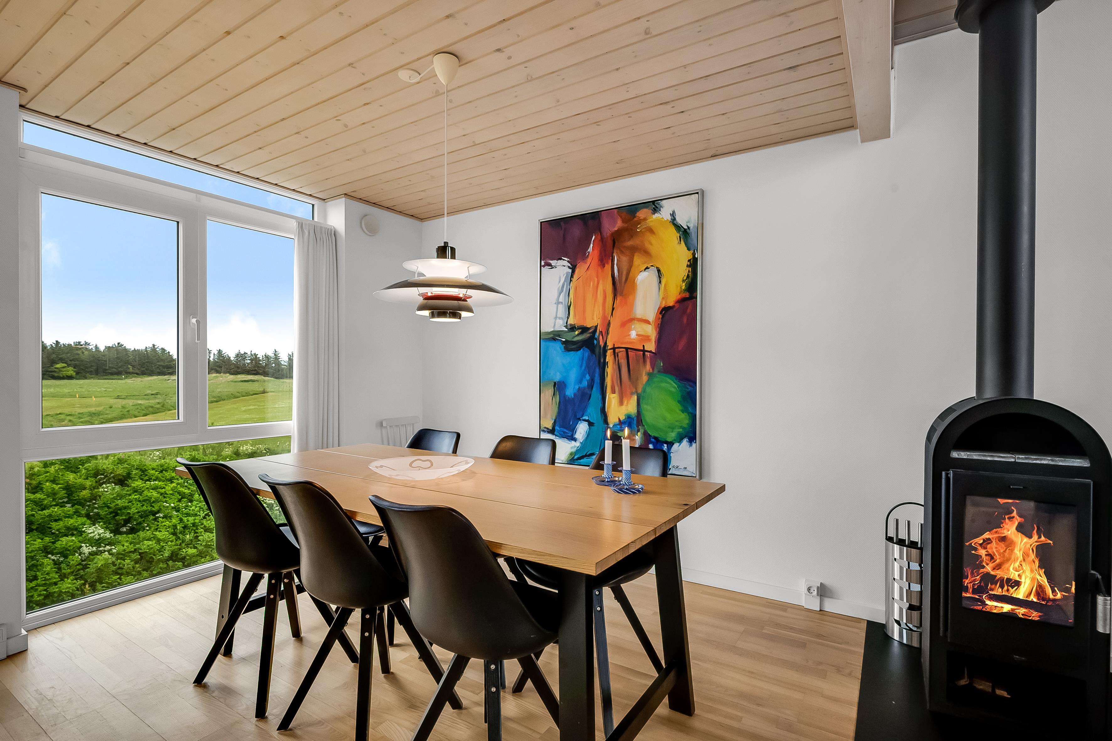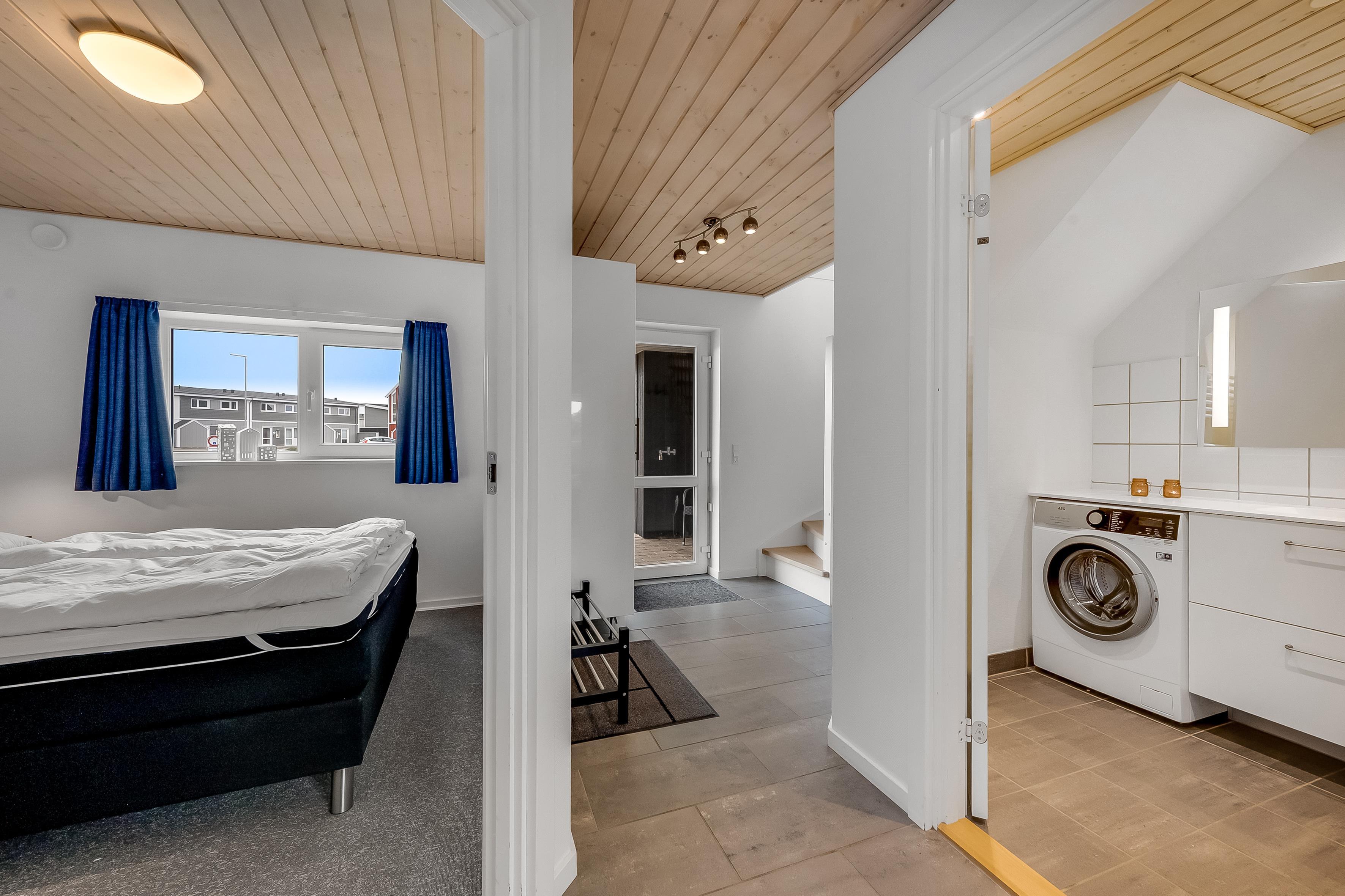 On the ground floor, the holiday home welcomes you with an inviting entrance and stairs leading to the first floor. Here, you'll find three bedrooms and a bathroom. The first floor features a bright and spacious open-plan kitchen and a cozy living room with access to a lovely terrace on one side and views over the golf course and Åsendrup Banesti on the other. From the kitchen, there's access to a large and cozy loft with the possibility of two additional sleeping spaces. The first floor impresses with its high ceilings and fantastic views.?