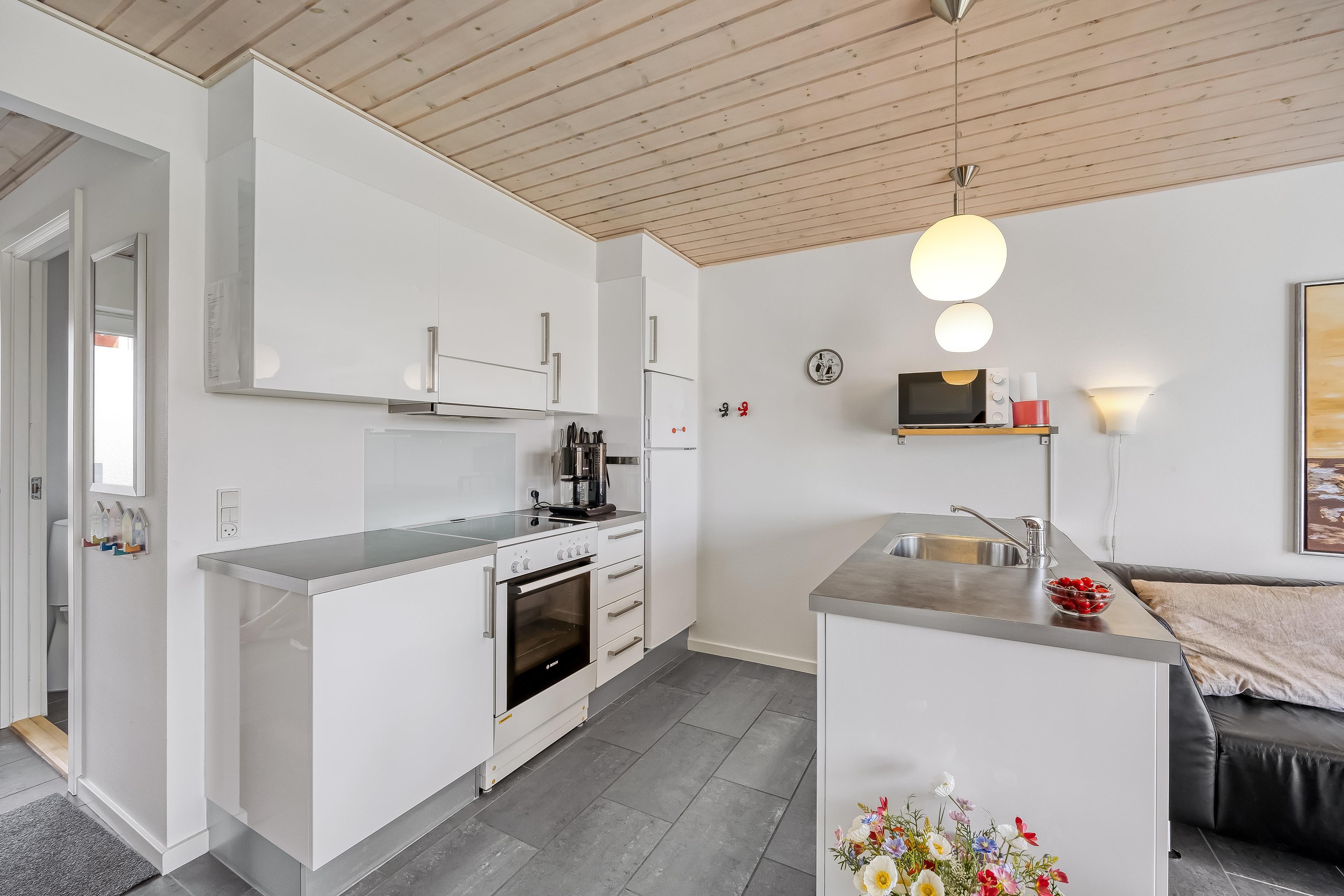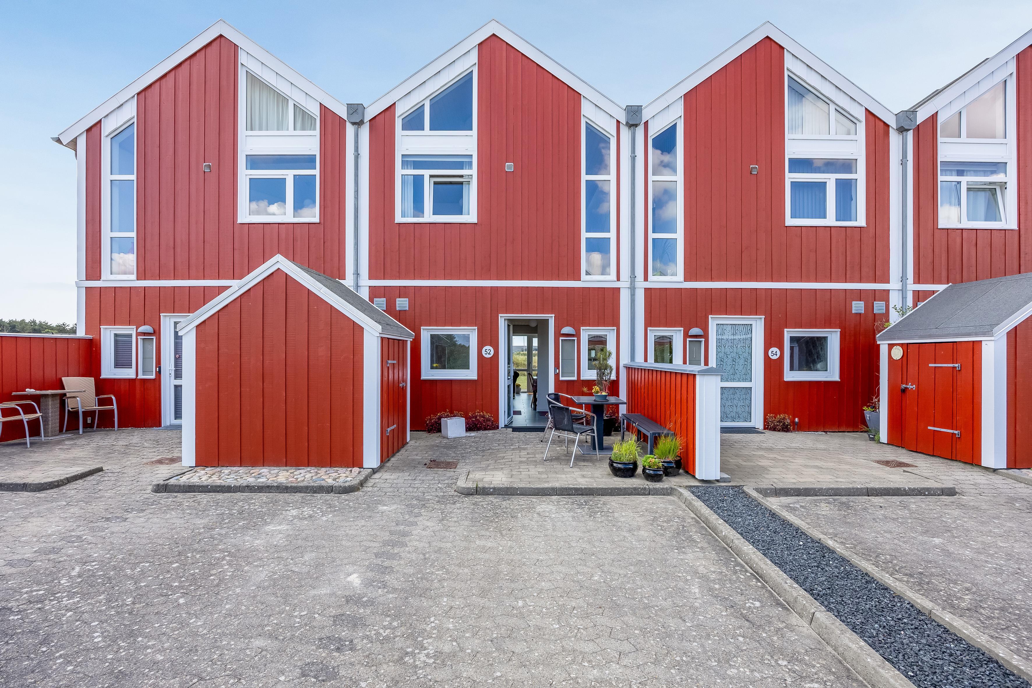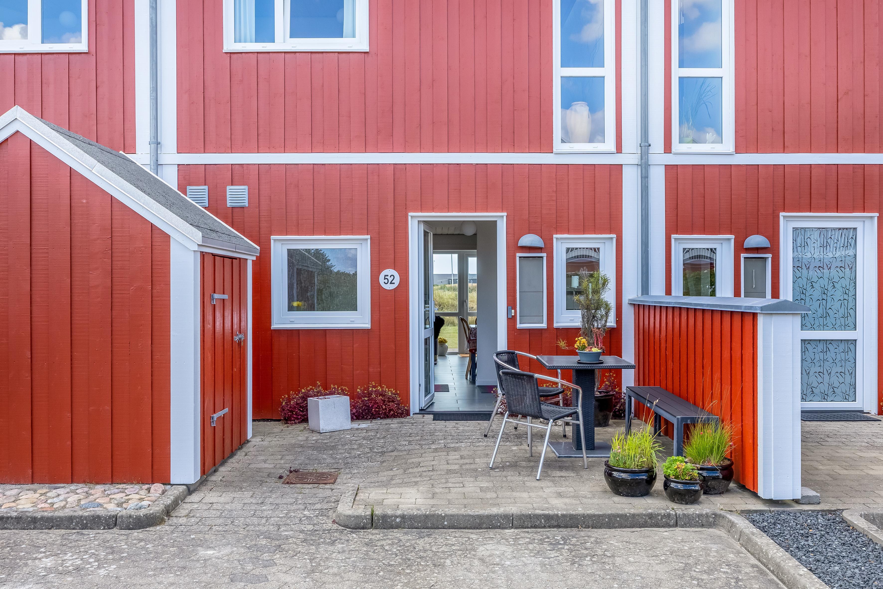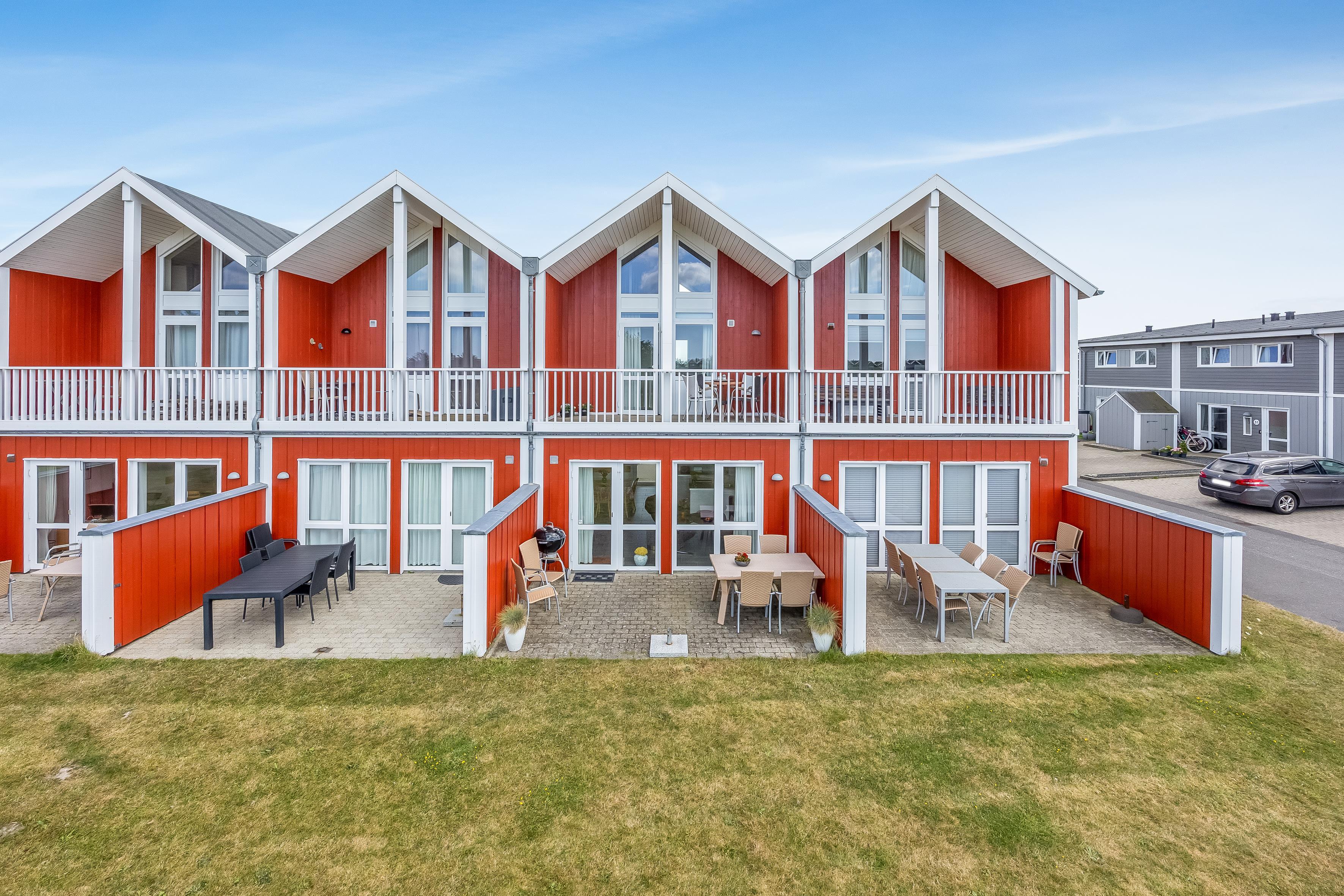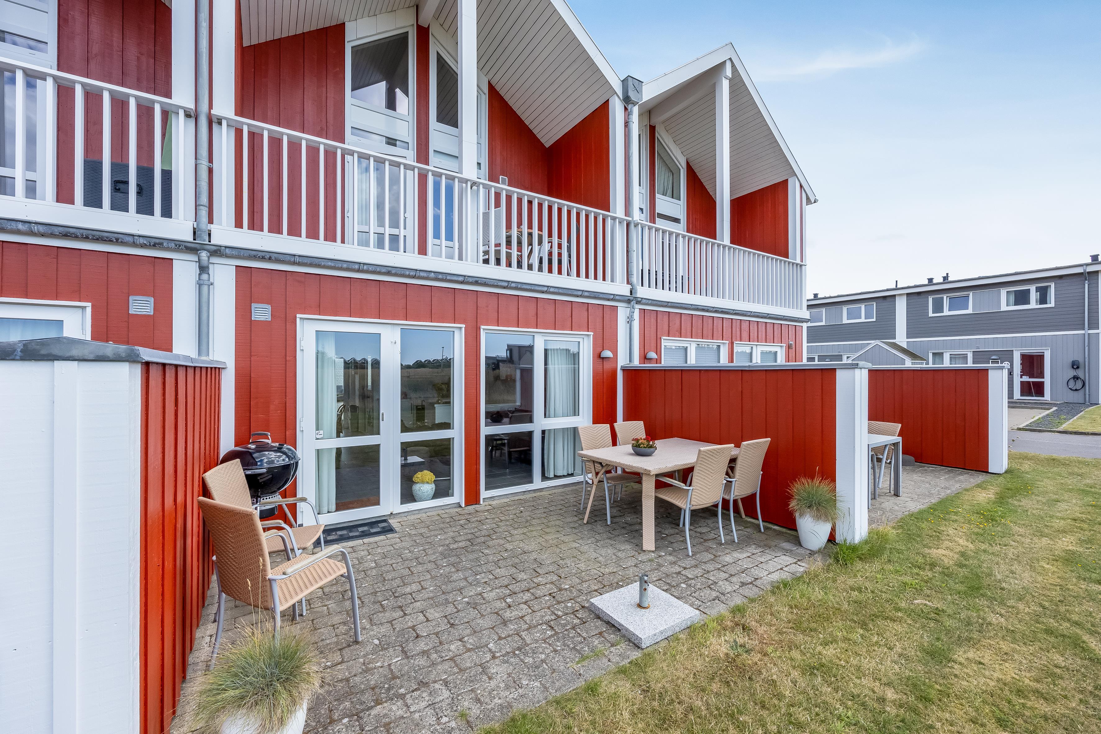 The apartment is suitable for 6 people and one child up to 3 years old, or other combinations of guests. Built in 2009, the apartment is 79 m² on two levels and situated on a 500 m² natural plot. The west-facing terrace is 29 m², where you can enjoy your coffee while the children play either on the nearby playground or the small football field. On the first floor, there’s access to a lovely west-facing balcony – perfect for a cold refreshment. To the east, you have a smaller terrace where you can enjoy your morning coffee and lunch in the sun.
