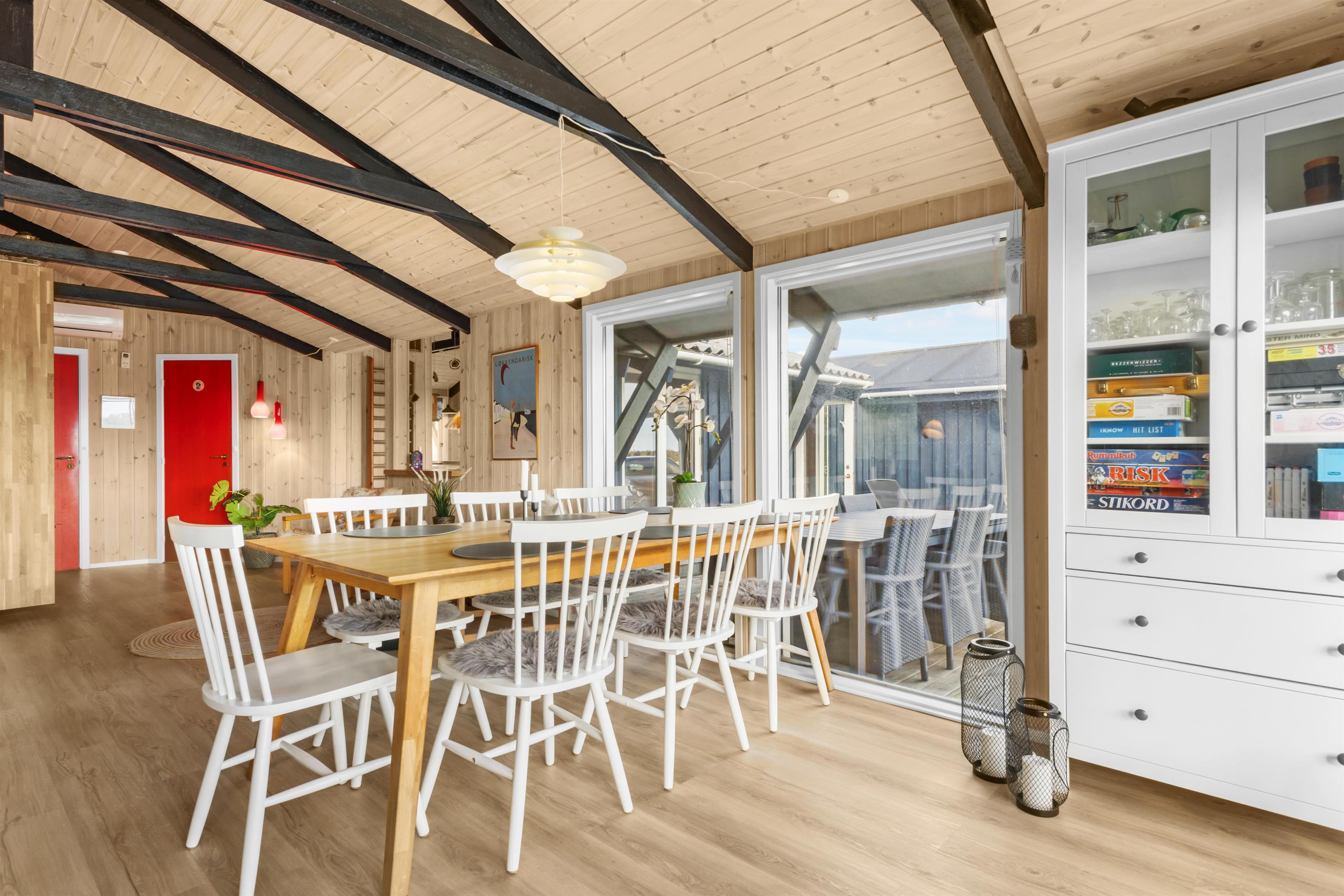 In this holiday home, there is room for up to 10 people across 125 lovely square meters, provided that 3 of them are willing to sleep on extra beds. It’s a traditional summer house with 1 bathroom, 2 toilets, sauna, a Swedish bath, and an outdoor shower. For series enthusiasts, there is extra luxury with free Netflix, HBO, and Chrome Cast. You can cozy up by the fireplace, and there’s also a heater. Parking is easy, as the house is at the end of a dead-end street. The style is, as mentioned, traditional Danish summer house coziness, offering plenty of opportunities to enjoy the holiday both outdoors on the lovely terraces and indoors.