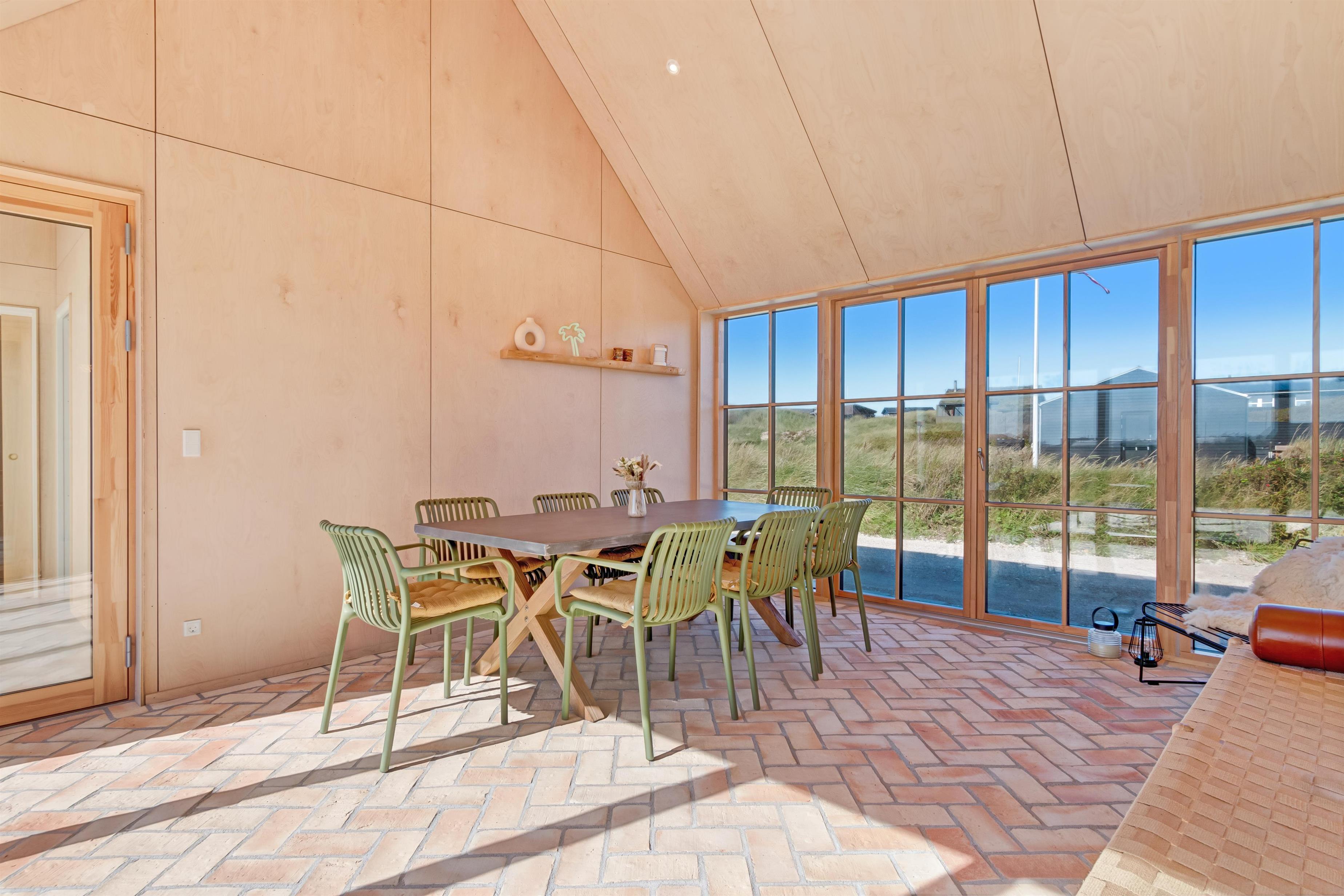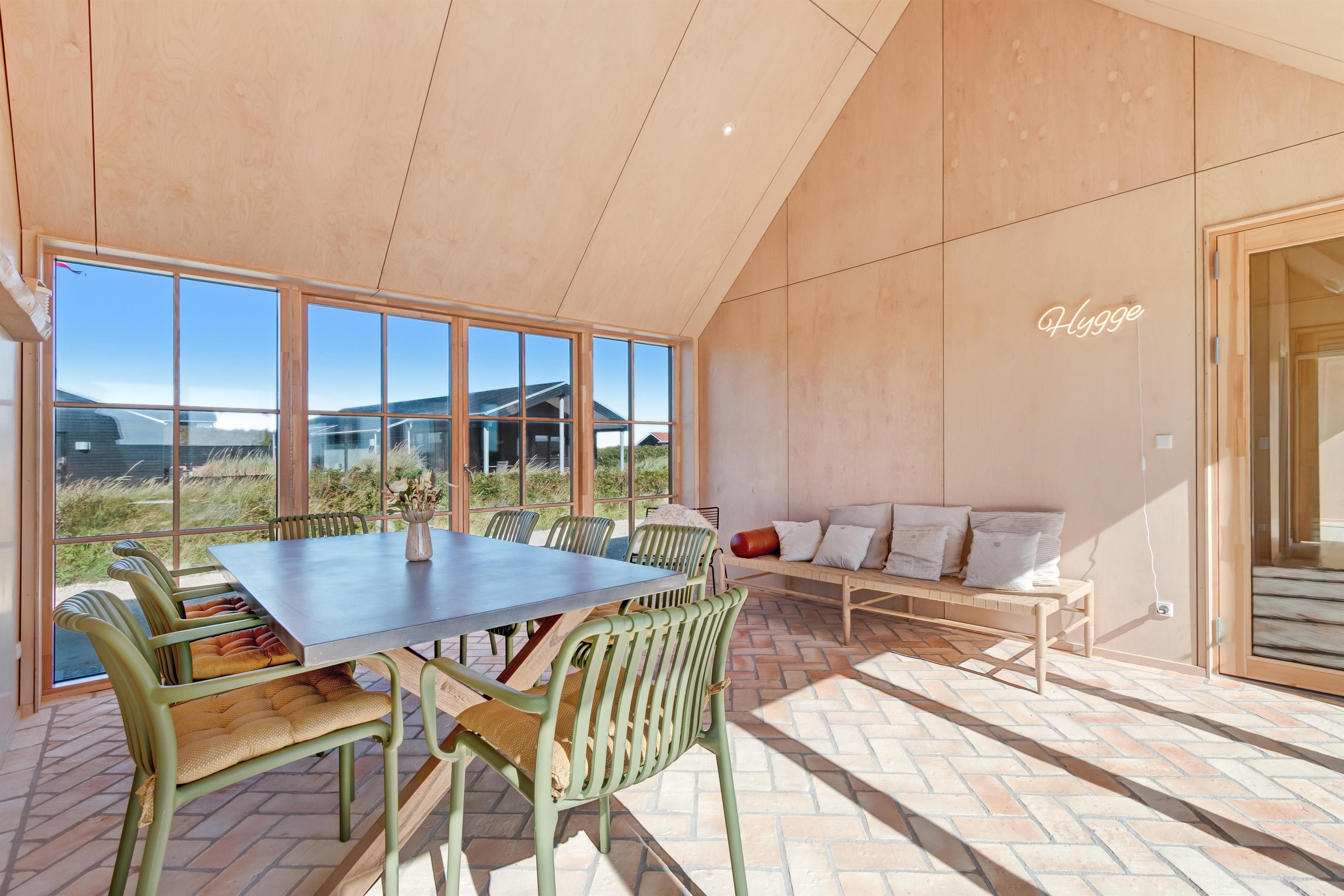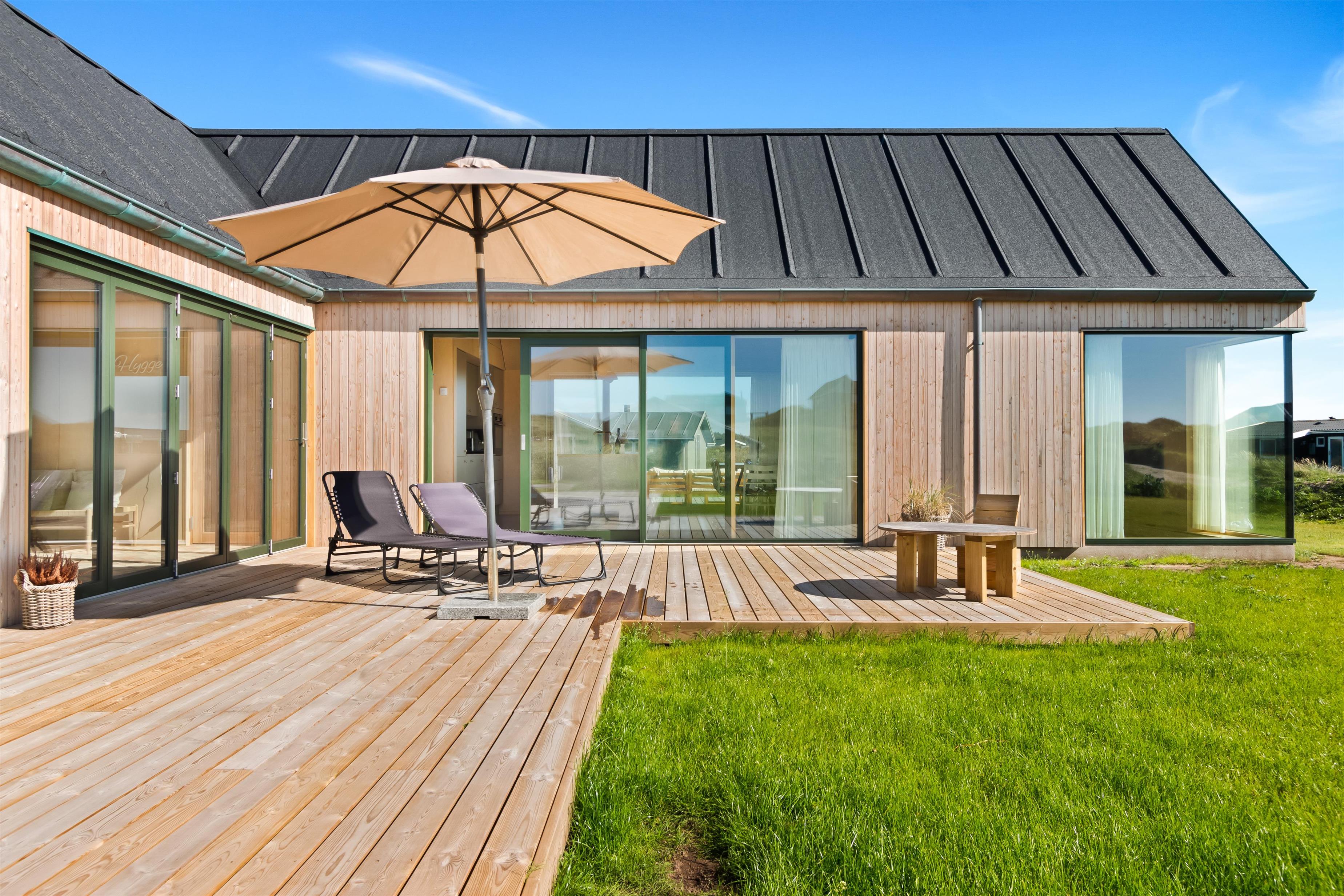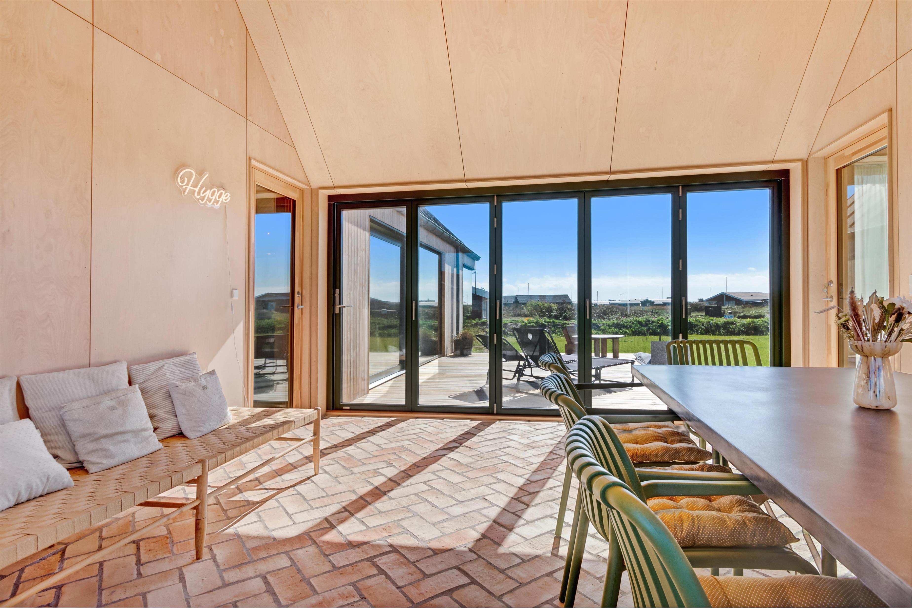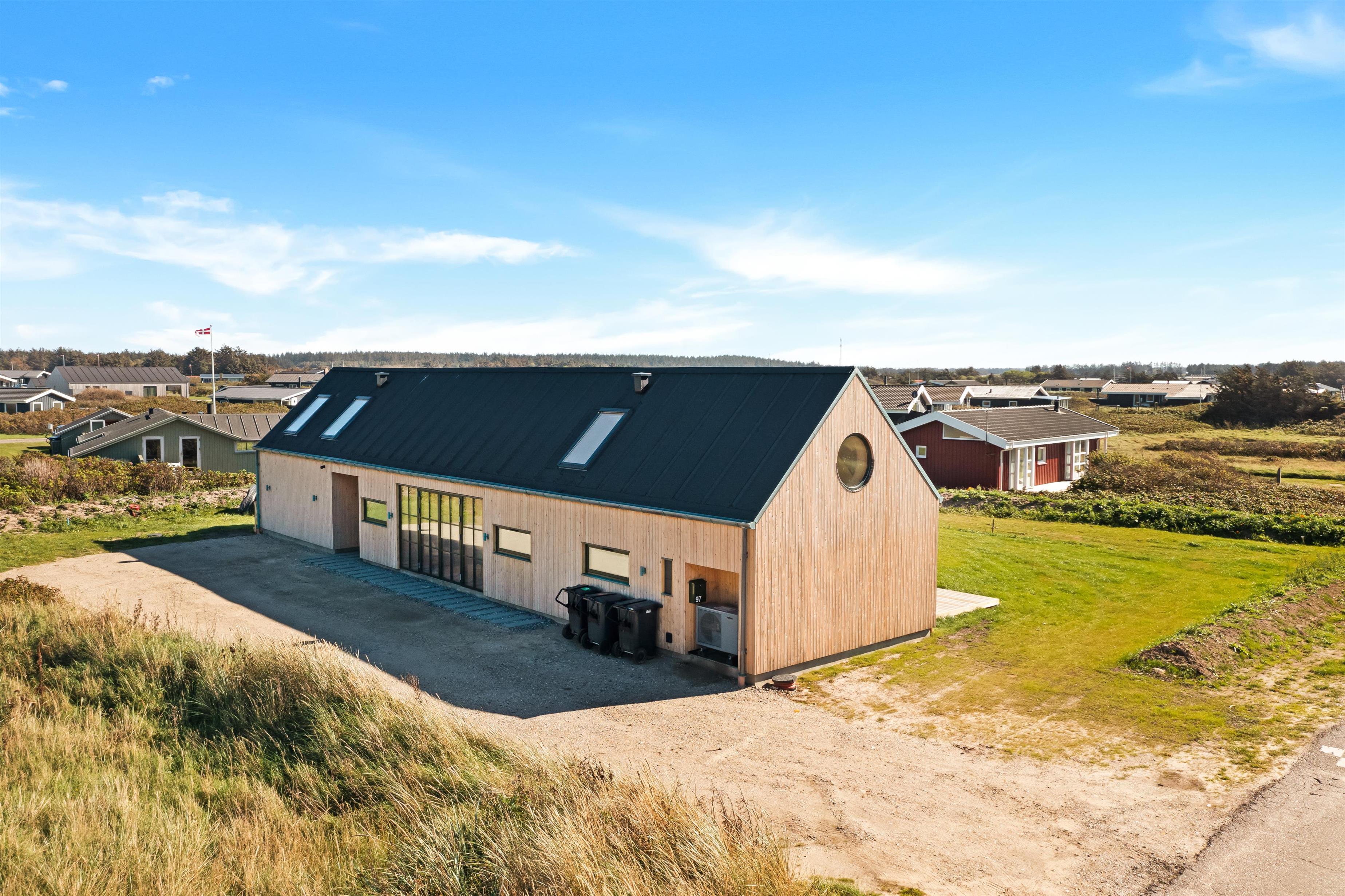 The holiday home is situated on a spacious 1200-square-meter natural plot, only 250 meters from the beach. The area is also close to Løkken center, shopping, transportation, shopping, restaurants, and plenty of indoor and outdoor activities. There is a delightful outdoor spa, an outdoor shower, spacious terraces, a barbecue, and lovely garden furniture. There are footpaths leading down to the beach, which is only 250 meters away.