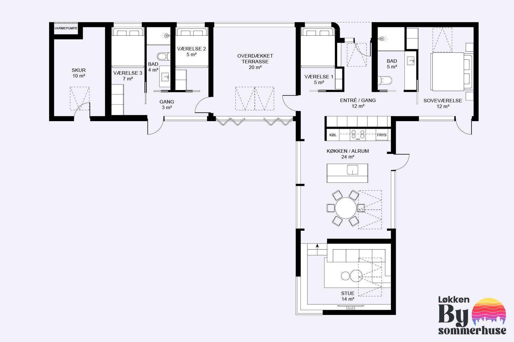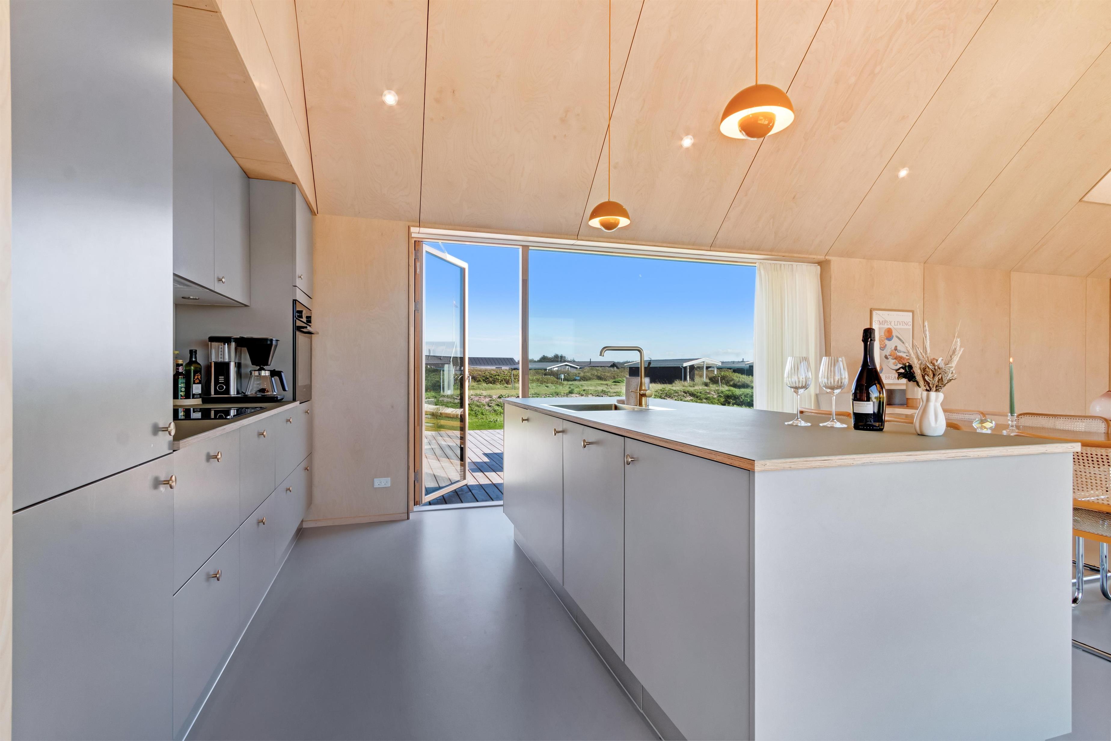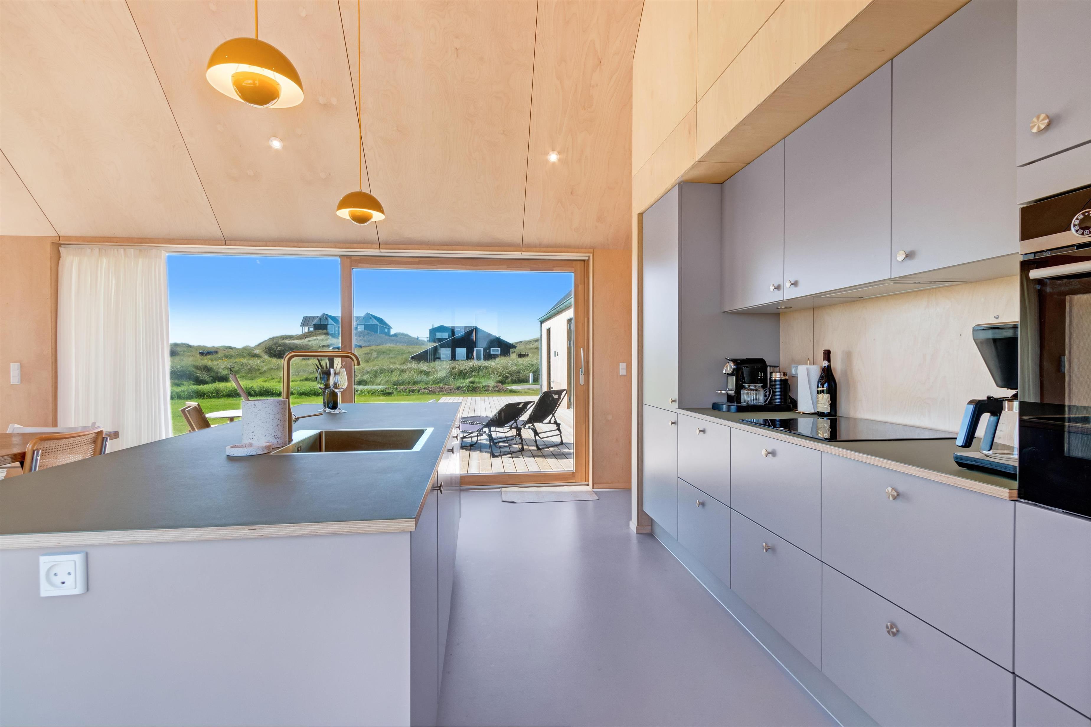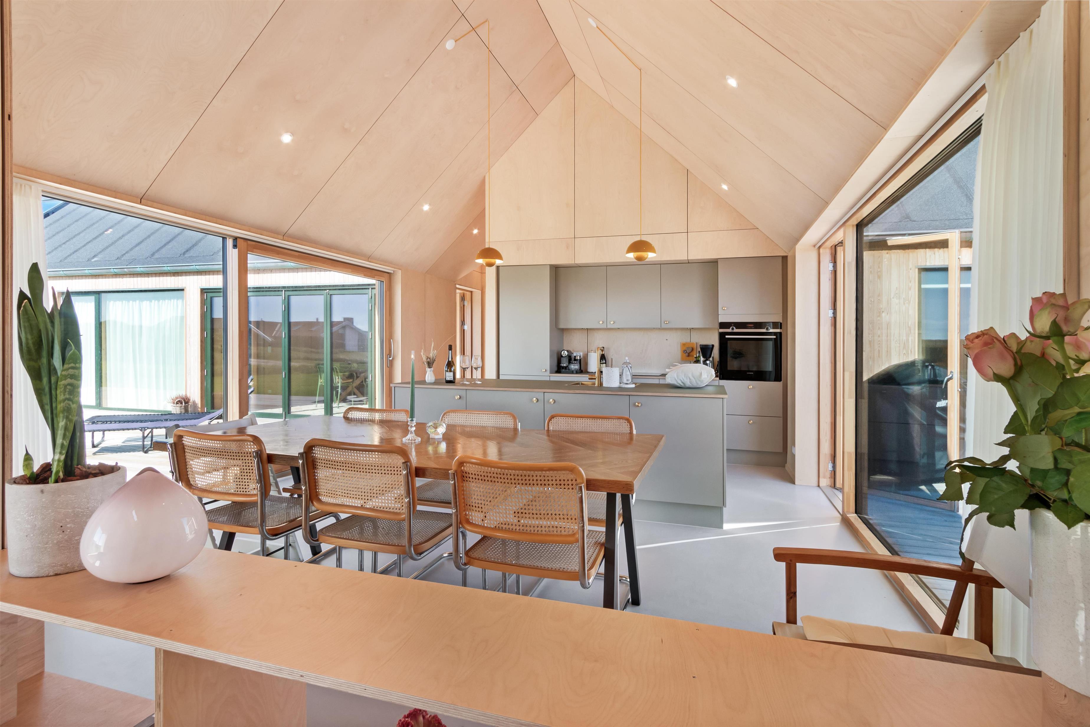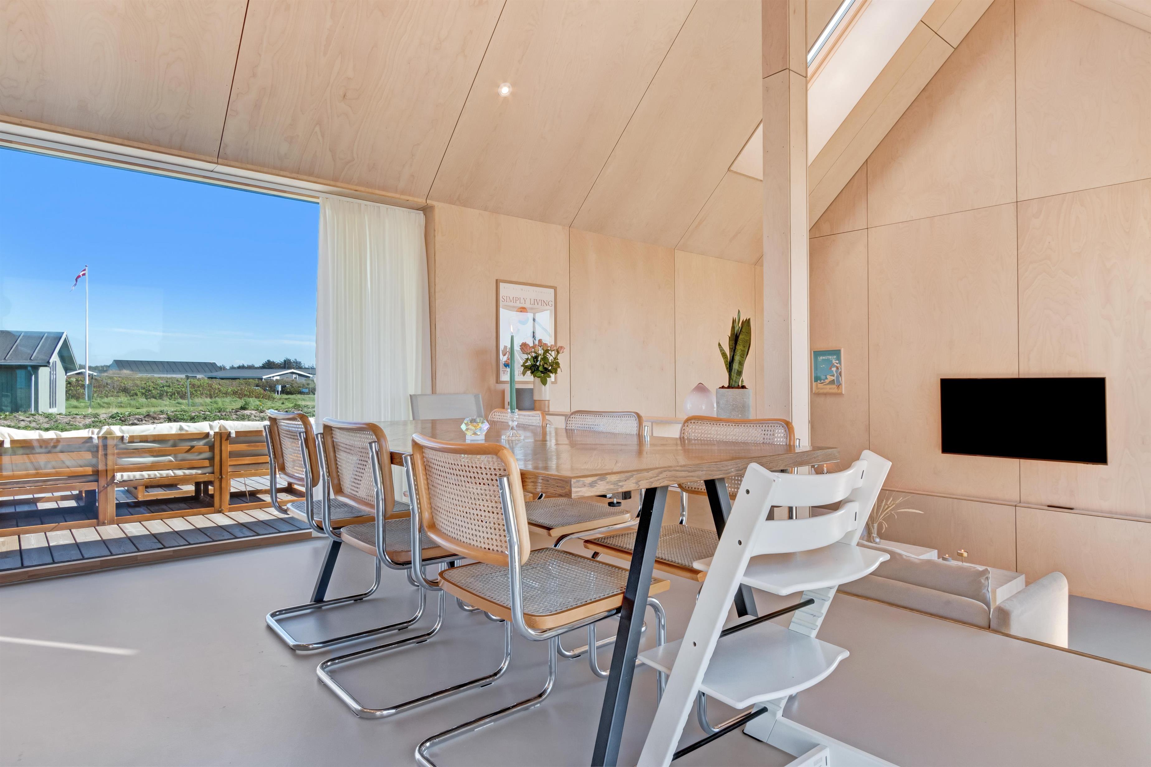 The holiday home is situated on a spacious 1200-square-meter natural plot, only 250 meters from the beach. The area is also close to Løkken center, shopping, transportation, shopping, restaurants, and plenty of indoor and outdoor activities. There is a delightful outdoor spa, an outdoor shower, spacious terraces, a barbecue, and lovely garden furniture. There are footpaths leading down to the beach, which is only 250 meters away.