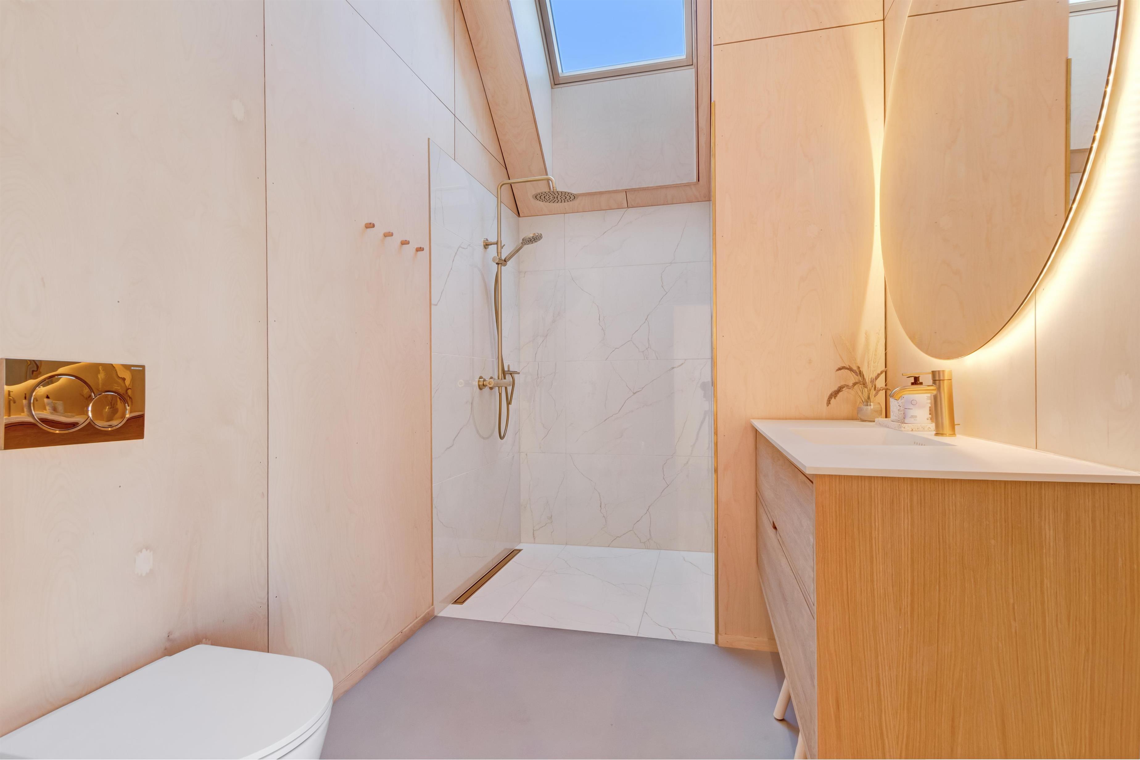 The house at Magnus Christensens Vej number 97 is both luxurious, minimalist, and cozy. It exudes quality and provides plenty of space for relaxation and comfort. It can accommodate 8 people in 4 bedrooms. There are two incredibly luxurious bathrooms, two lovely terraces, an outdoor spa, a loft, and all the modern amenities your heart desires. The construction year is 2023, so everything appears brand new. The bedrooms are located at either end of the house's 133 square meters and are separated from the kitchen/dining/living area, allowing some to retire while others stay up.