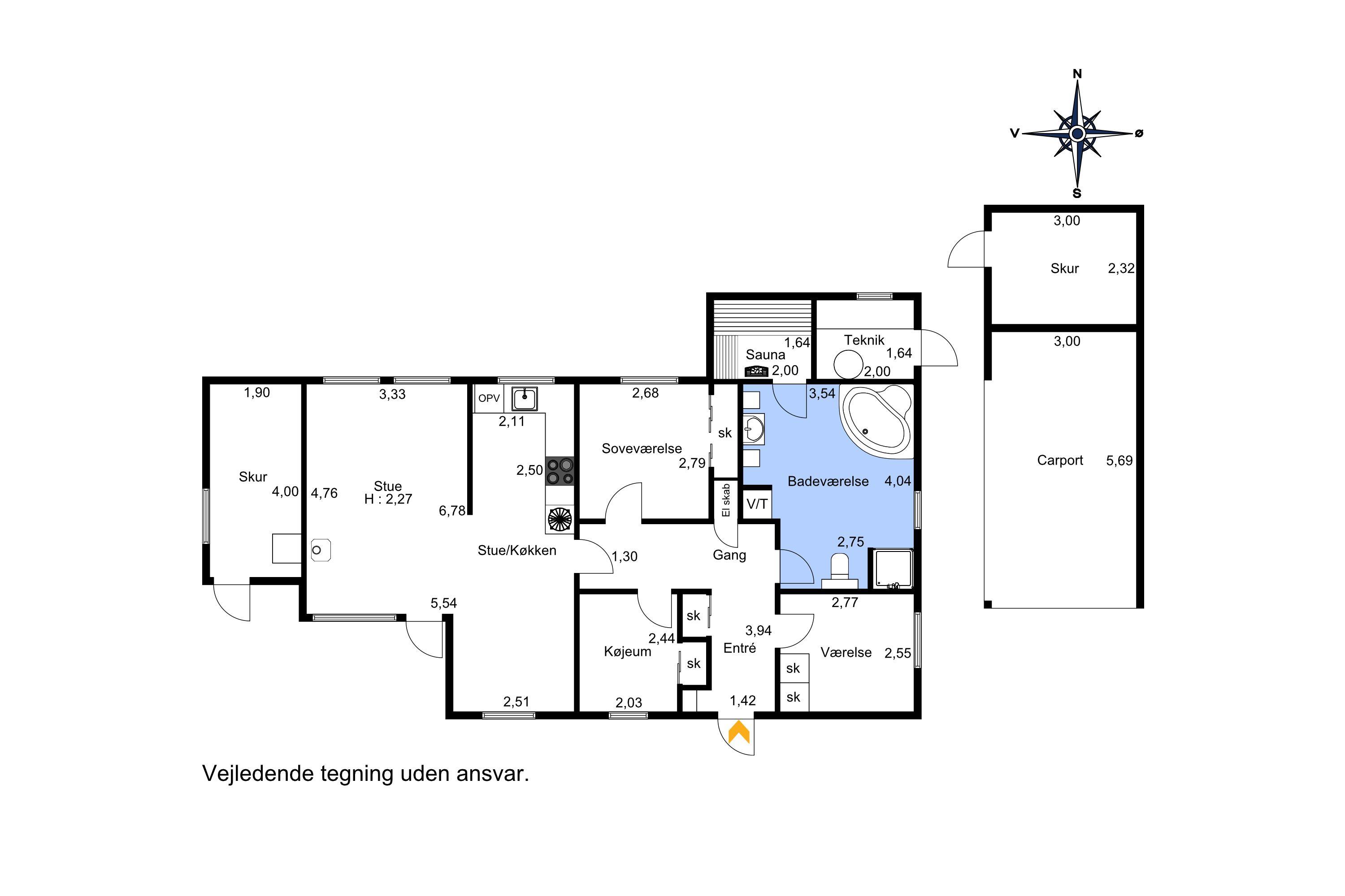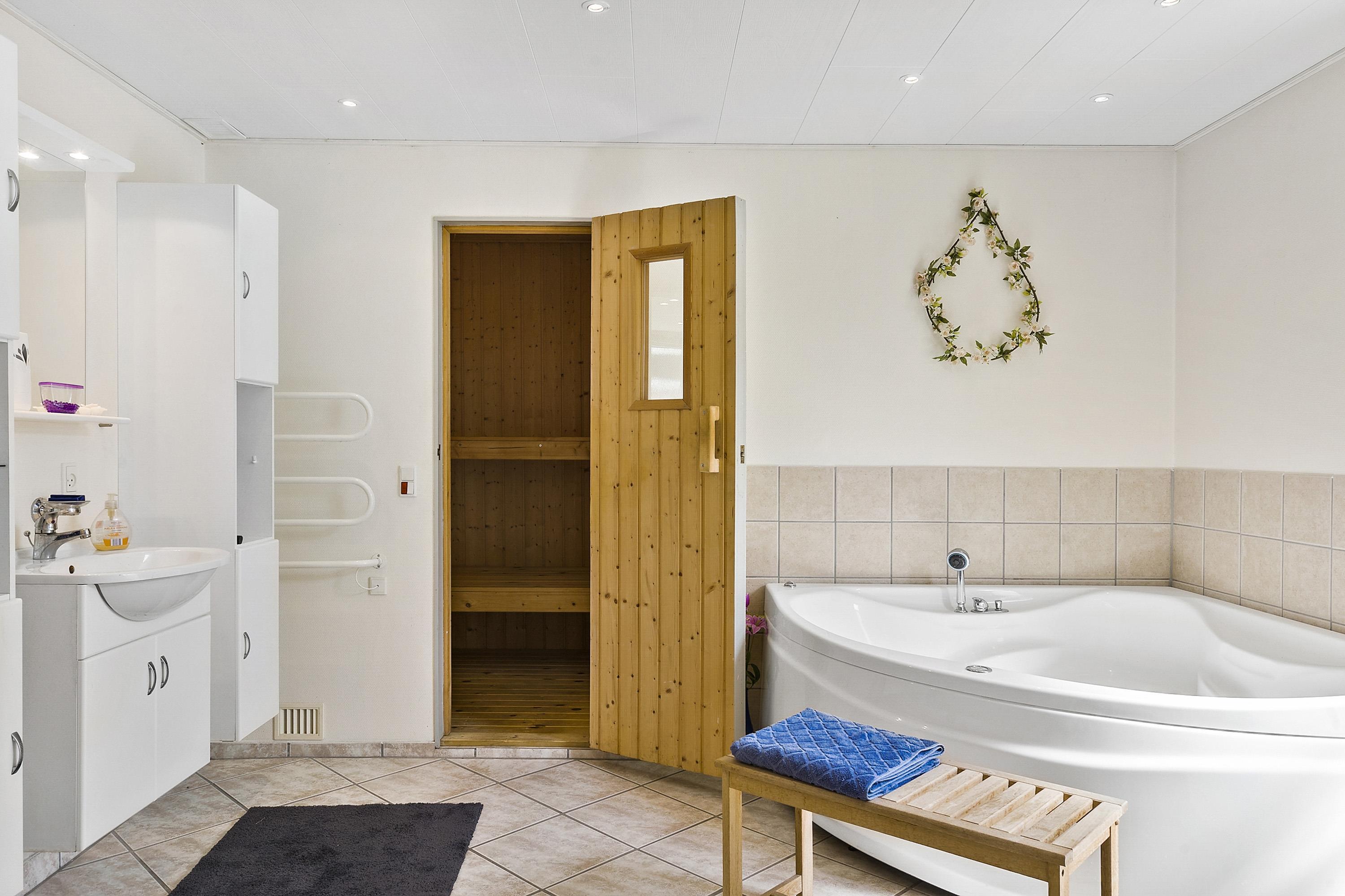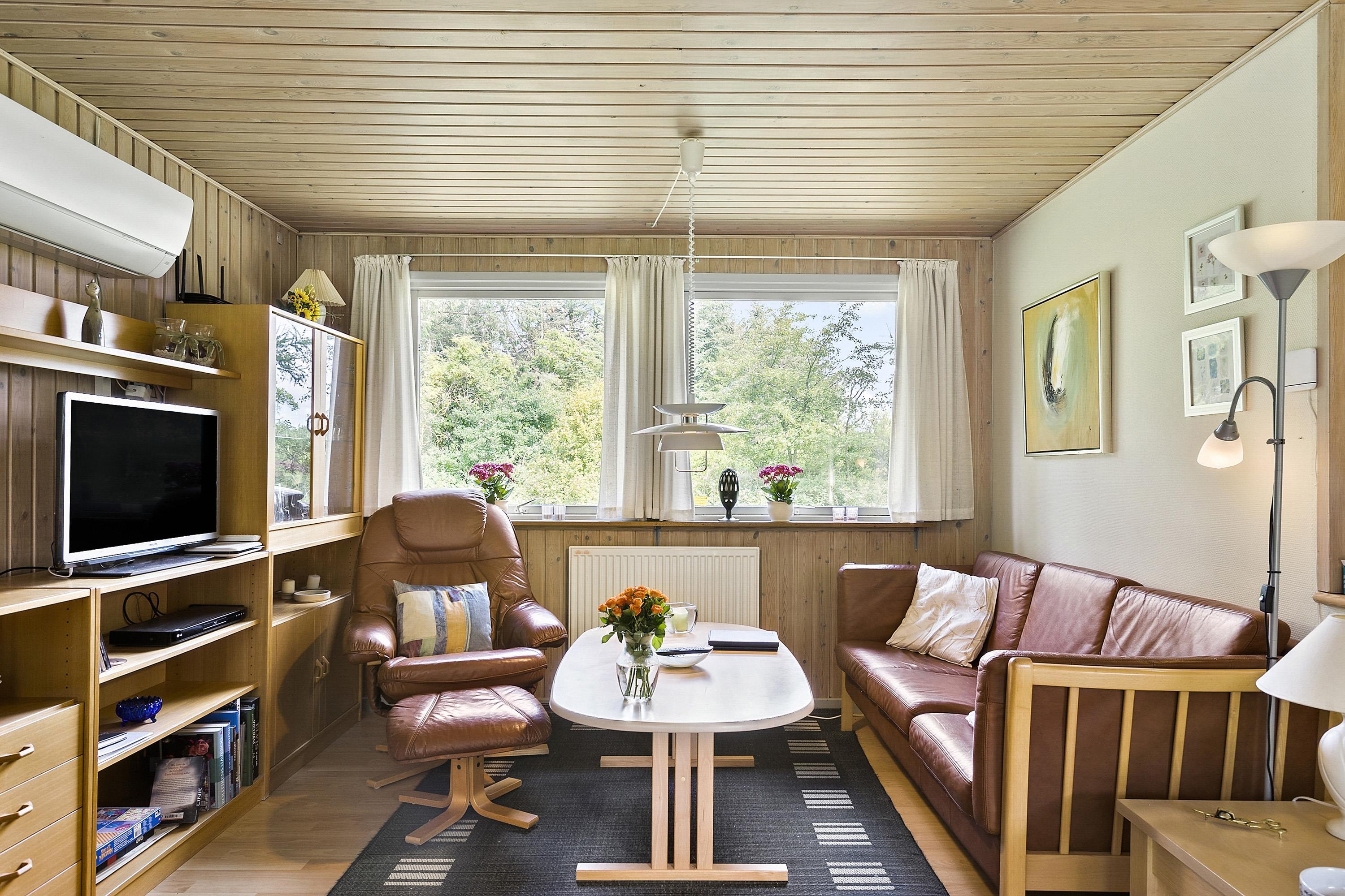 This well-maintained and classic holiday home offers 75 square meters with 3 bedrooms, a large bathroom with a shower, spa, and sauna, an open kitchen/dining area, and a very cozy fireplace room. There are two sheds and a carport for your car. As mentioned, the house is a classic summer cottage and is in good condition. All three bedrooms have ample closet space, with one of them being smaller. From the living room, you have access to the lovely terrace, where you can enjoy hours in the sun when the weather is at its best, or you can retreat to the delightful fireplace room, which has an open connection to the kitchen/dining area.