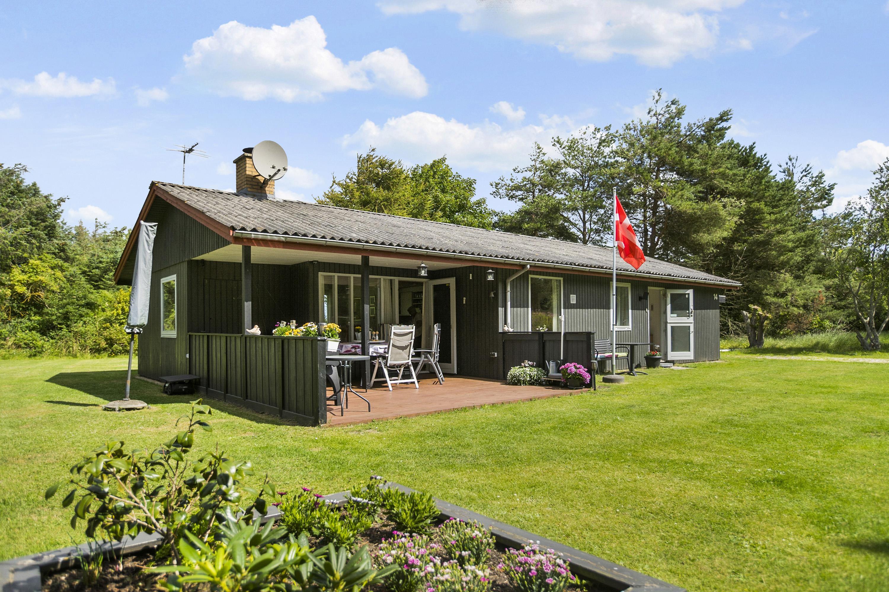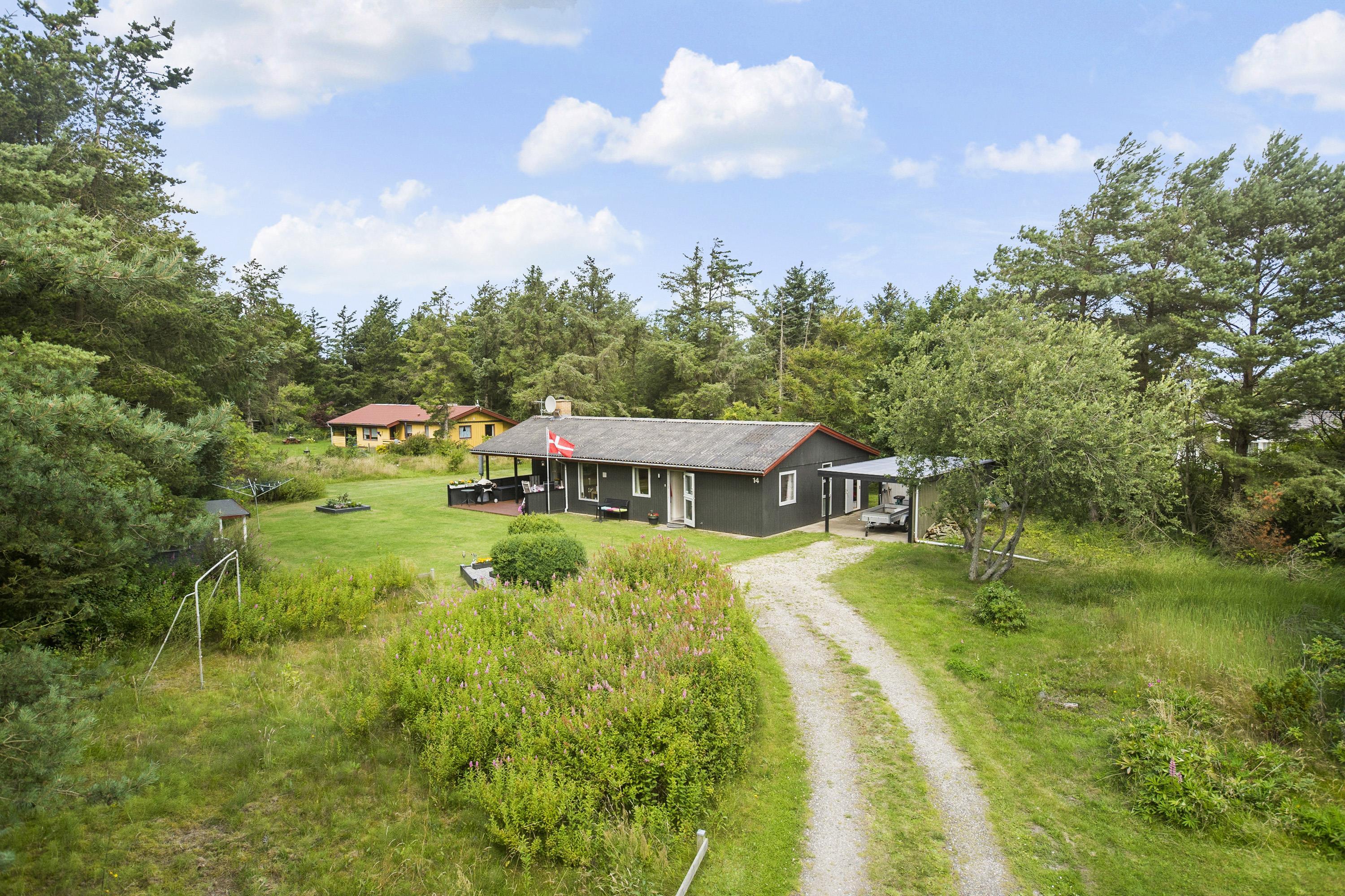 The nature in Nørre Lyngby is known for its beauty! And Agertoften 14 is located in a very scenic area on a large plot of 2500 square meters, so there's plenty of space for relaxation in the garden! The terrace is partially covered, allowing you to find a spot in both sun and shade, as needed. There are windbreaks on the terrace, so the strong winds won't disturb the outdoor environment. The beach is only 600 meters away, and the walk there is truly beautiful and characteristic of the holiday home areas along the northwest coast.