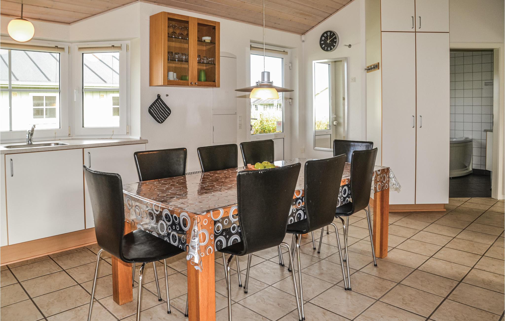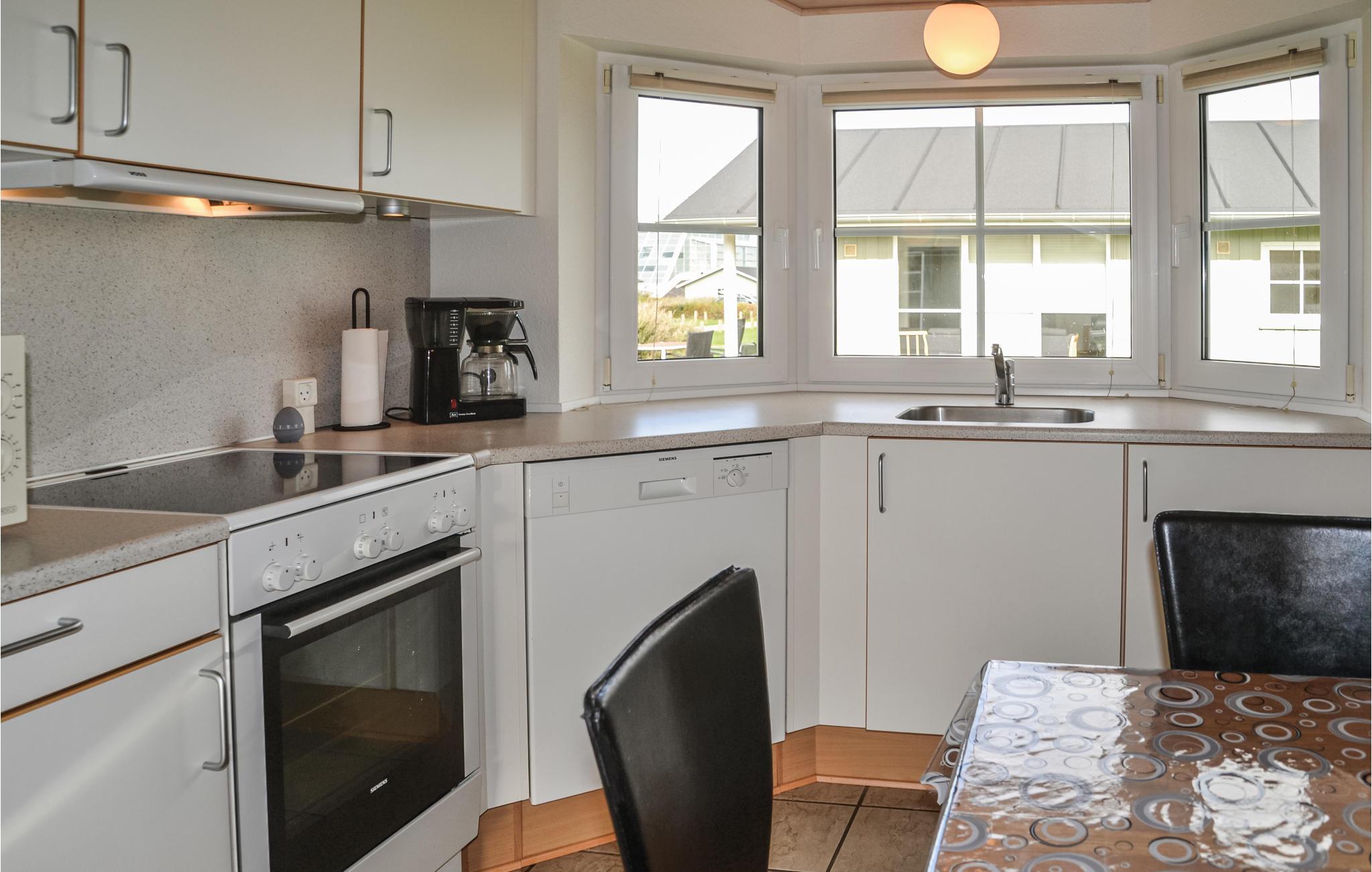Das Haus verfügt über eine schöne und geräumige Küche und ein Wohnzimmer mit Holzofen und Zugang zu einer teilweise überdachten Terrasse. Im schönen Badezimmer befindet sich ein Whirlpool, in dem Sie nach einem frischen Spaziergang am Meer entspannen können. In der Umgebung gibt es mehrere gute Aktivitätsmöglichkeiten, darunter Mountainbike-Strecken, Wanderwege und die faszinierende Nordsee ist weniger als 15 Autominuten entfernt.