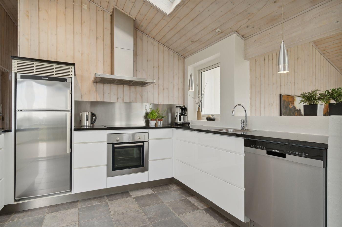 The kitchen is equipped with 1 refrigerator. There are 4 ceramic cooking plates, hot-air oven and dishwasher.