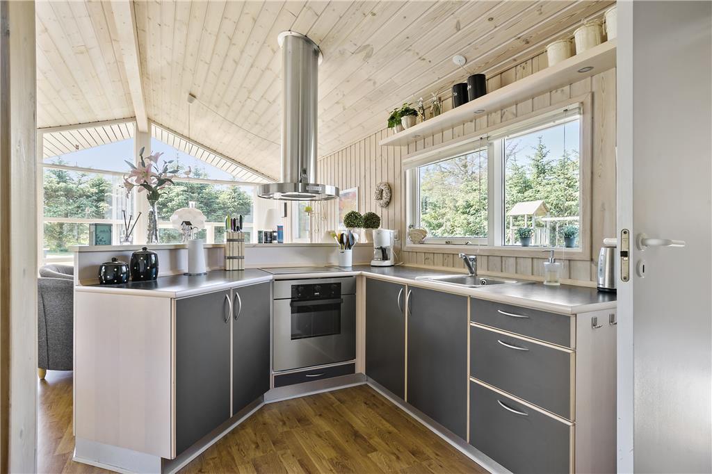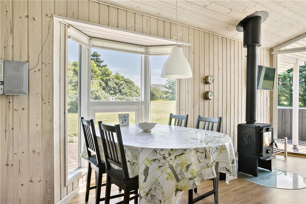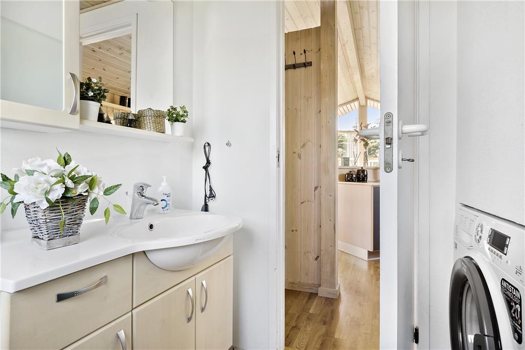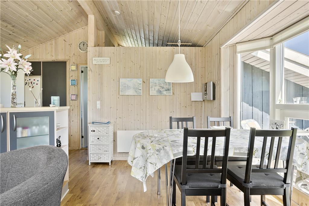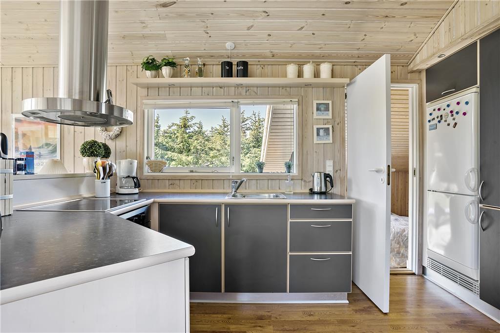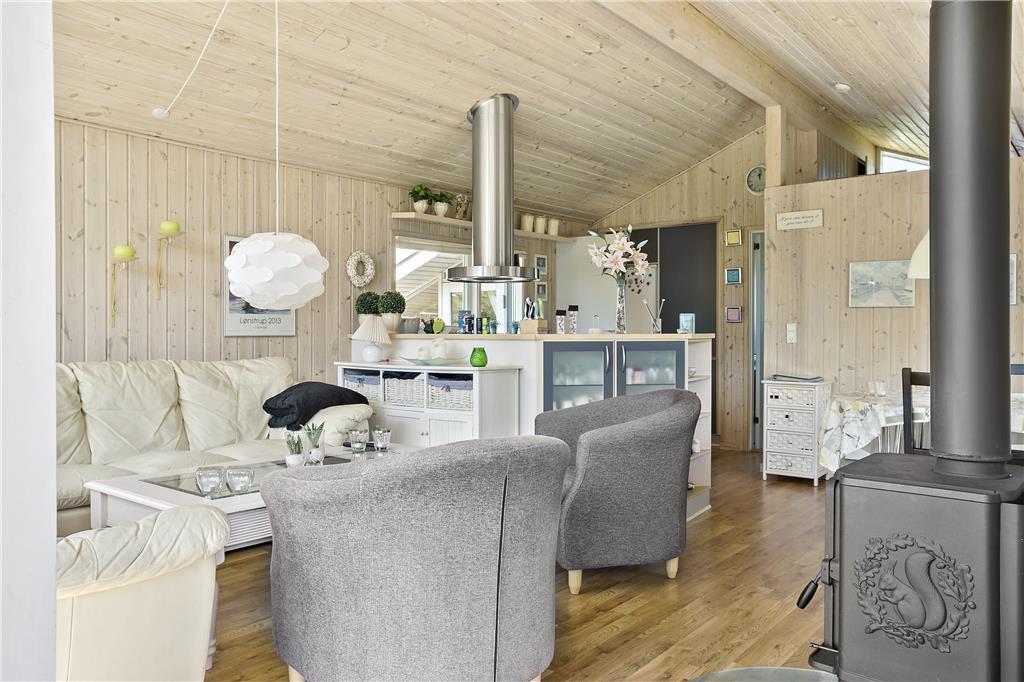 Dieses kleine, gemütlich und hell eingerichtete Ferienhaus verfügt über eine Wohnfläche von 51 m², die jedoch sehr gut und wohl durchdacht ausgenutzt wird. Die gut ausgestattete Küche liegt in offener Verbindung zum ansprechenden Wohnraum mit Kamin und Essbereich. Somit werden Sie, selbst wenn Sie gerade in der Küche Ihren alltäglichen Aufgaben nachgehen, stets am Familienleben im Wohnraum teilhaben. Ihnen stehen zwei Schlafräume mit jeweils einem Doppelbett zur Verfügung. Einer der Schlafräume besticht mit einem direkten Ausgang auf die herrliche Terrasse. Im hellen Badezimmer stehen eine Duschnische und eine Waschmaschine für Sie bereit. Somit dürfen Sie sich jeden Tag über saubere Badebekleidung und frische Handtücher für Ihren nächsten Ausflug zum Strand freuen.