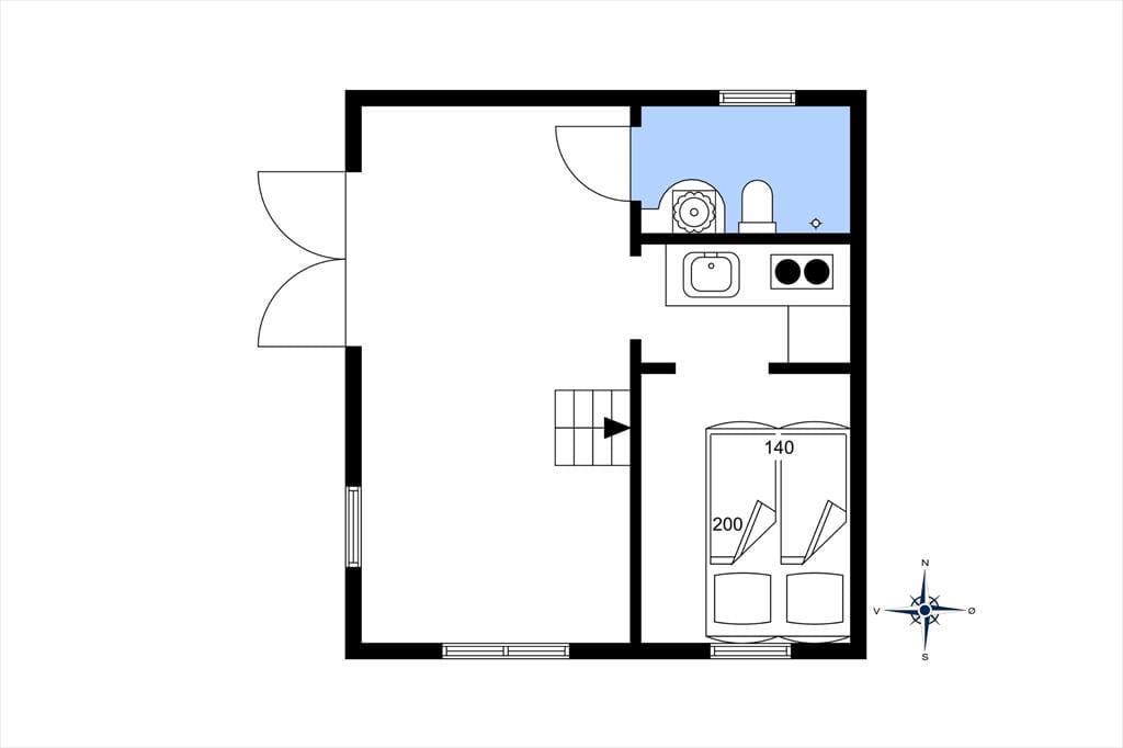 Als erstes wird das Wohnzimmer betreten, das mit einem Sofa und minimalistischen Möbeln im Hinblick auf das kleine Platzangebot eingerichtet ist. Generell kann alles als sehr gemütlich und charmant beschrieben werden. Die kleine, aber funktionale Küche ist direkt mit dem Wohnzimmer verbunden, sodass während des Kochens das Geschehen im Wohnzimmer und auf der Terrasse beobachtet werden kann. Auf dem Dachboden befinden sich zwei Matratzen und von hier überblicken Sie das Wohnzimmer, Terrasse und die wundervolle Dünenlandschaft, die das Haus umgeben. Das Schlafzimmer im Erdgeschoss ist ausgestattet mit einem Schlafsofa für zwei Personen. Auch das Sofa im Wohnzimmer kann als Schlafplatz genutzt werden, falls der Schlafboden Ihnen nicht gefallen sollte. Es ist ein kleines Badezimmer mit Dusche im Ferienhaus vorhanden.