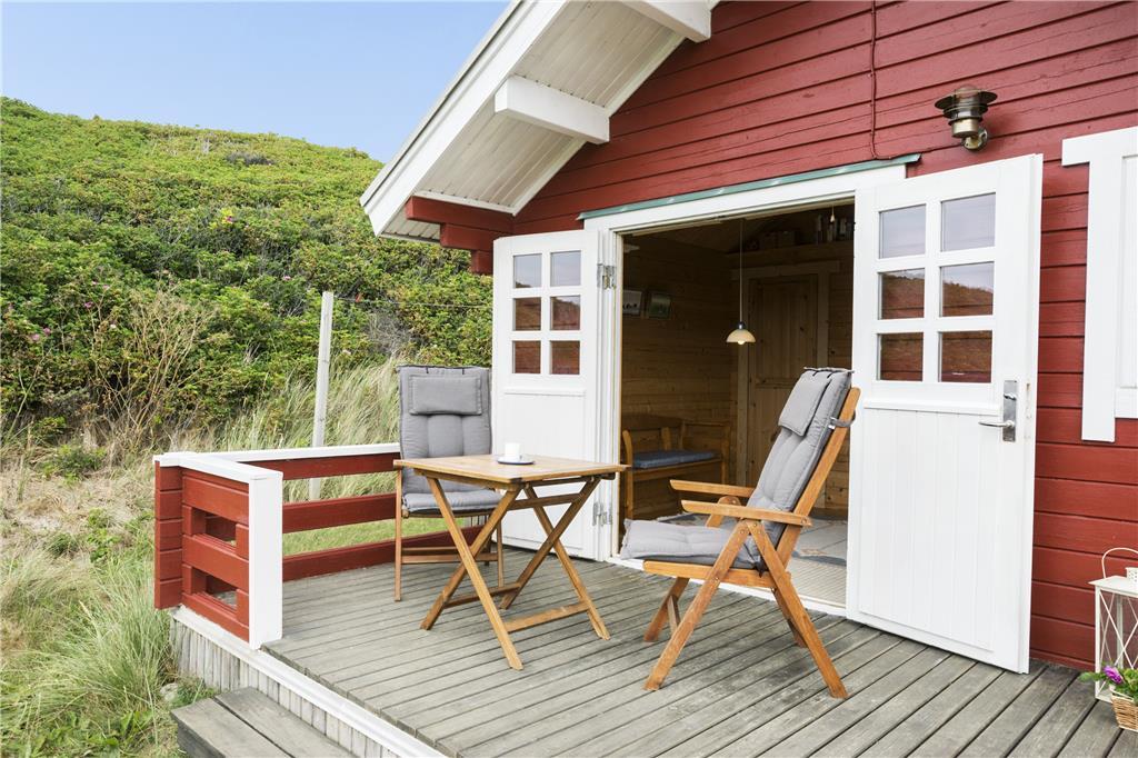 Vor dem Haus wurde eine schöne Terrasse angelegt, auf der Sie das Haus, die Nordsee und die reizvolle Dünenlandschaft genießen können. Außerdem kann vor dem Haus Fußball gespielt werden. Die Lage direkt hinter den Dünen bietet guten Windschutz vor dem manchmal etwas wilden Westwind.