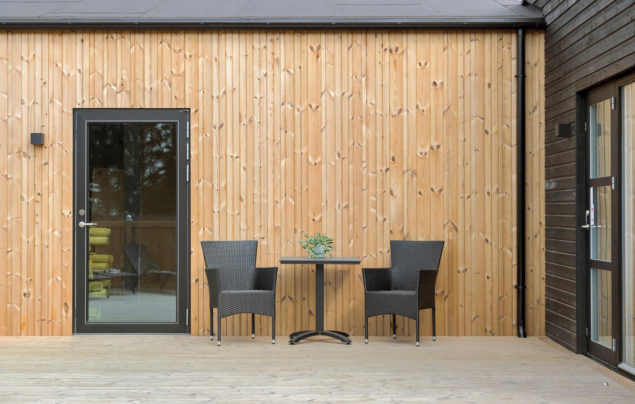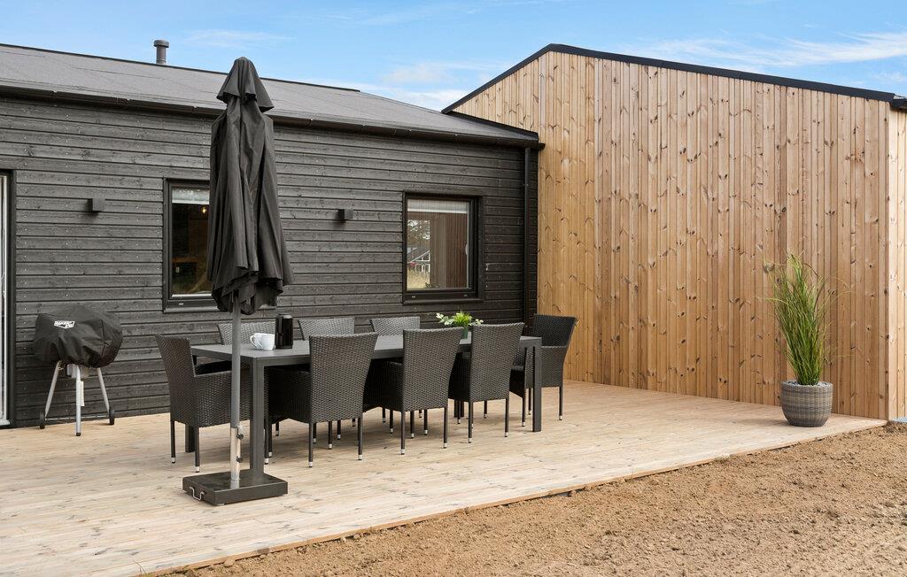 Außerhalb von Lönstrup empfängt Sie dieses moderne Ferienhaus mit Finnischem Holzbad und Spielgeräten im Garten.