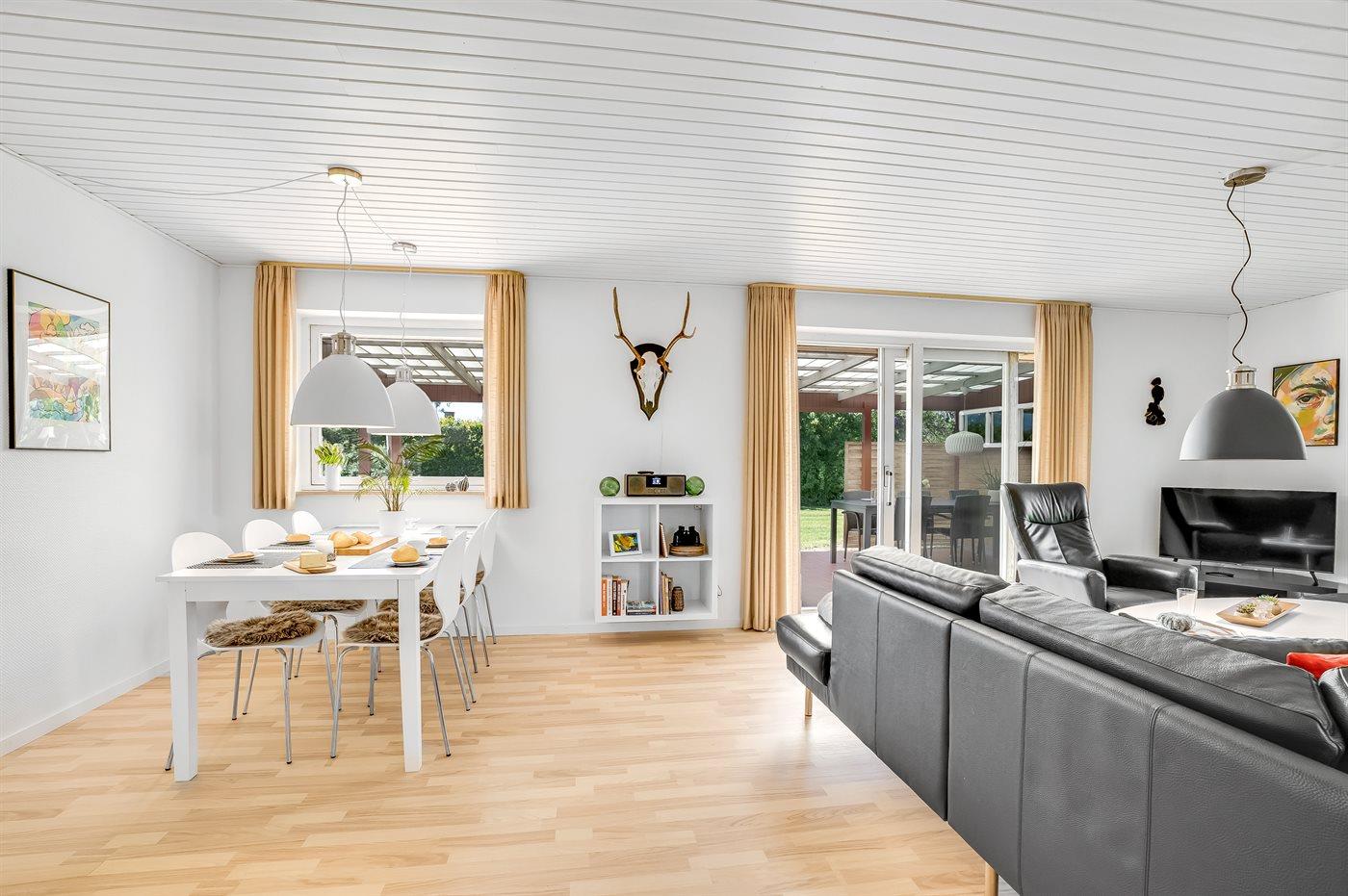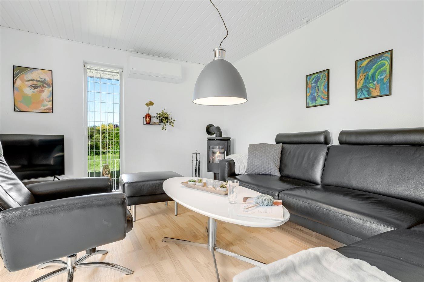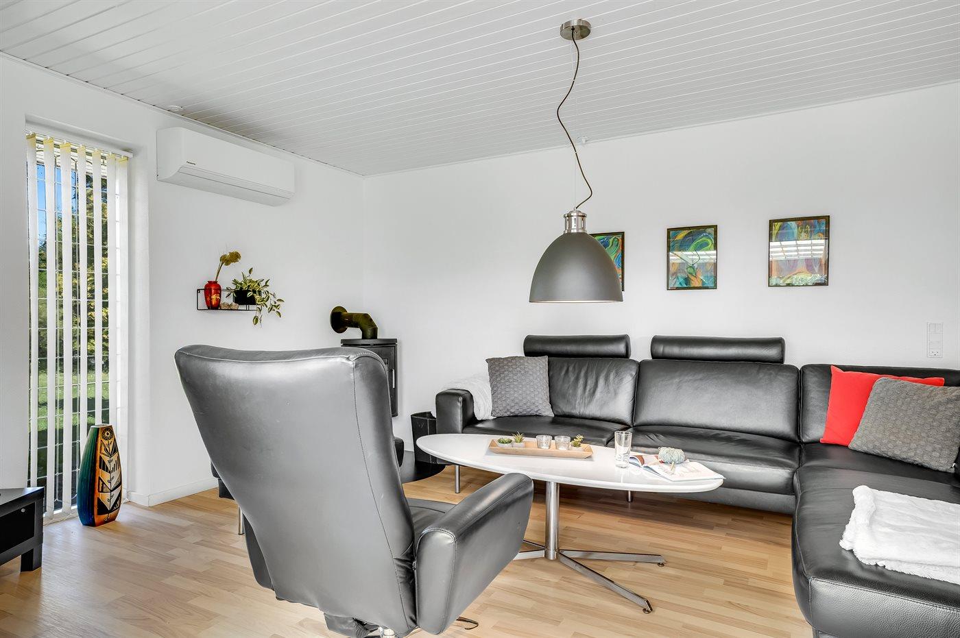 Holiday home suitable for 6 persons . The holiday home is 116 m² and is build in 1980. In 2023 the holiday home was partial renovated. No pets allowed. The holiday home is equipped with 1 energy-friendly air-to-air heat pump. The holiday home has washing machine. Freezer capacity of 40 litres. Further more there is 1 wood-burning stove. For the youngest ones there is 1 high chair.