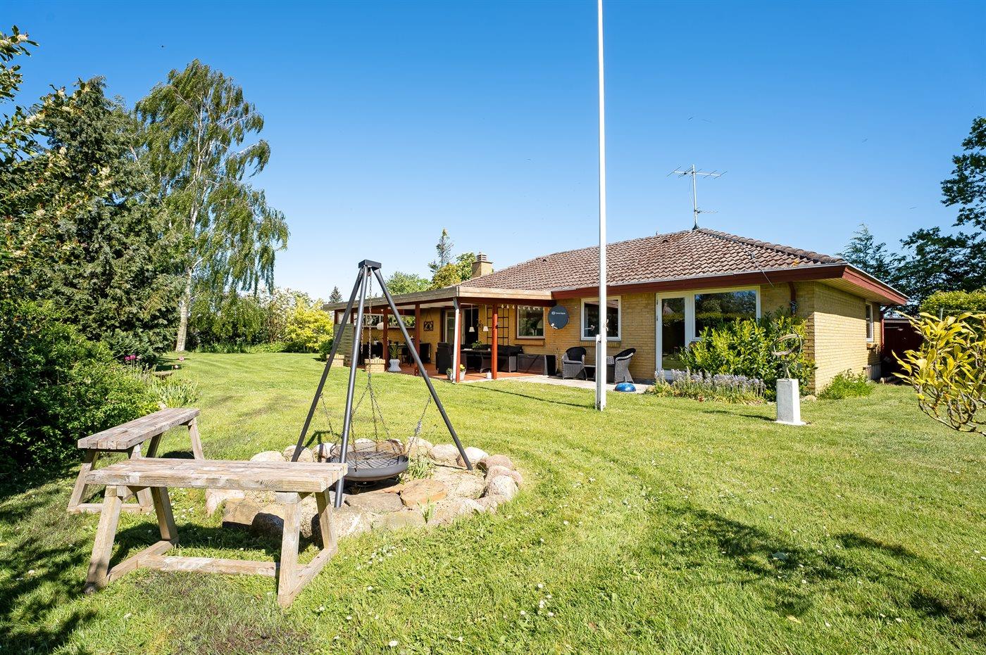 The holiday home is situated on a 1200 m² garden site. Situated 3000 m from the sea. Situated 150 m from inlet. Nearest shop is 9000 m away. A terrace belong to the holiday home. Furthermore the house has a covered terrace. Situated 700 m from a playground.Fire place. Barbecue at your disposal. Garage at your disposal. Parking place by the holiday home.
