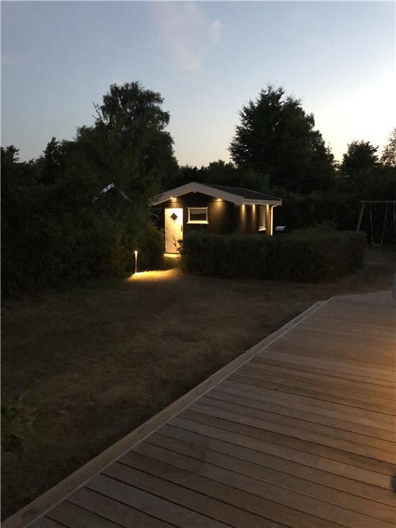 Der Garten ist ein ruhiger Rückzugsort, in dem Kinder spielen und ihrer Fantasie freien Lauf lassen können. Die großzügige Rasenfläche, umgeben von Obstbäumen und Büschen, bietet einen sicheren und charmanten Rahmen für Spiel und Entspannung im Freien – begleitet vom Vogelgezwitscher und dem Duft des Sommers in Liseleje.