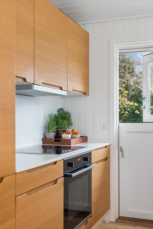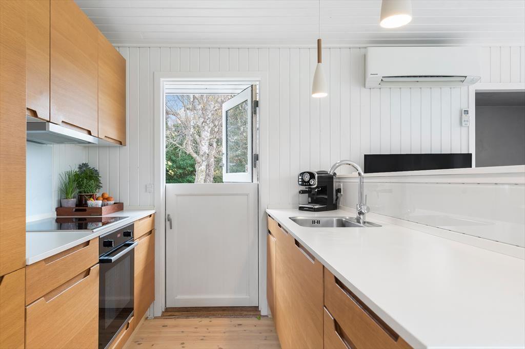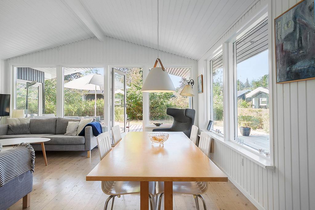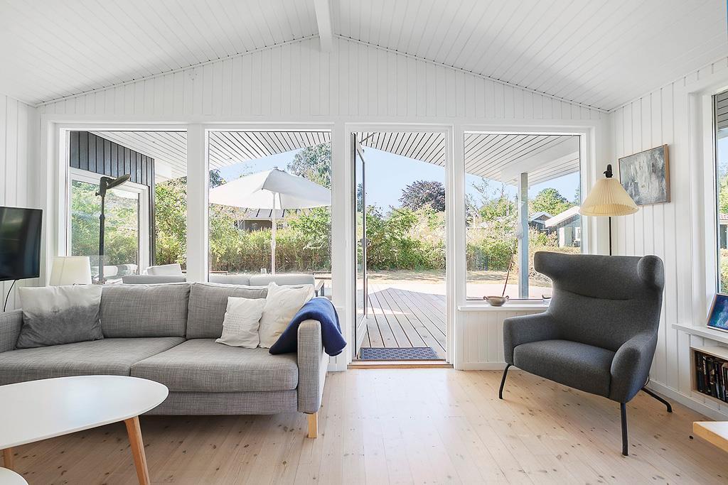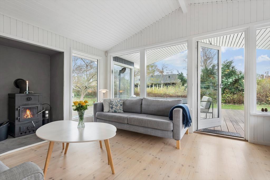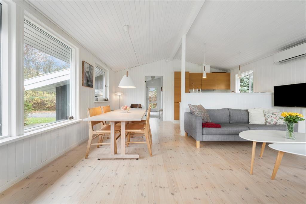 Dieses renovierte Ferienhaus empfängt dich mit einer hellen und einladenden Atmosphäre, in der der nordische Stil den perfekten Rahmen für einen erholsamen Urlaub mit der ganzen Familie schafft. Die Einrichtung besticht durch helle Farben und modernen Komfort, während der offene Grundriss zwischen Wohnzimmer und Küche einen natürlichen Treffpunkt bildet. Genieße eine Tasse Kaffee im Essbereich neben der neuen Küche oder entspanne dich auf dem Sofa vor dem Kaminofen – und lass die Ruhe einkehren. Große Fenster und der direkte Zugang zur Terrasse holen die Natur ins Haus und lassen den Tag mühelos von drinnen nach draußen fließen.