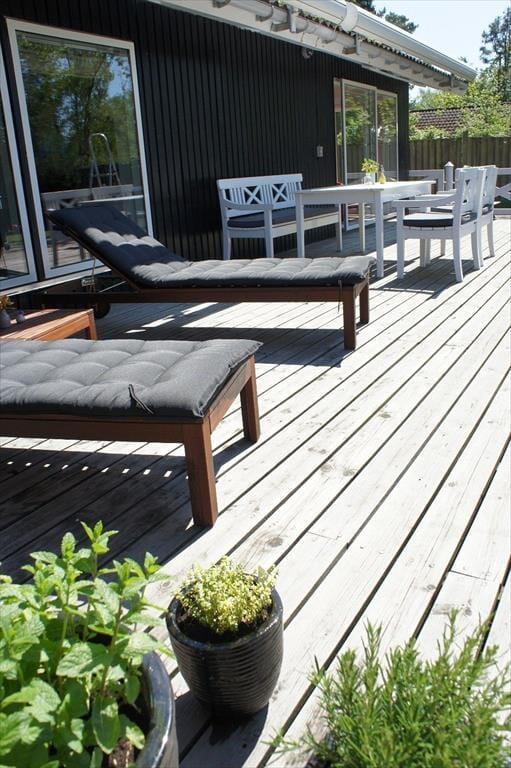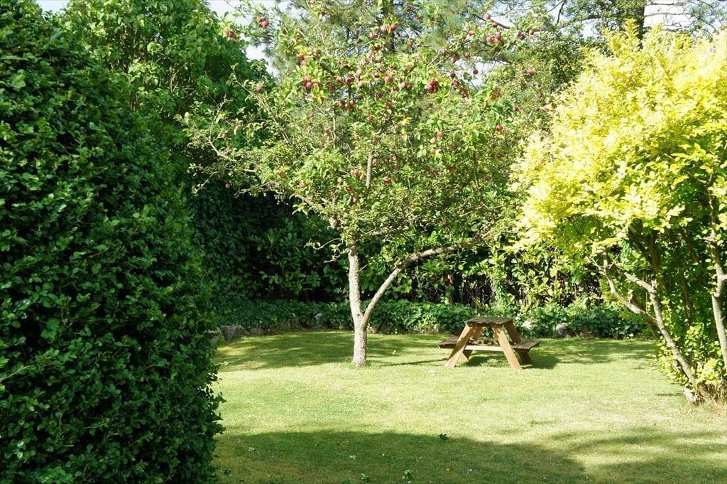 Hier können Sie sich mit der Familie versammeln und die Ruhe in einem gepflegten und abgeschiedenen Garten genießen. Der Garten ist ein kleines Paradies für Entspannung. Der große, geschlossene Garten bietet sowohl Frieden als auch Privatsphäre, und die sonnige Terrasse ist ideal für entspannte Momente mit einem guten Buch oder einer Tasse Kaffee. Mit der Außenküche und dem Gasgrill können Sie köstliche Mahlzeiten unter freiem Himmel zubereiten. Die Außendusche ist perfekt nach einem Tag am Strand. Stellen Sie sich vor, Sie sitzen auf der Terrasse mit der Sonne im Gesicht, einem kühlen Getränk in der Hand, während Sie dem Vogelgezwitscher lauschen und die langen So merabende genießen.