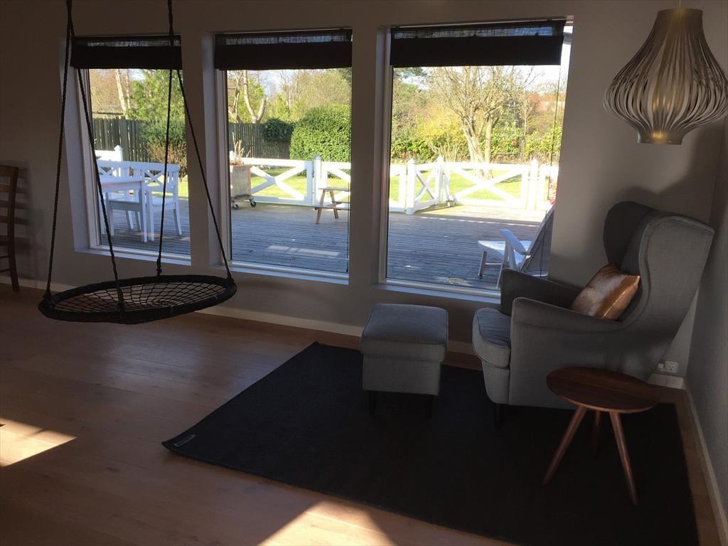 Die Stadt Liseleje liegt in kurzer Gehentfernung und bietet charmante Cafés, Restaurants und Eisdielen, darunter das bekannte Hansen Eis-Haus und die Eis-Bar. Es gibt auch einen Supermarkt, kleine gemütliche Geschäfte mit Kleidung und Interieur sowie die anerkannte Liselejebäckerei, wo Sie frisches Brot und leckere Kuchen zum Frühstück kaufen können. Für die Kinder (und die Junggebliebenen) liegt der Naturspielplatz "Havtyren" nur 500-600 Meter entfernt, eine wunderbare Oase, die 2010 geschaffen wurde und die Fantasie freien Lauf lässt.