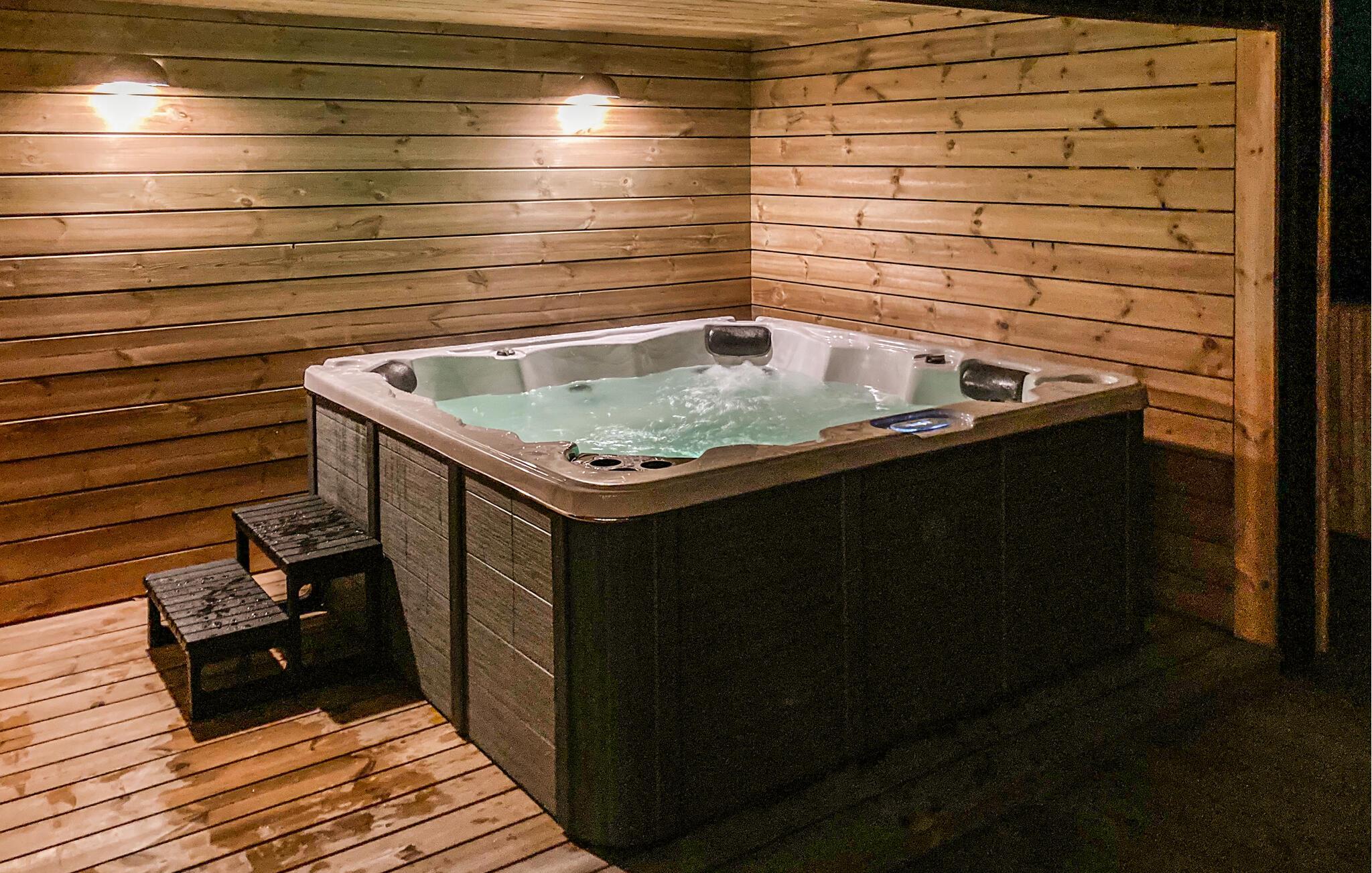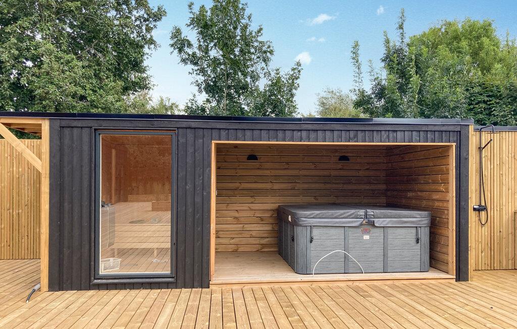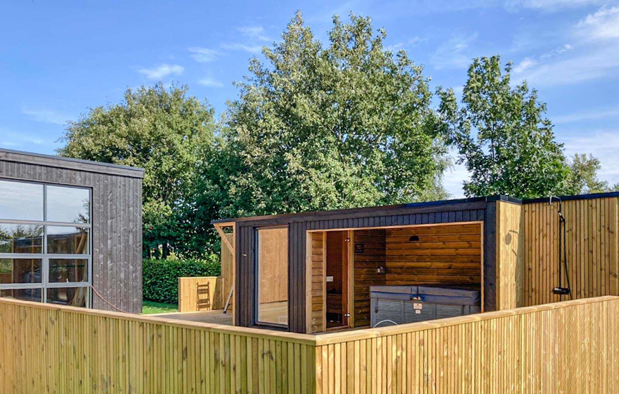 Treten Sie hinaus auf die Holzterrasse und gestalten Sie Ihren Urlaubstag im Freien. Lassen Sie Kinder auf dem Trampolin springen, auf der Schaukel schwingen oder im Sandkasten spielen. Entspannen Sie im geschützten Außenbereich mit Whirlpool und Sauna genießen Sie die Ruhe nach einem aktiven Tag.