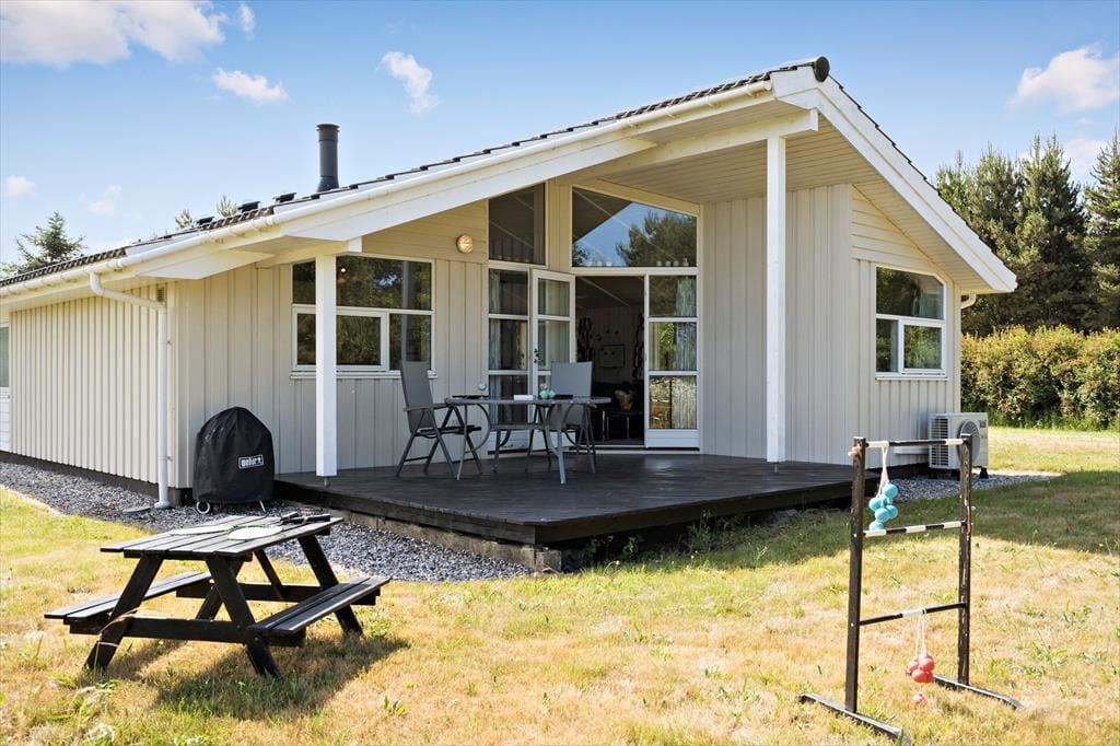 Das Ferienhaus überzeugt mit seiner attraktiven Lage am Ende der Sackgasse Irisvej. Ihr direkter Nachbar ist die offene Landschaft. Ihr Naturgrundstück umfasst eine Fläche von 2.003 m² und bietet Platz zum Umhertollen und Spielen. Ruhige Stunden genießen Sie auf den Terrassen. Während sich die offene Terrasse an der Ostseite für ein Frühstück in der Morgensonne anbietet, wird es Sie im Laufe des Tages eher auf die teilweise überdachte Westterrasse ziehen, die sich in Verlängerung des Wohnraumes befindet.