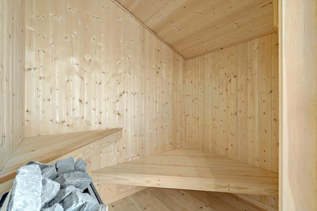 Das 95 m² große Urlaubsdomizil besticht mit einer ansprechenden Wohnatmosphäre, die unter anderem auf die hohen Decken und die hellen, holzvertäfelten Wände zurückzuführen ist. Große Fenster lassen viel Tageslicht durch den Wohnraum strömen und offenbaren einen schönen Ausblick auf das grüne Naturgrundstück. Der Pelletofen sorgt für ein Maximum an Gemütlichkeit und Wärme. Im Wohnraum verbringen Sie gemütliche Filmabende auf dem Sofa vor dem Flachbild-TV und erholsame Stunden mit einem spannenden Buch in den Relaxstühlen. Ihre Mahlzeiten bereiten Sie in der offenen Küche zu. Der Esstisch lädt zu geselligen Runden am Abend ein. Pure Erholung und Entspannung mit einem Hauch von Wellnessflair erwartet Sie im großen Badezimmer, das mit einem Whirlpool und einer Sauna verwöhnt. Die drei schlicht und einfach eingerichteten Schlafräume sind ebenso mit einem Holzfußboden versehen, wie der Wohnraum.