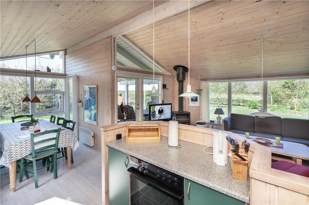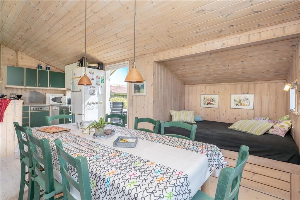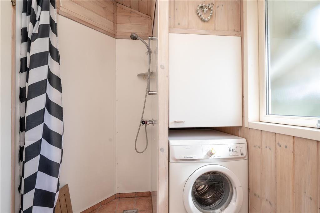 Das Urlaubsdomizil begrüßt Sie mit einer schönen Atmosphäre und einer gemütlichen Einrichtung. Unmittelbar nach dem ersten Betreten spüren Sie, wie sich bei Ihnen die entspannte Urlaubsstimmung einstellt. Zur Wohnfläche zählen zwei gute Schlafräume und ein ansprechendes Badezimmer mit einer Duschnische und einer Waschmaschine. Im Wohnraum werden Sie zahllose Stunden im Kreise Ihrer Lieben verbringen. Der schöne Aufenthaltsraum beinhaltet eine offene Küche, einen Esstisch, einen Kaminofen, eine komfortable Polstersitzgruppe und sogar eine gemütliche Schlafnische. Letztgenannte eignet sich hervorragend für eine ruhige Stunde mit einem spannenden Buch und für ein Nickerchen nach einer guten Mahlzeit. Die Schlafnische kann auch zum Übernachten genutzt werden. Weitere Schlafmöglichkeiten bietet das isolierte Nebengebäude, das mit einer Elektroheizung beheizbar ist. Im Nebengebäude steht zudem ein Wäschetrockner für Sie bereit.