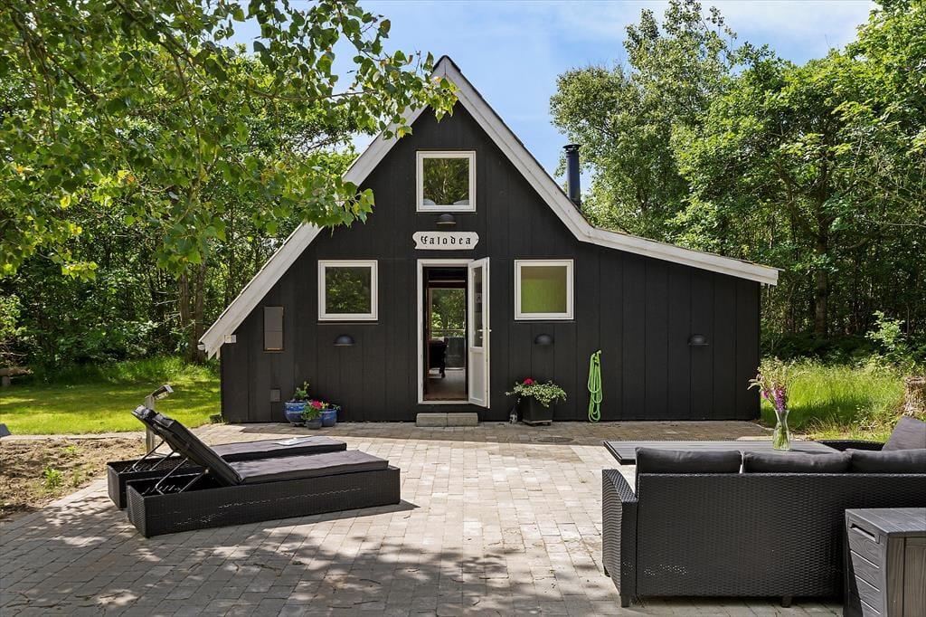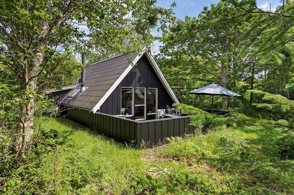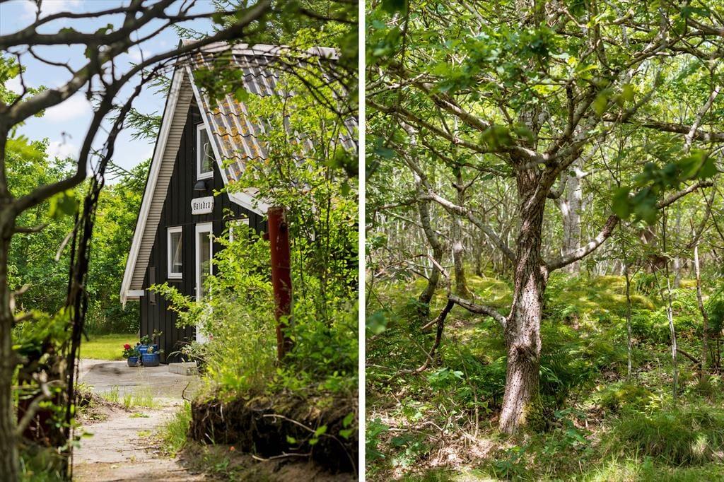 Wenn Sie von einem Urlaub in malerisch ruhiger Umgebung träumen, sollten Sie hier weiterlesen. Dieses gemütliche Sommerhaus liegt in der schönen Gegend von Lodberg Hede, auf halbem Weg zwischen Nordsee und Stadil-Fjord – genauer gesagt auf einem idyllischen Naturgrundstück. Hier bietet sich volle Entspannung mit Blick auf Begrünung und Bäumen mit Vogelgezwitscher.