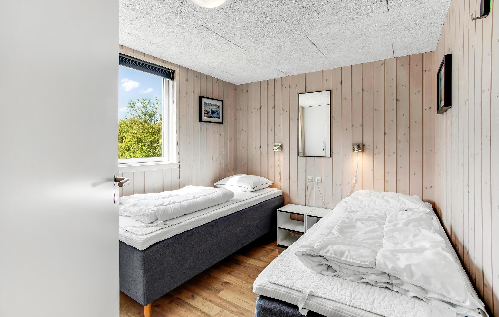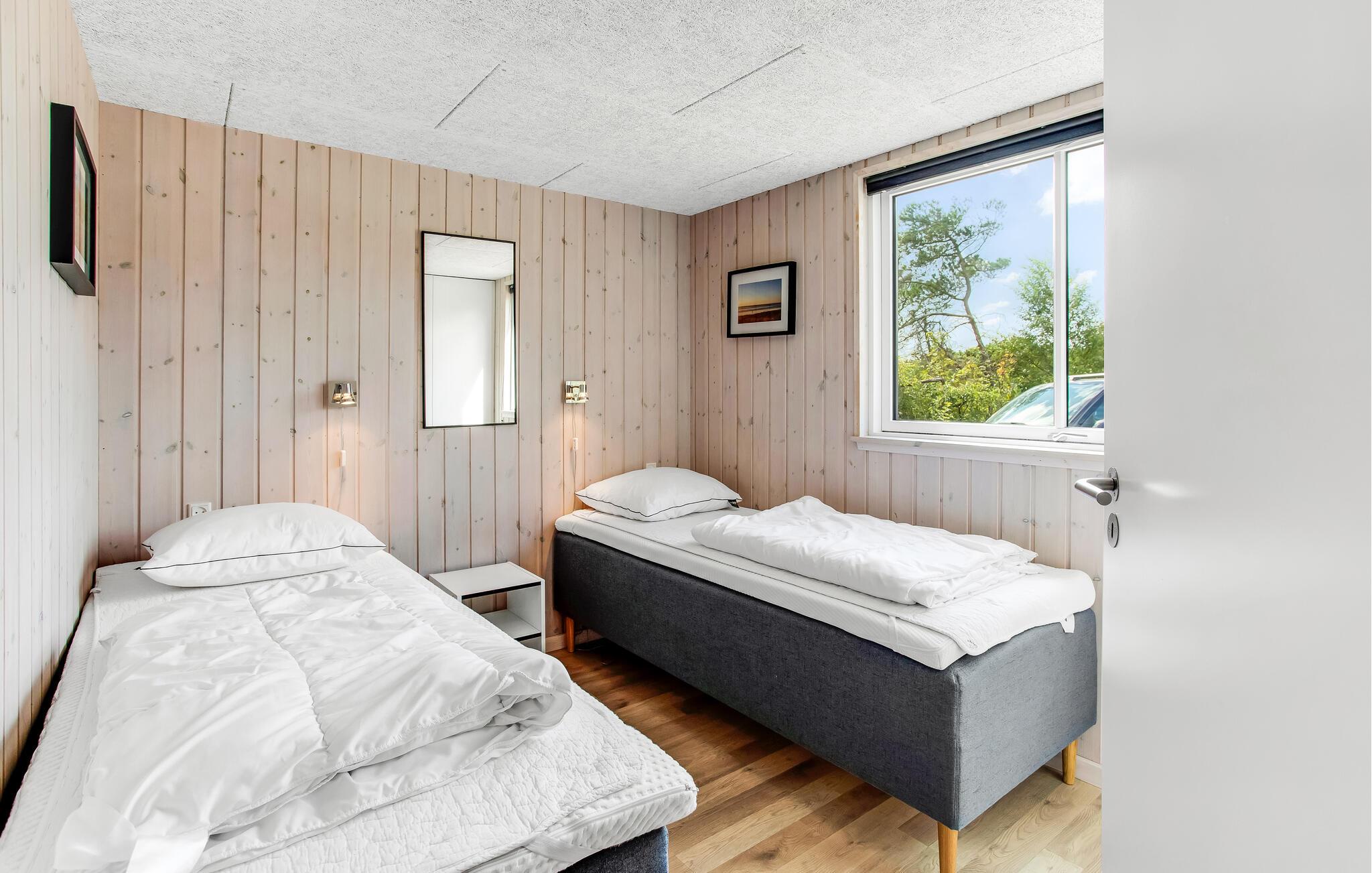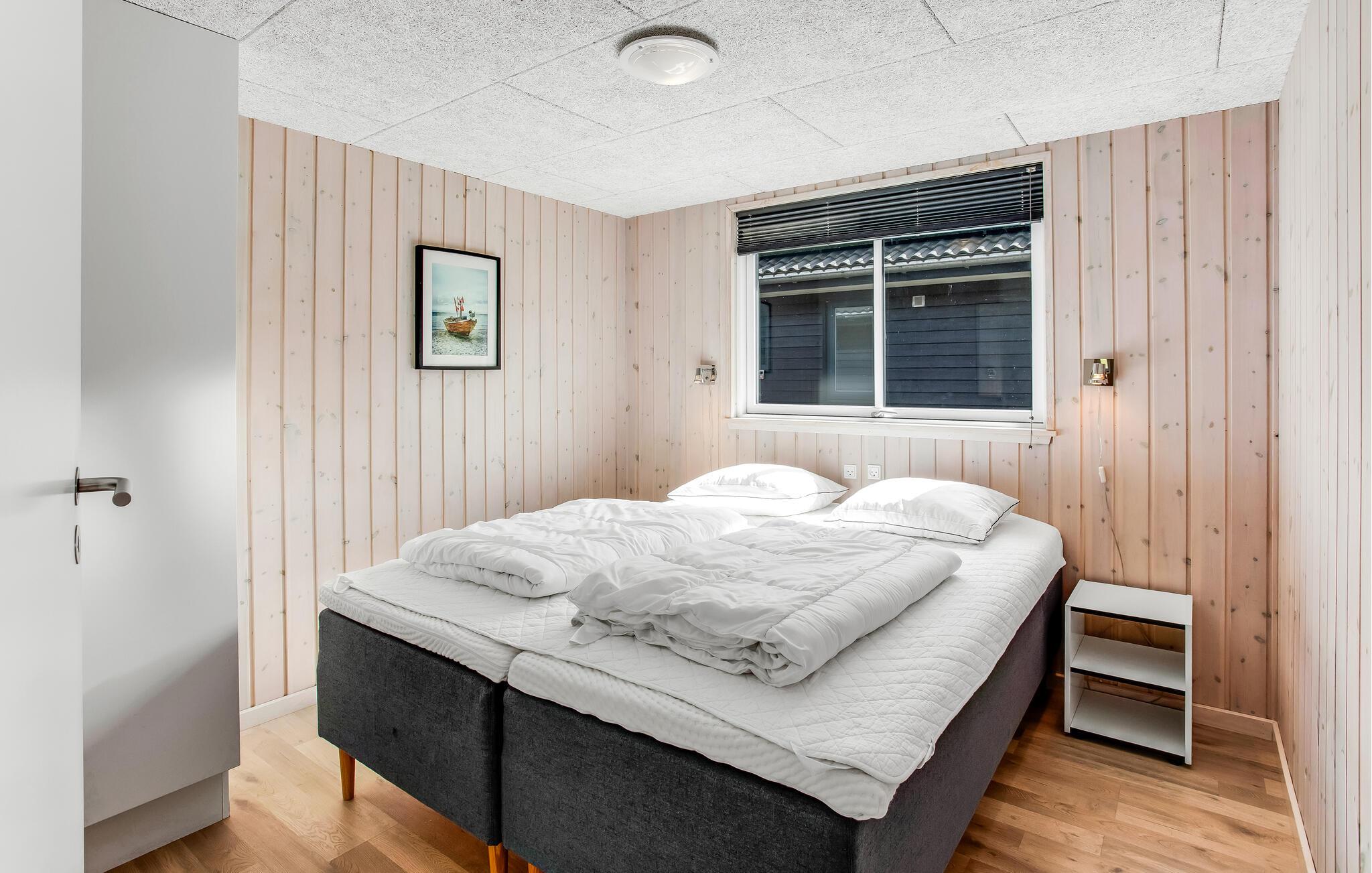 Aufgrund seiner guten Lage alleine ist dieses Ferienhaus schon einzigartig, es besitzt eine herrliche Panoramaaussicht und im Inneren erwartet Sie eine erstklassige Einrichtung. Es beherbergt 6 gute Schlafzimmer und einen Schlafboden für 4 Personen. Die Wohnküche ist groß, der Poolraum mit Whirlpool und Sauna sehr einladend. Es gibt auch 3 Badezimmer und Spielzimmer mit diverser Unterhaltung. Draußen genießen Sie auf der überdachten Terrasse die Sonne, Ihre Kinder können in der Sandkiste spielen oder schaukeln. Sie wohnen in Lodbjerghede, in einer schönen Ferienhaussiedlung, die aufgrund ihrer Ruhe und dem kurzen Abstand zu allerlei Einrichtungen sehr beliebt ist. Es gibt u. a. einen Angelsee, einen großen Golfklub mit einem 9-Loch-Platz für Anfänger und einem mit 18 Löchern für Fortgeschrittene sowie mehrere Spielplätze für Kinder. Nicht weit entfernt liegt auch Søndervig, ein Ferienort mit Geschäften, Cafés, Restaurants, Bowling und Fahrradverleih. Der Ort ist im Sommer sehr lebhaft. Machen Sie einen Ausflug an die Nordsee und lassen Sie sich vom unendlichen Horizont faszinieren. Ringkøbing ist ein alter Ort mit gepflasterten Straßen, einem Fischrestaurant am Hafen und viel mehr. Zum Windsurfen fahren Sie an den Fjord. Am Baggersvej finden sich Anfänger wie Geübte aus vielen verschiedenen Nationen zu diesem Sport ein. WC und Parkplatz sind auch vorhanden. Führ Fahrradtouren in der Region, es gibt sehr gepflegte Radwege, können Sie in Søndervig ein Fahrrad mieten.