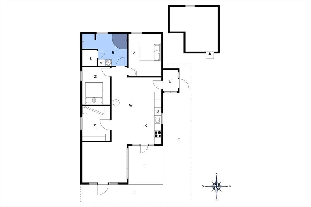 Das Ferienhaus verfügt über: Helle Diele, 3 gute Schlafzimmer, 2 Schlafzimmer mit Doppelbetten und 1 Schlafzimmer mit Etagenbetten, sowie einen Dachboden mit 2 Matratzen.
