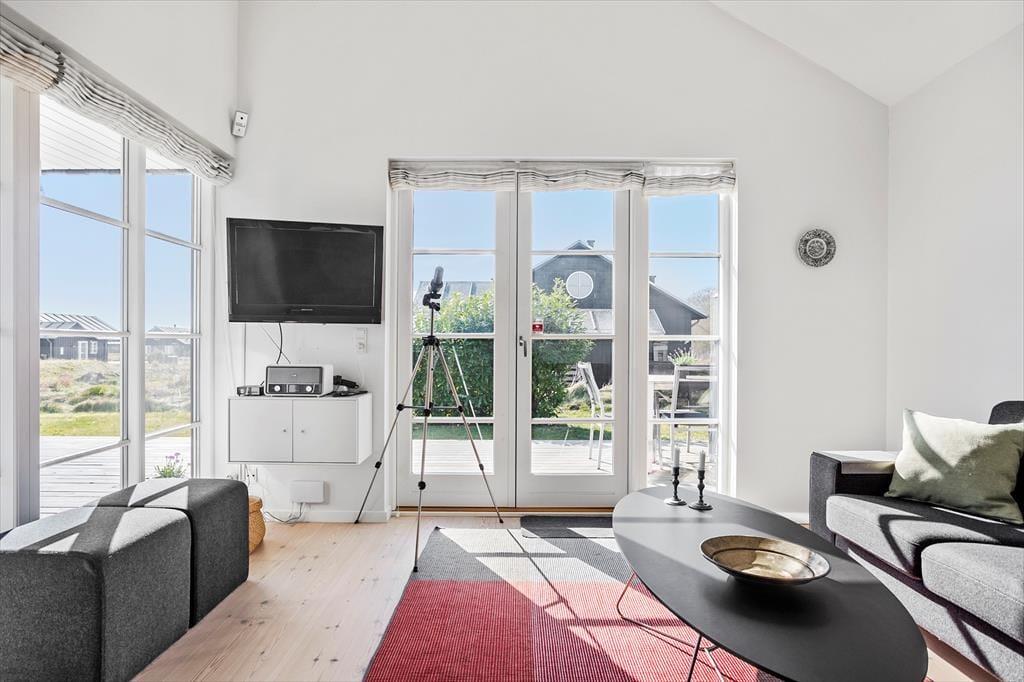 Das Ferienhaus befindet sich auf einem 1205 m² großen Gartengrundstück. Darüber hinaus gehört zu dem Ferienhaus eine schöne Terrasse, die sowohl über eine überdachte Terrasse mit Zugang zum Wohnzimmer und zur Küche verfügt, als auch über eine große Terrasse auf halber Höhe des Ferienhauses. Darüber hinaus verfügt dieses Ferienhaus über einen größeren Garten/Grundstück als andere in dieser Gegend, der sich perfekt für Outdoor-Aktivitäten eignet und das Ferienhaus verfügt auch über eine Außendusche.