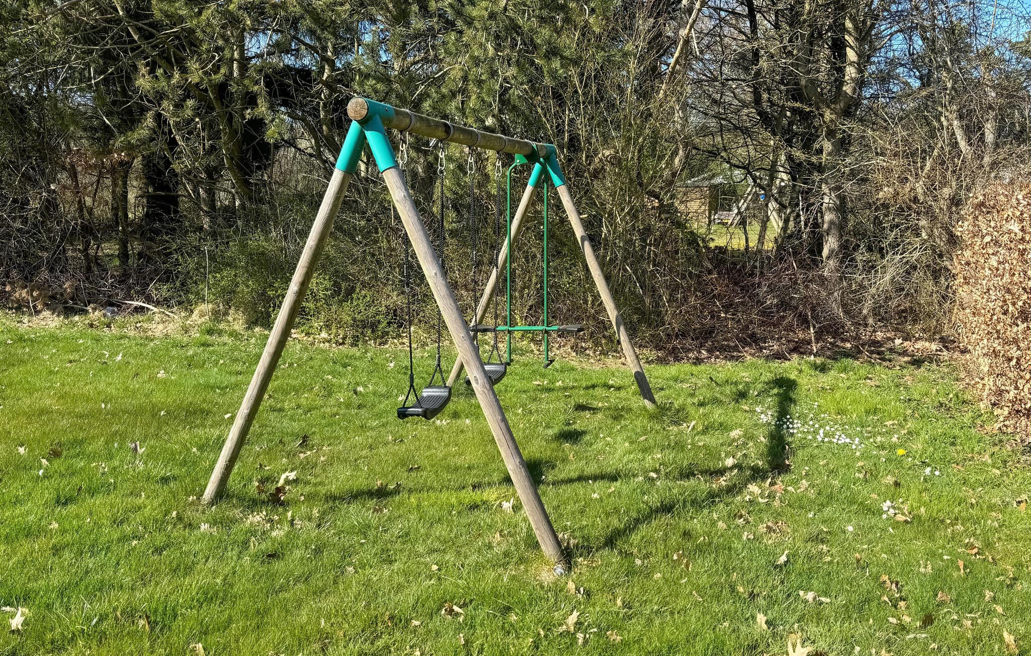 Nutzen Sie den gepflegten Außenbereich für entspannte Stunden an der frischen Luft. Frühstücken Sie auf der großen Holzterrasse, während die Sonne über den Garten wandert. Lehnen Sie sich in den Gartenmöbeln zurück und beobachten Sie die Kinder beim Spielen auf der Schaukel im weitläufigen Garten.