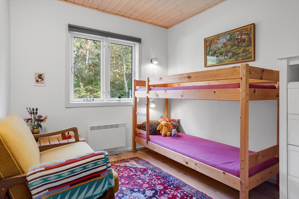 Das Sommerhaus verfügt über zwei gute Schlafzimmer. Im einen Schlafzimmer können die Erwachsenen eine erholsame Nachtruhe genießen, während das andere Zimmer perfekt für zwei Kinder im Etagenbett geeignet ist. Selbstverständlich gibt es auch ein Badezimmer, das einige originale Details aus der ursprünglichen Bauzeit des Hauses bewahrt hat, jedoch hell und gepflegt ist und ausreichend Platz bietet.