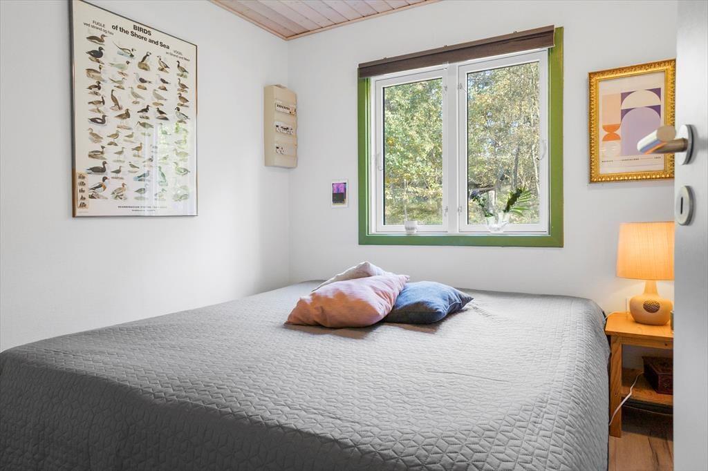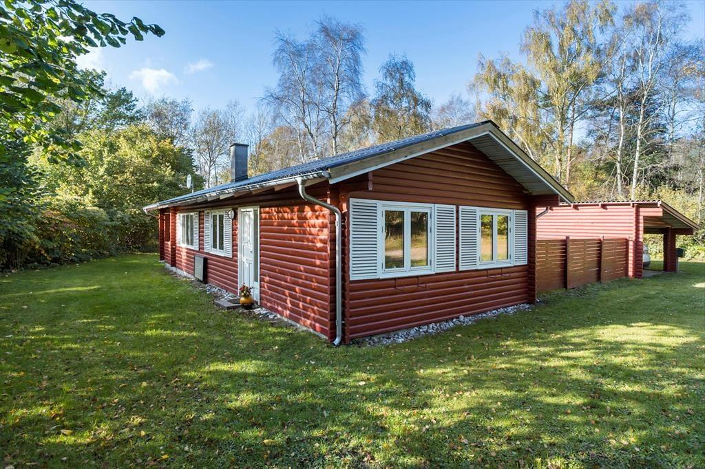Das Sommerhaus hat eine schöne überdachte Holzterrasse, auf der es perfekt ist, sich zu setzen und die Sonne zu genießen oder Schutz vor dem Wind zu finden. Auf der Terrasse stehen Gartenmöbel, sodass Sie Ihre Mahlzeiten nach draußen verlegen oder sich in den Liegestühlen entspannen können. Das Haus steht auf einem schönen Grundstück mit einem Garten, der sowohl gemähten als auch wilden Rasen bietet. Darüber hinaus ist der Garten von Büschen und Bäumen umgeben, die Ihnen Privatsphäre bieten. Am Haus ist das Parken unkompliziert, sodass alles Praktische geregelt ist. Nun bleibt nur noch, die Zeit gemeinsam in diesem schönen Sommerhaus bei Maarup Østerstrand zu genießen.