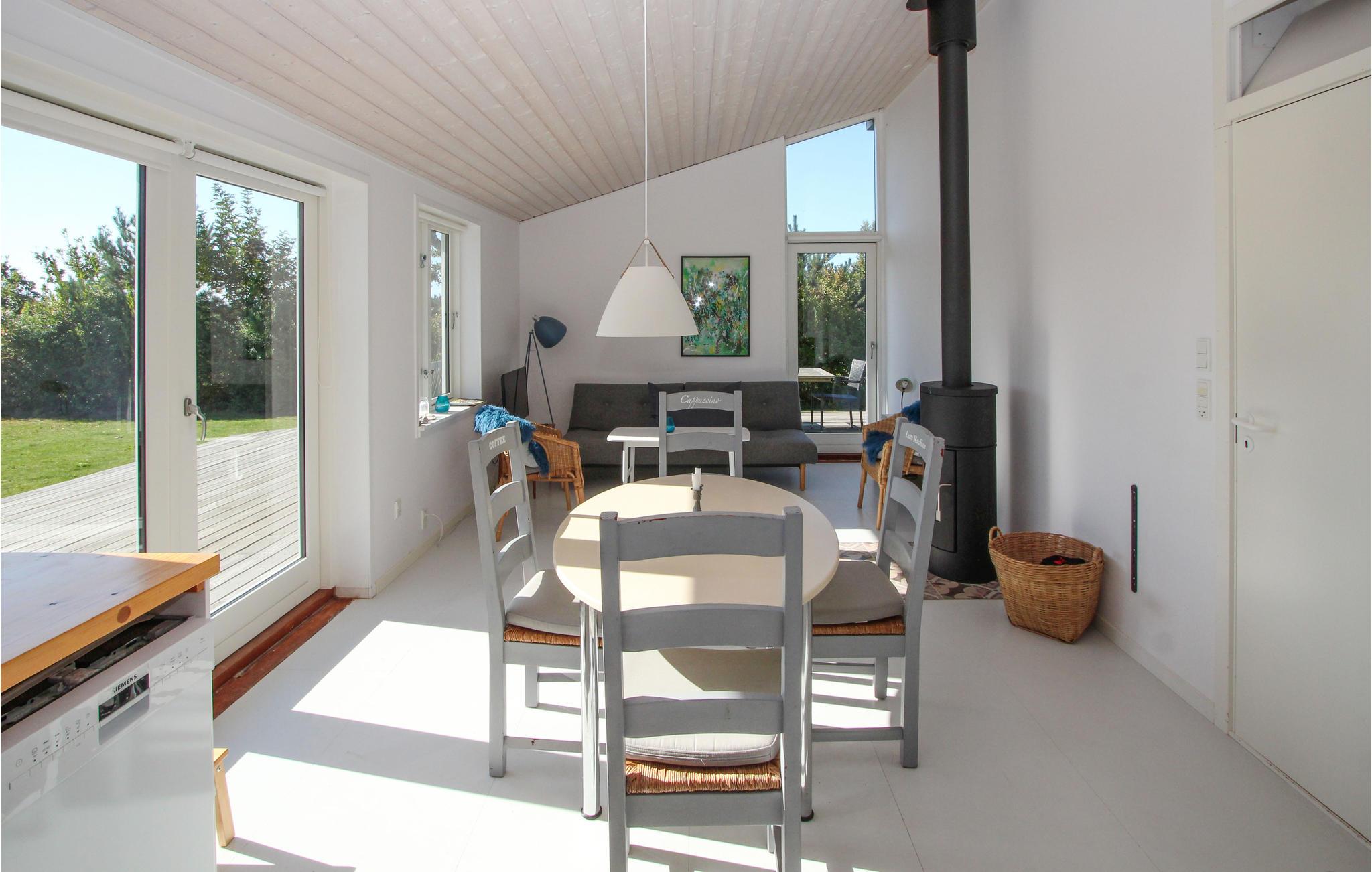 Herzlich willkommen in diesem einladenden Ferienhaus, das mit seinen lichtdurchfluteten Räumen und der hellen Einrichtung überaus freundlich und wohnlich anmutet. Verbringen Sie gemeinsam gemütliche Abende am knisternden Kamnofen und versammeln Sie die ganze Familie um den großen Esstisch mit Blick auf den Garten. Machen Sie es sich auf der Terrasse bequem und genießen Sie die Sonne, während Sie Ihren Kindern beim Spielen zusehen. Ein kurzer Spaziergang führt Sie zum Strand.