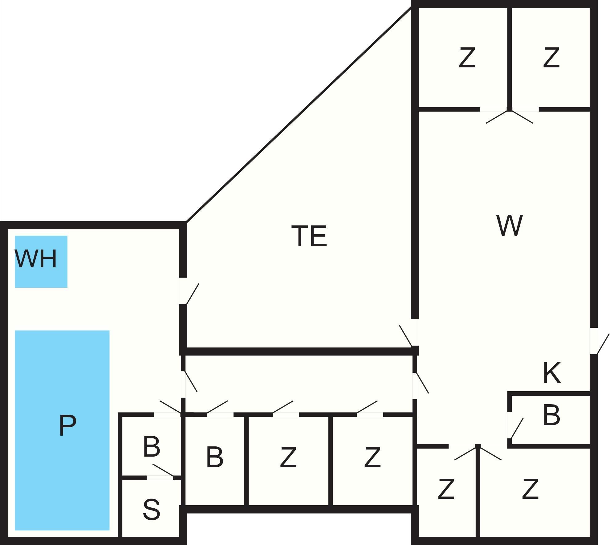 6 Schlafz.: (1DB)+(1DB)+(1DB)+(1DB+1K)+(1DB+1K)+(2B), Kinderbett