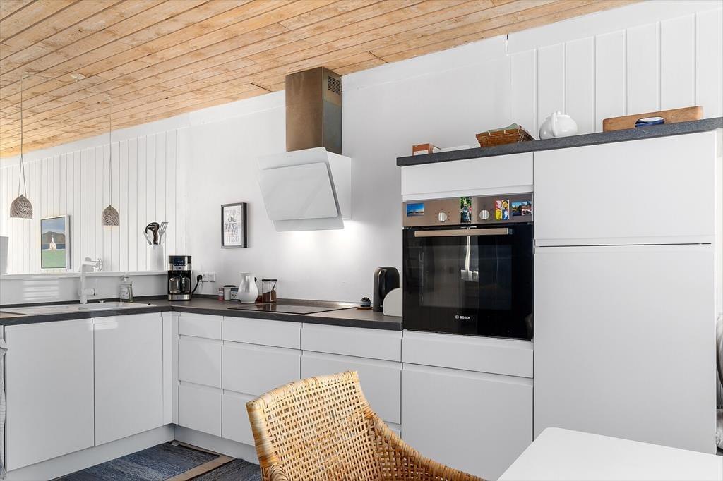 Das Ferienhaus verfügt über: 2 gute Schlafzimmer, mit zwei Einzelbetten in einem Schlafzimmer und einem Doppelbett im anderen Schlafzimmer, außerdem verfügt das Ferienhaus über eine schöne neue Wohnküche mit Holzofen und Sofaecke, sowie Zugang zu einer Terrasse auf beiden Seiten des Hauses, eine Terrasse ist überdacht. Außerdem ein neu renoviertes Badezimmer mit WC und Dusche.
